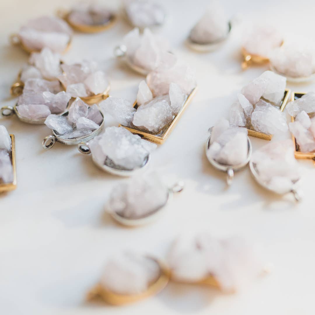 The Locket Sisters is a small, intimate jewelry studio in the Art District of Northeast Minneapolis, MN. We intend for our jewelry to hold a warm, healing energy, and love working with stones for this reason. The bulk of our in-studio focus is placing customer photos inside our modern and classic locket styles, creating a finished piece that is ready to where and last a lifetime when it arrives on your doorstep. With healing and honoring the vast human experience, we began to play with Rose Quartz in our open pendants, Black Druzy, and just recently with Emerald Calcite, too. We love that these raw pieces are not just beautiful, but feel good to wear. We're so excited to have our work connect with yours. Warmly, Allyssa and The Locket Sisters team