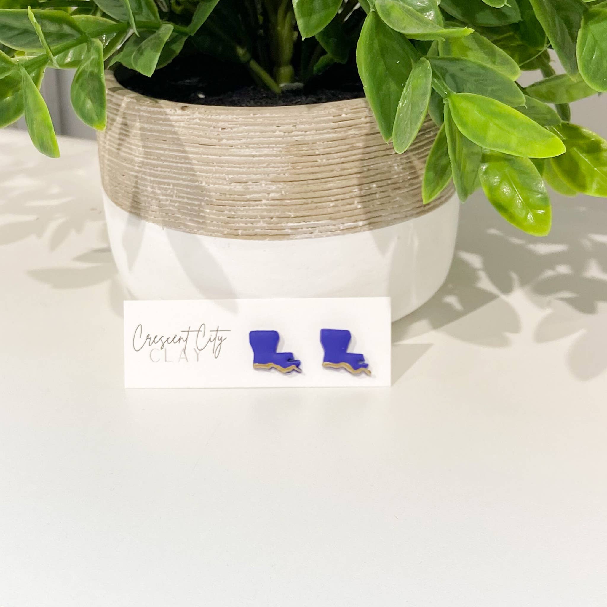 Hello, we are Gina & Jamie! A mother-daughter team creating handcrafted, lightweight polymer clay earrings & accessories. All pieces are handmade by Gina (Mom) in New Orleans, LA. Jamie is co-designer & manages our marketing efforts for Crescent City Clay, all out of Houston, TX. We are supporting each other from afar, staying connected & having fun. New Orleans, LA is often referred to as "The Crescent City" which is where our name came from. The Crescent City Clay business has actually been around since 2014. The name was conceived by Gina when she began selling her handmade pottery. When beginning our polymer clay earring business together in 2020, we decided to continue using the same business name as we shifted into this venture together. One key element setting us apart from other polymer clay makers is the method in which we embed our earring posts. Many makers use harmful resin or super glue, however we embed the posts inside the polymer clay backs to protect your ears. Thank you for visiting our shop, and please reach out with any questions! - Gina & Jamie