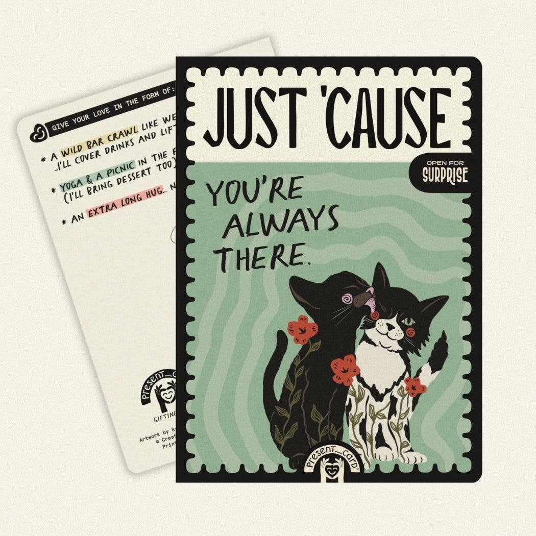Inspired by years of gifting handmade cards and shared experiences, PresentCard™ was created to bring more connection, laughter, and presence into the way we celebrate each other. By giving a PresentCard™, you’re turning a simple message into a living memory—a sneaky, sweet way to surprise someone you love with a special moment. Each one includes playful prompts and space to write in a surprise experience or heartfelt favor. Because these aren’t just cards that say something sweet, they *do* something sweet. And with every purchase, we donate to *For All Ages* to help spread real-life connection and love over loneliness.