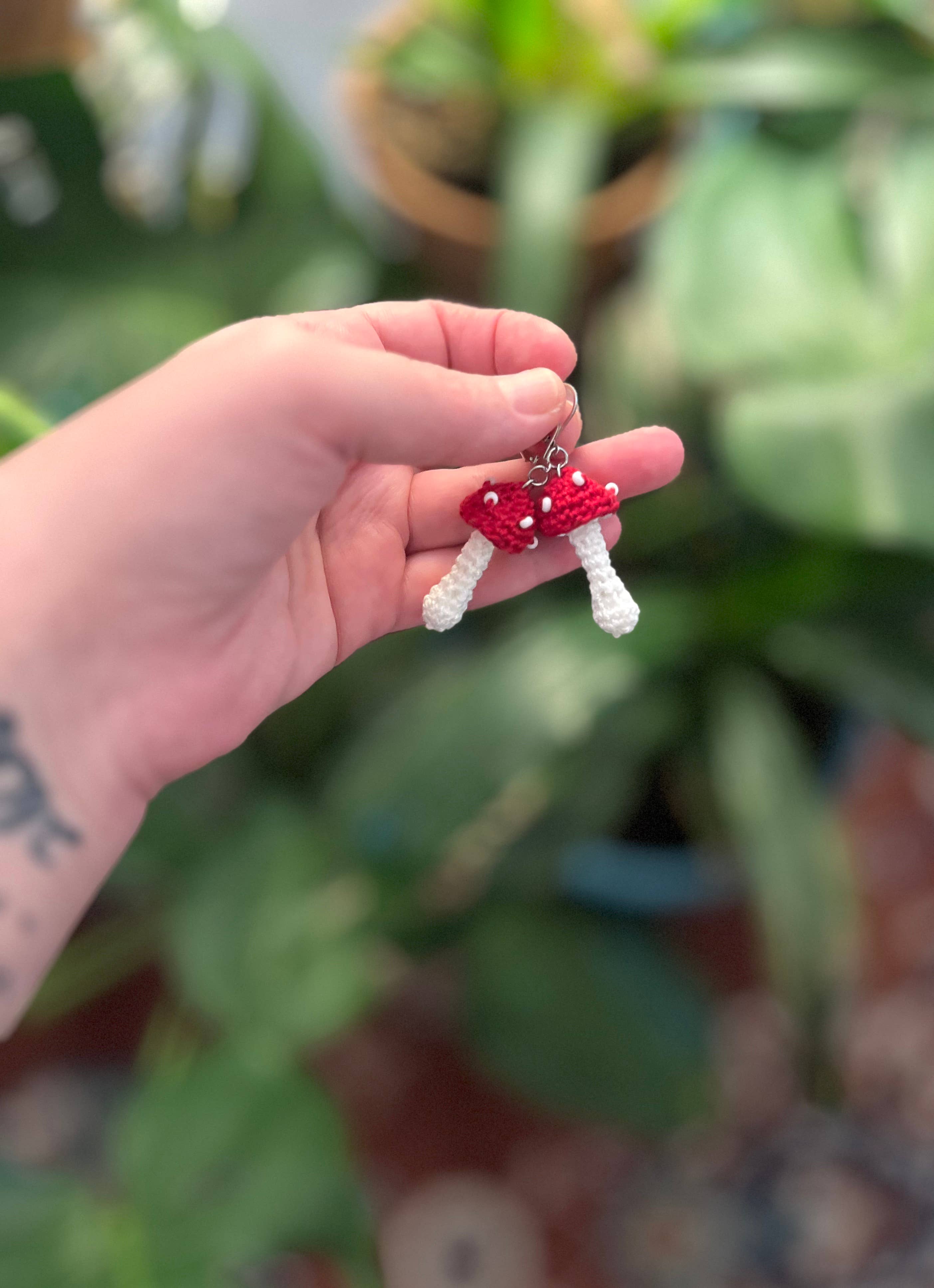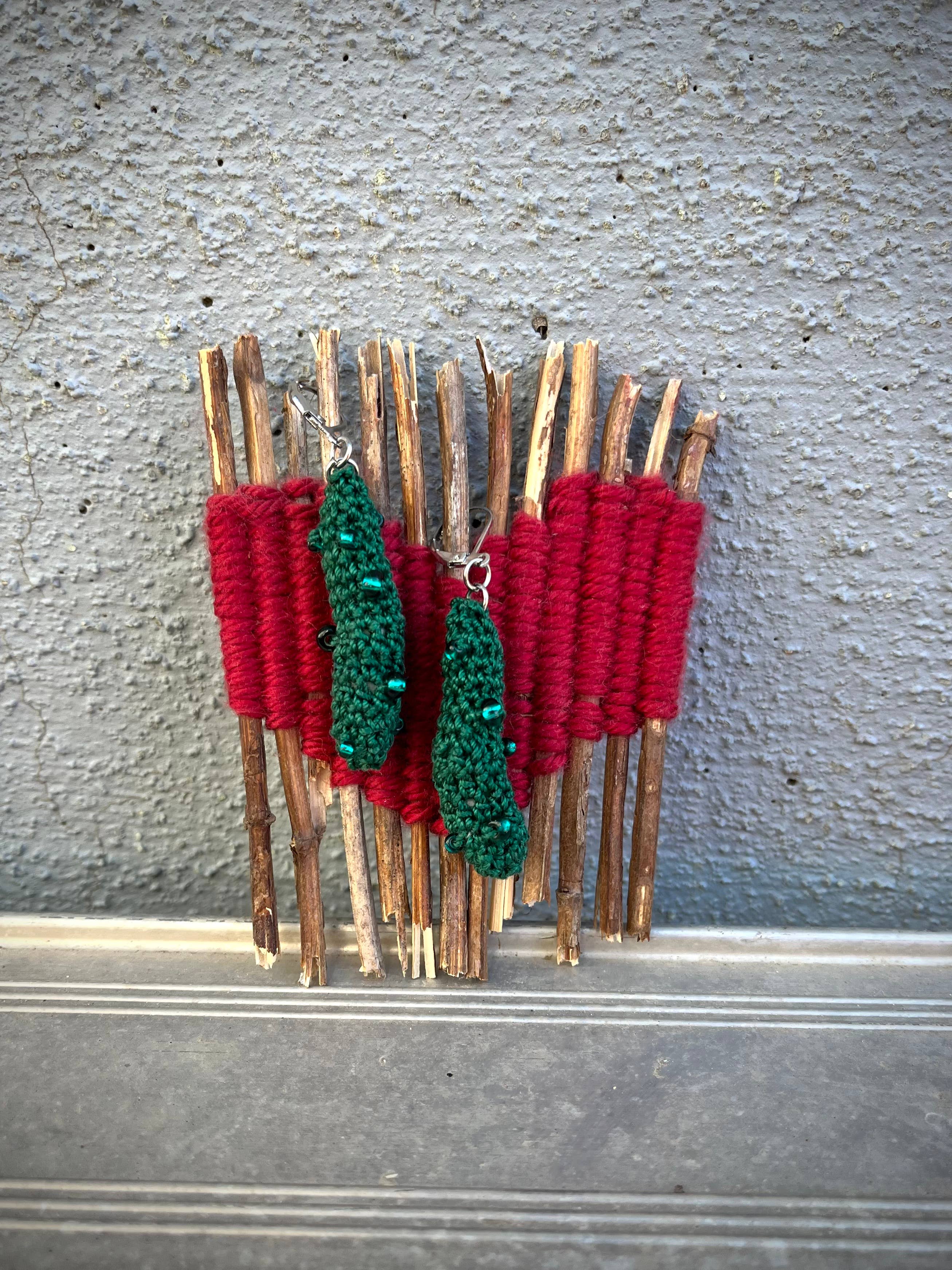 I’m a disabled fiber artist living in and renovating a warehouse in northeastern Colorado. I’ve been enthralled by fiber arts since I was a young girl when my Nana taught me how to sew. My background is in printmaking which helped me develop a love for process. I’m inspired by pop art (particularly the sculptures of Claes Oldenburg). I write all of my own patterns and to me they’re like mini, crocheted and beaded sculptures for your ears. I value whimsy and color and fun!