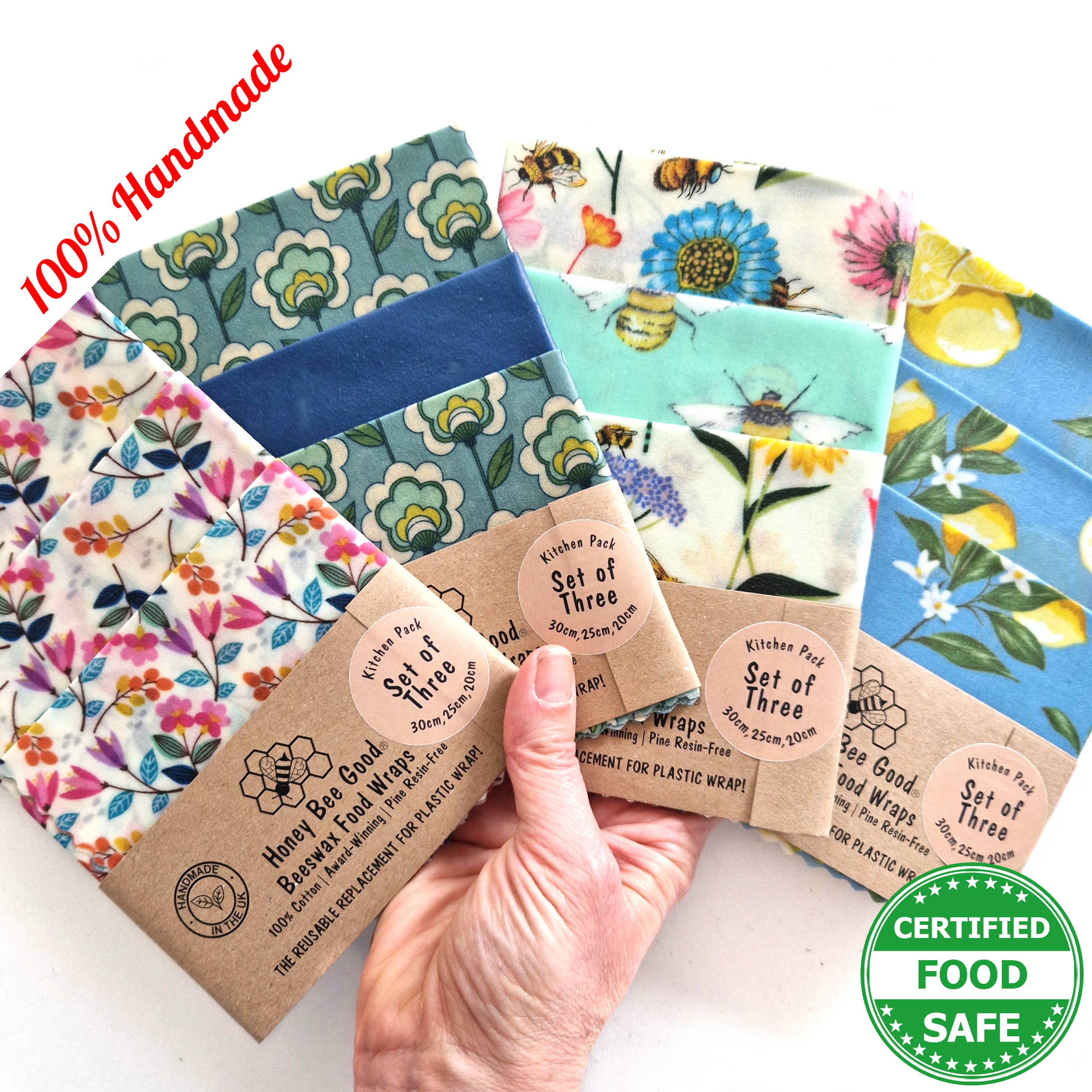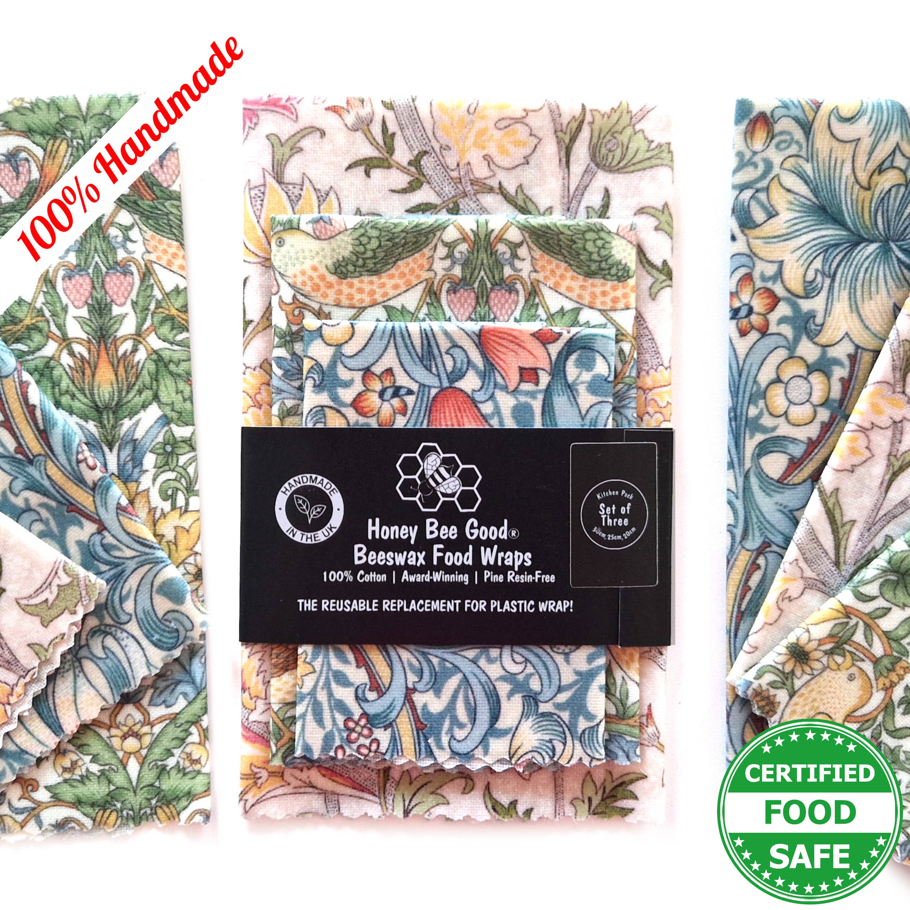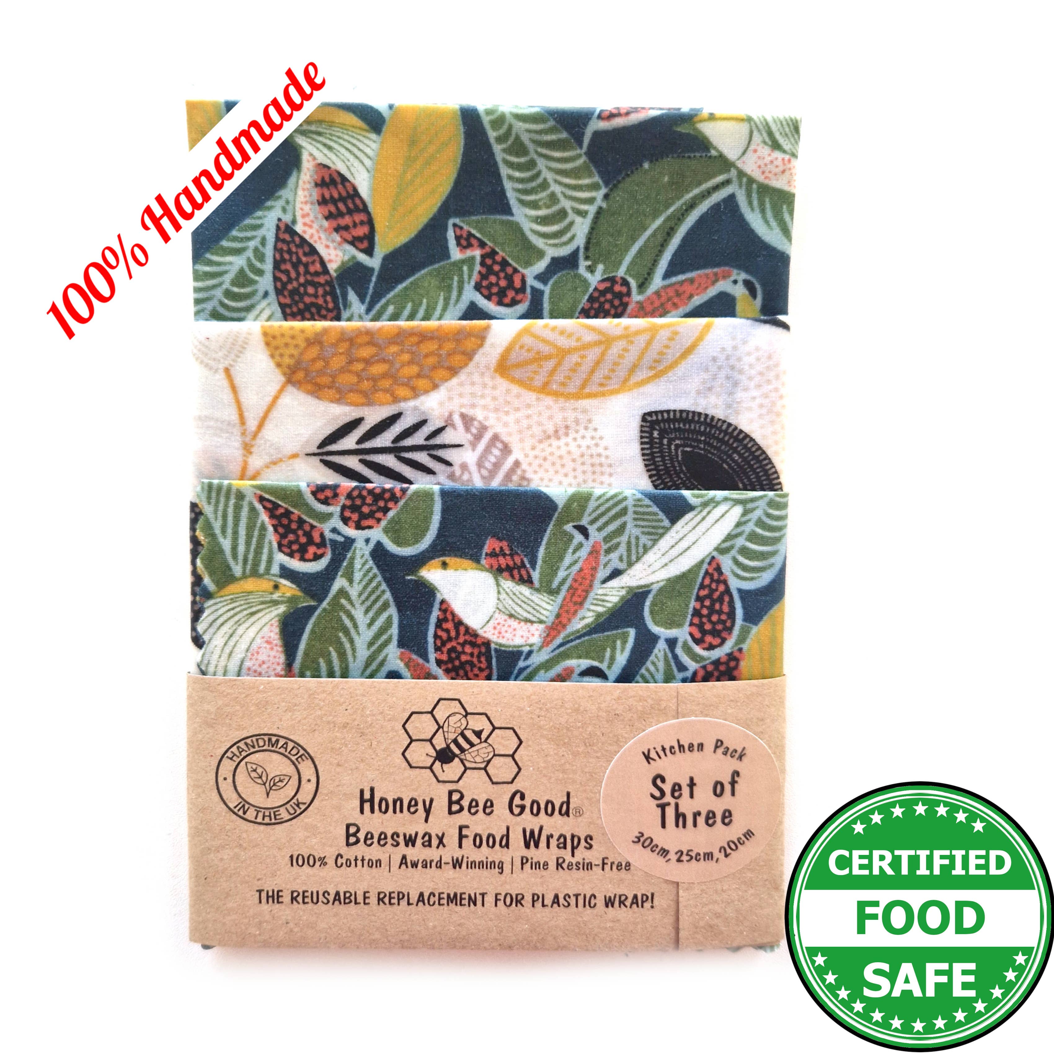 🌎US prices INCLUDE all tariffs/duty (we remit these for you prior to shipping. We ship DDP: Delivered Duty Paid) 🌎 Our beeswax food wraps are unique! They’re 100% hand-cut and hand-waxed by us (no machines, not even little ones), national award-winning, with 3,600+ 5* Etsy reviews, pine resin-free (an allergen), jojoba oil-free (not FDA-approved for food contact) and Certified Food Safe. 🍃⭐🍃 We've won LUXLife's 2024 Home & Garden Award for the Best Eco-Friendly Beeswax Food Wrap Manufacturer in the UK, AND are the British Business Awards 2024 Sustainable Business of the Year Finalists. 🍃⭐🍃 We are Michele and Andrew, the British-American partnership (in life and work!) who started our business in 2020 and we’ve been happily covered in wax ever since. Our wraps are truly hand-made from start to finish in our little studio. 🍃⭐🍃 Our beeswax wraps are some of the only ones in the market to be independently tested and certified food safe, so you know that our wax mixture does not come off on food, and there are no harmful chemicals or substances. Tested in 2022 and 2025. Results on our website. 🍃⭐🍃 We're passionate about sustainability. We use 100% green electricity, biodegradable/compostable packaging, and have completed a sustainability audit to see where we're doing well and where we can go further. See the full results on our website. 🌐 It is the retailer's responsibility to comply with their country's import rules. NO REFUNDS due to non-compliance/non-delivery.