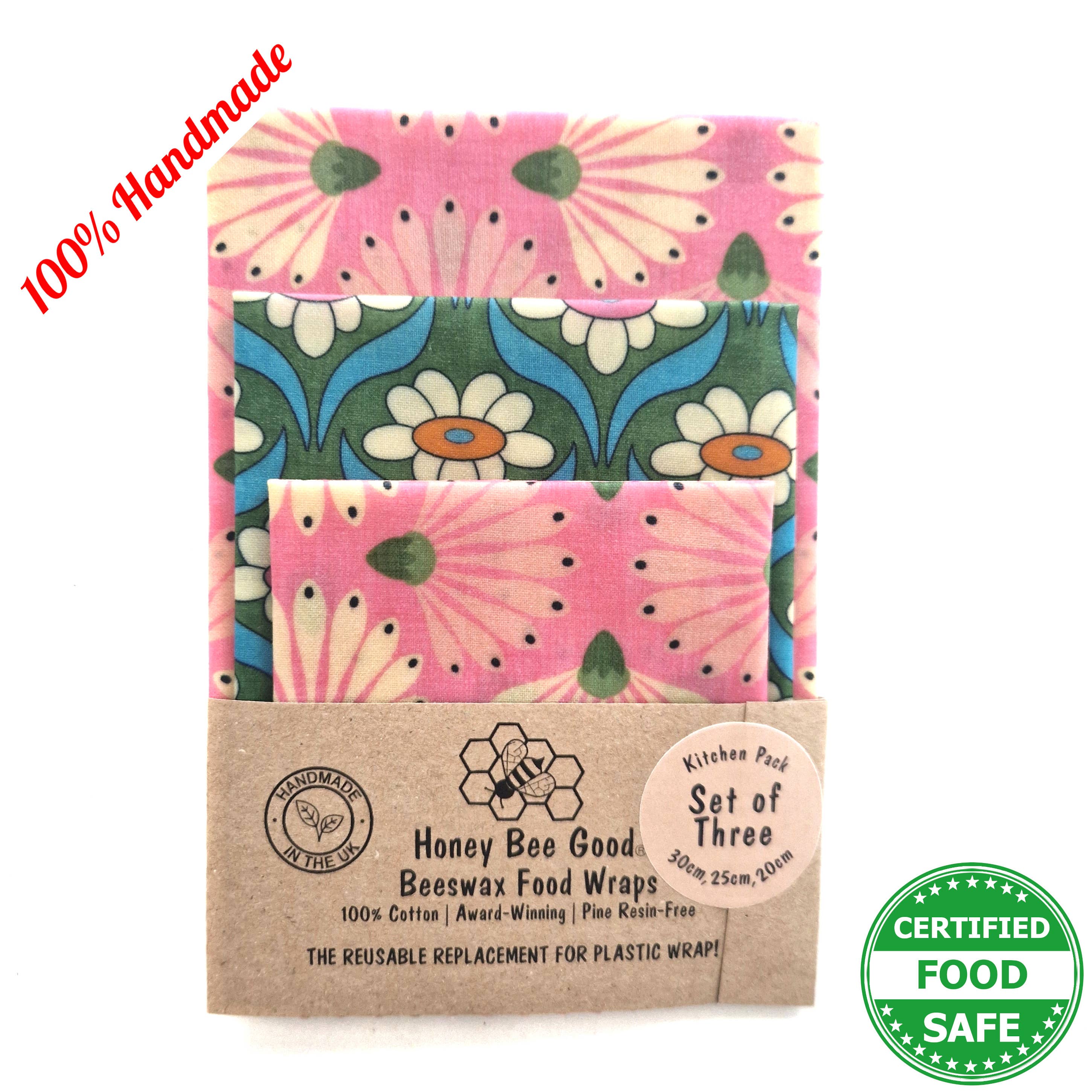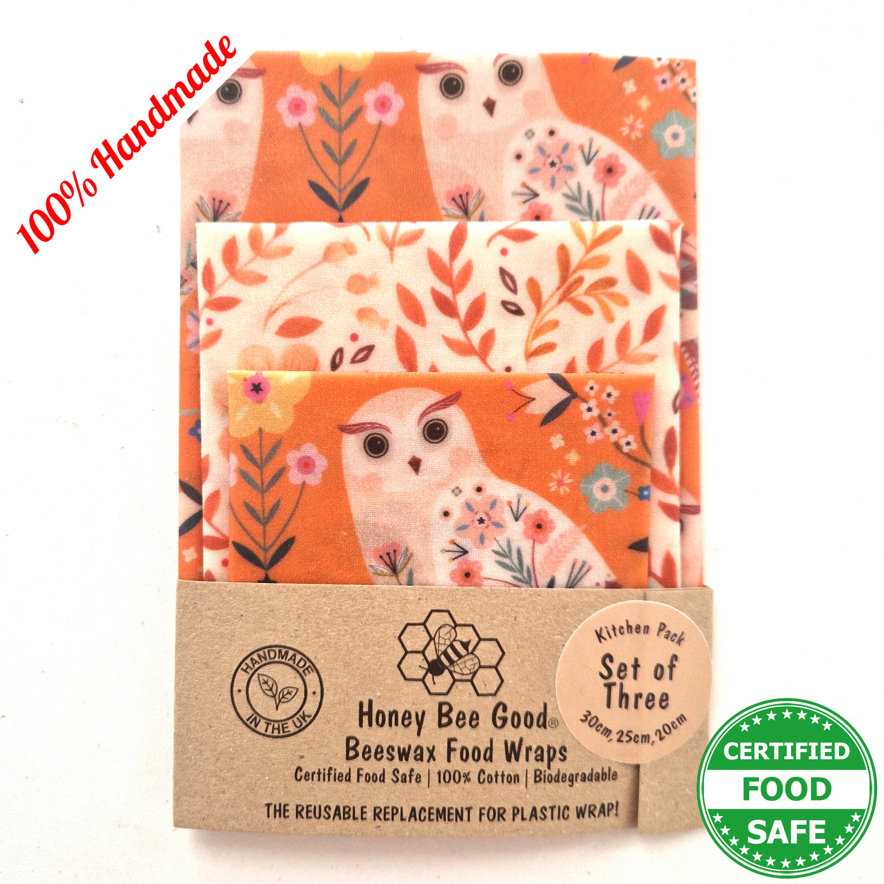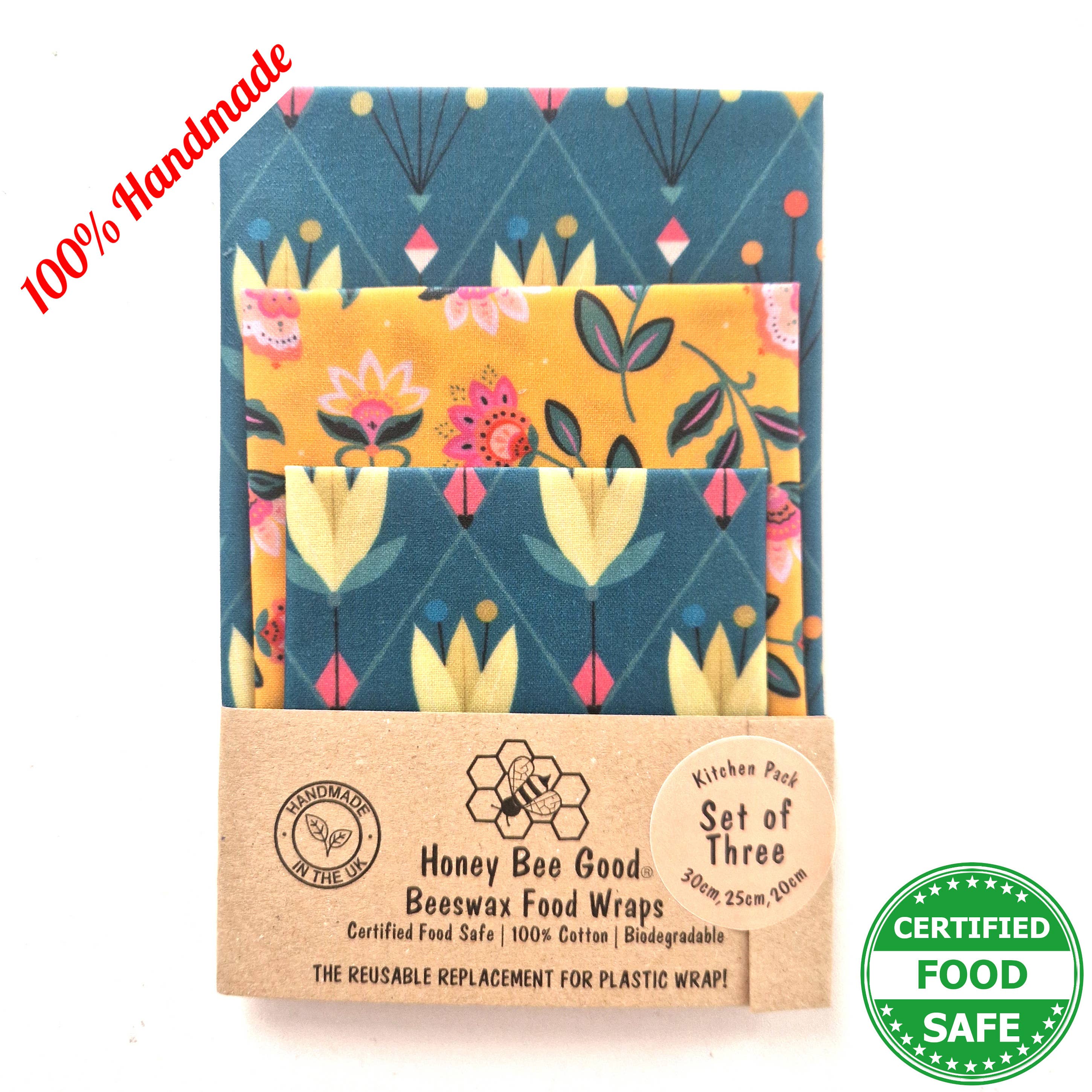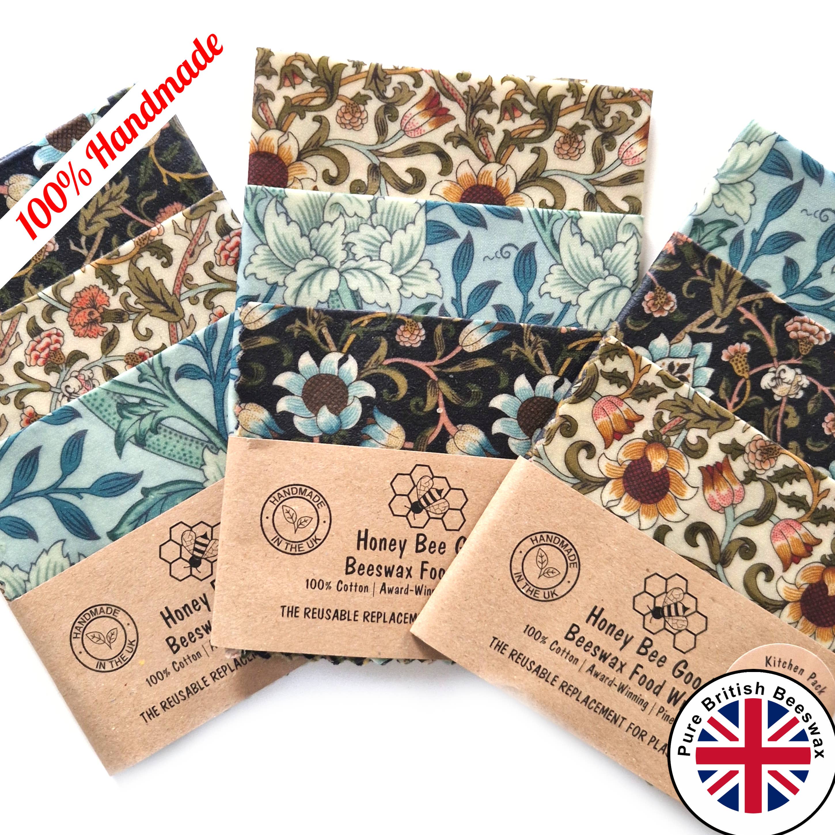 🌎US prices INCLUDE all tariffs/duty (we remit these for you prior to shipping. We ship DDP: Delivered Duty Paid) 🌎 Our beeswax food wraps are unique! They’re 100% hand-cut and hand-waxed by us (no machines, not even little ones), national award-winning, with 3,600+ 5* Etsy reviews, pine resin-free (an allergen), jojoba oil-free (not FDA-approved for food contact) and Certified Food Safe. 🍃⭐🍃 We've won LUXLife's 2024 Home & Garden Award for the Best Eco-Friendly Beeswax Food Wrap Manufacturer in the UK, AND are the British Business Awards 2024 Sustainable Business of the Year Finalists. 🍃⭐🍃 We are Michele and Andrew, the British-American partnership (in life and work!) who started our business in 2020 and we’ve been happily covered in wax ever since. Our wraps are truly hand-made from start to finish in our little studio. 🍃⭐🍃 Our beeswax wraps are some of the only ones in the market to be independently tested and certified food safe, so you know that our wax mixture does not come off on food, and there are no harmful chemicals or substances. Tested in 2022 and 2025. Results on our website. 🍃⭐🍃 We're passionate about sustainability. We use 100% green electricity, biodegradable/compostable packaging, and have completed a sustainability audit to see where we're doing well and where we can go further. See the full results on our website. 🌐 It is the retailer's responsibility to comply with their country's import rules. NO REFUNDS due to non-compliance/non-delivery.
