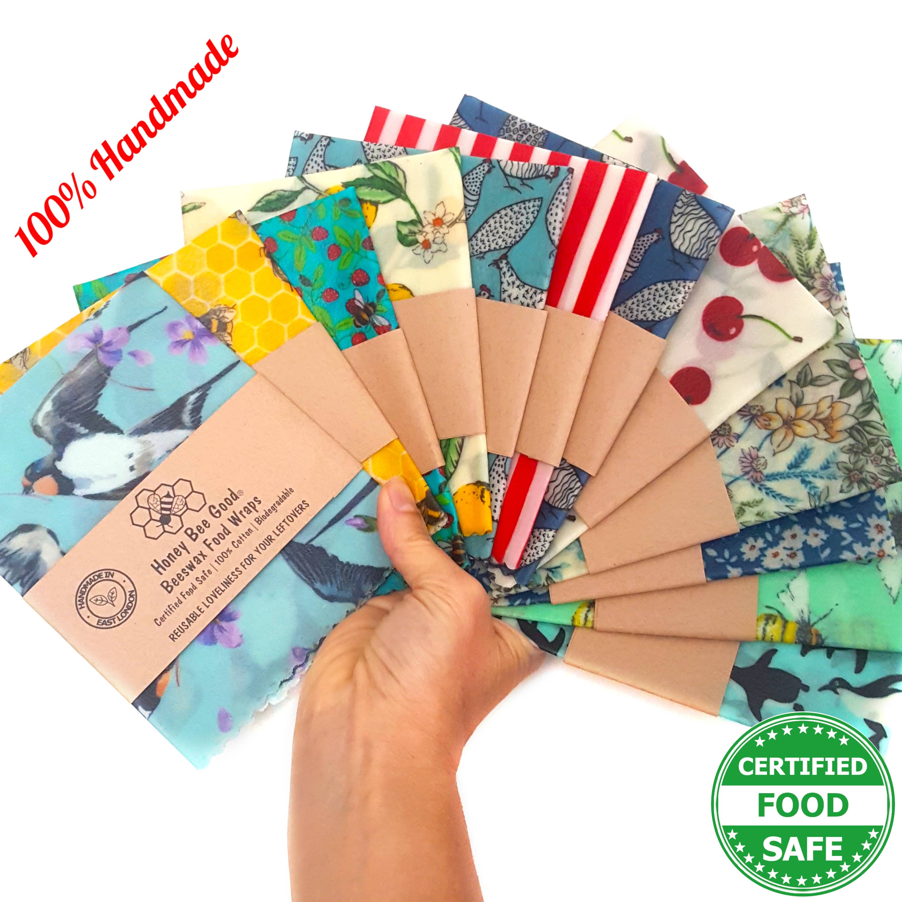 🌎US prices INCLUDE all tariffs/duty (we remit these for you prior to shipping. We ship DDP: Delivered Duty Paid) 🌎 Our beeswax food wraps are unique! They’re 100% hand-cut and hand-waxed by us (no machines, not even little ones), national award-winning, with 3,600+ 5* Etsy reviews, pine resin-free (an allergen), jojoba oil-free (not FDA-approved for food contact) and Certified Food Safe. 🍃⭐🍃 We've won LUXLife's 2024 Home & Garden Award for the Best Eco-Friendly Beeswax Food Wrap Manufacturer in the UK, AND are the British Business Awards 2024 Sustainable Business of the Year Finalists. 🍃⭐🍃 We are Michele and Andrew, the British-American partnership (in life and work!) who started our business in 2020 and we’ve been happily covered in wax ever since. Our wraps are truly hand-made from start to finish in our little studio. 🍃⭐🍃 Our beeswax wraps are some of the only ones in the market to be independently tested and certified food safe, so you know that our wax mixture does not come off on food, and there are no harmful chemicals or substances. Tested in 2022 and 2025. Results on our website. 🍃⭐🍃 We're passionate about sustainability. We use 100% green electricity, biodegradable/compostable packaging, and have completed a sustainability audit to see where we're doing well and where we can go further. See the full results on our website. 🌐 It is the retailer's responsibility to comply with their country's import rules. NO REFUNDS due to non-compliance/non-delivery.