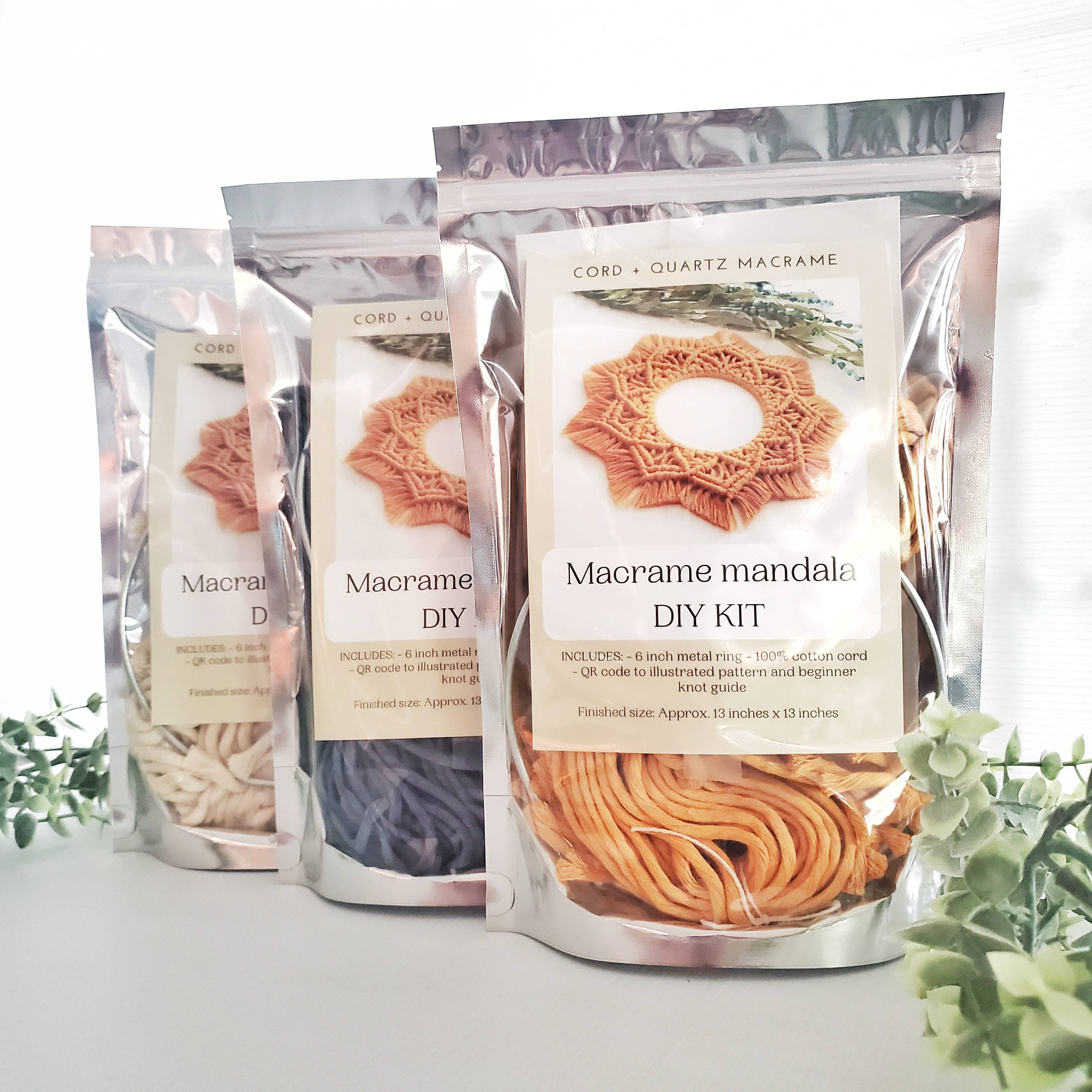 Cord + Quartz exists to provide an uplifting and truly artistic experience that will not only supply you with one of a kind handmade macrame items for your home or store, but also the opportunity to inspire creativity through DIY kits everyone can enjoy. Whether you want bulk products to decorate your home, to practice a new craft, or sell them in your store, I am sure you can find just what you need here at Cord + Quartz. Custom orders and many more products available upon request. Feel free to email or message me! For extra large orders and during holiday season, lead times may vary.