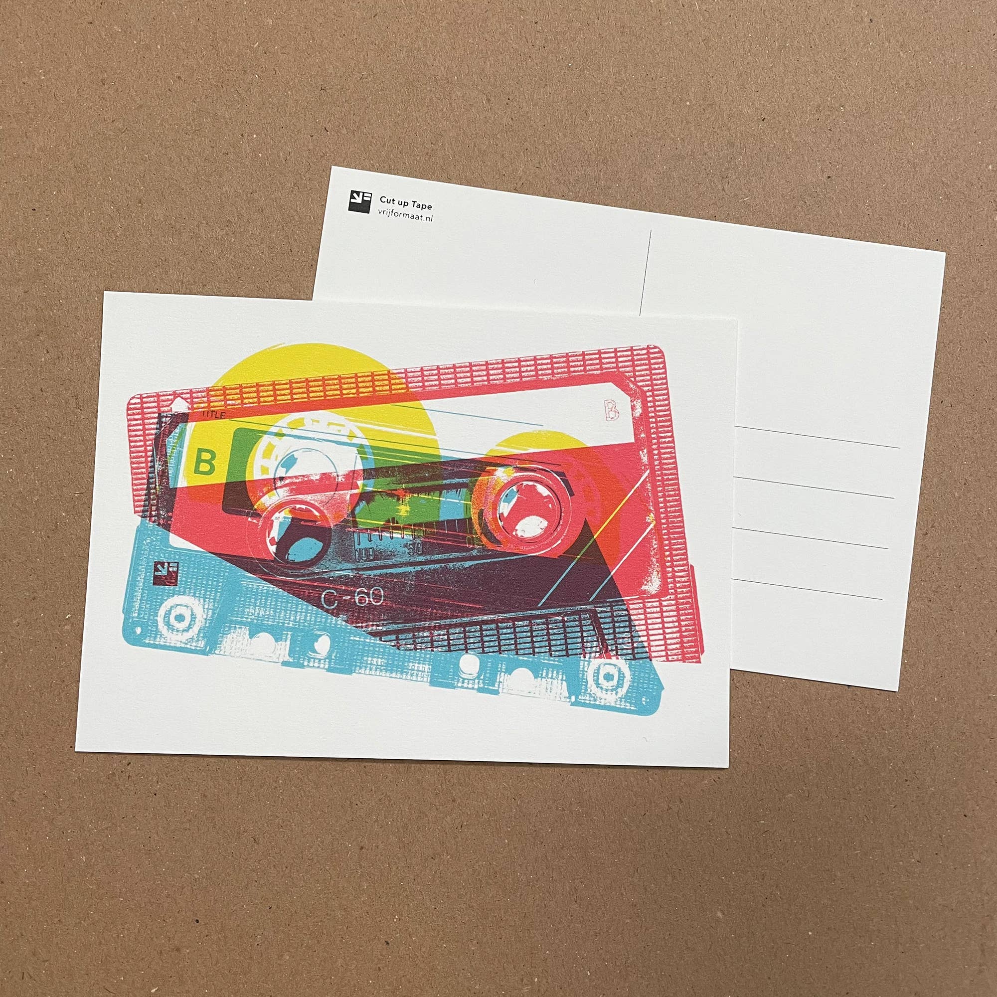 VrijFormaat is all about illustrative graphic design. Dutch designers Joke van de Fliert and Esther van de Visch have been working together for many years on all kinds of projects in their studio in Utrecht. They work both analog and digitally and research all kinds of design and illustration within various techniques, like drawing, painting, embroidery and printing. And ever since buying their own risograph, they have been captivated by this inspiring technique. Risography is a technique where you use a duplicating machine to print colours separately, layer by layer. The risograph prints on low temperature and uses semi-transparent inks based on vegetable oil (soy or rice). The result is somewhat reminiscent of screen printing. VrijFormaat offers a wide variety of colourful riso prints and postcards.