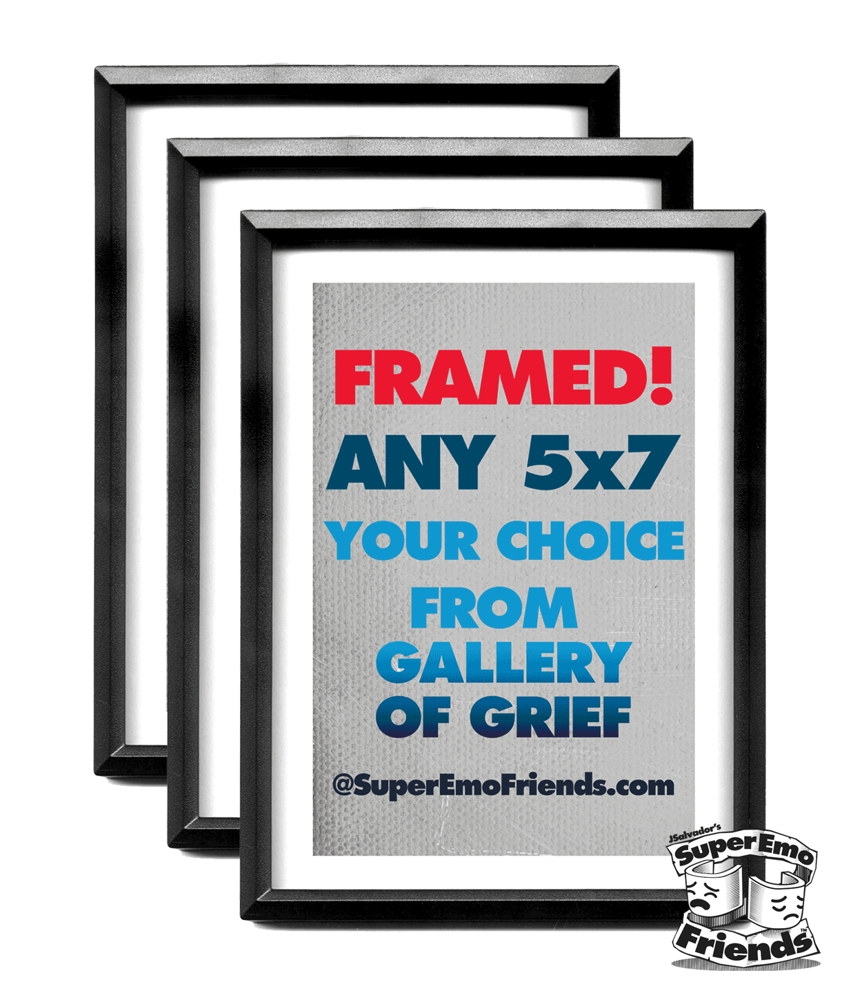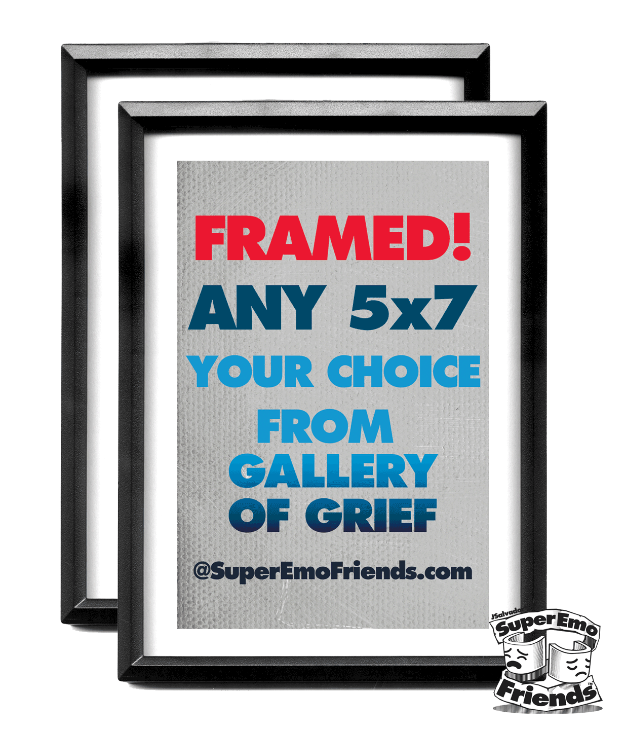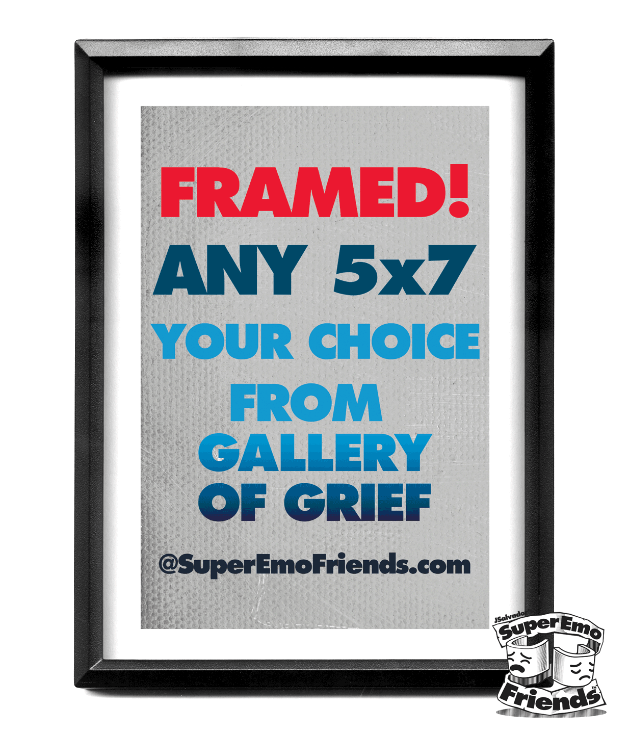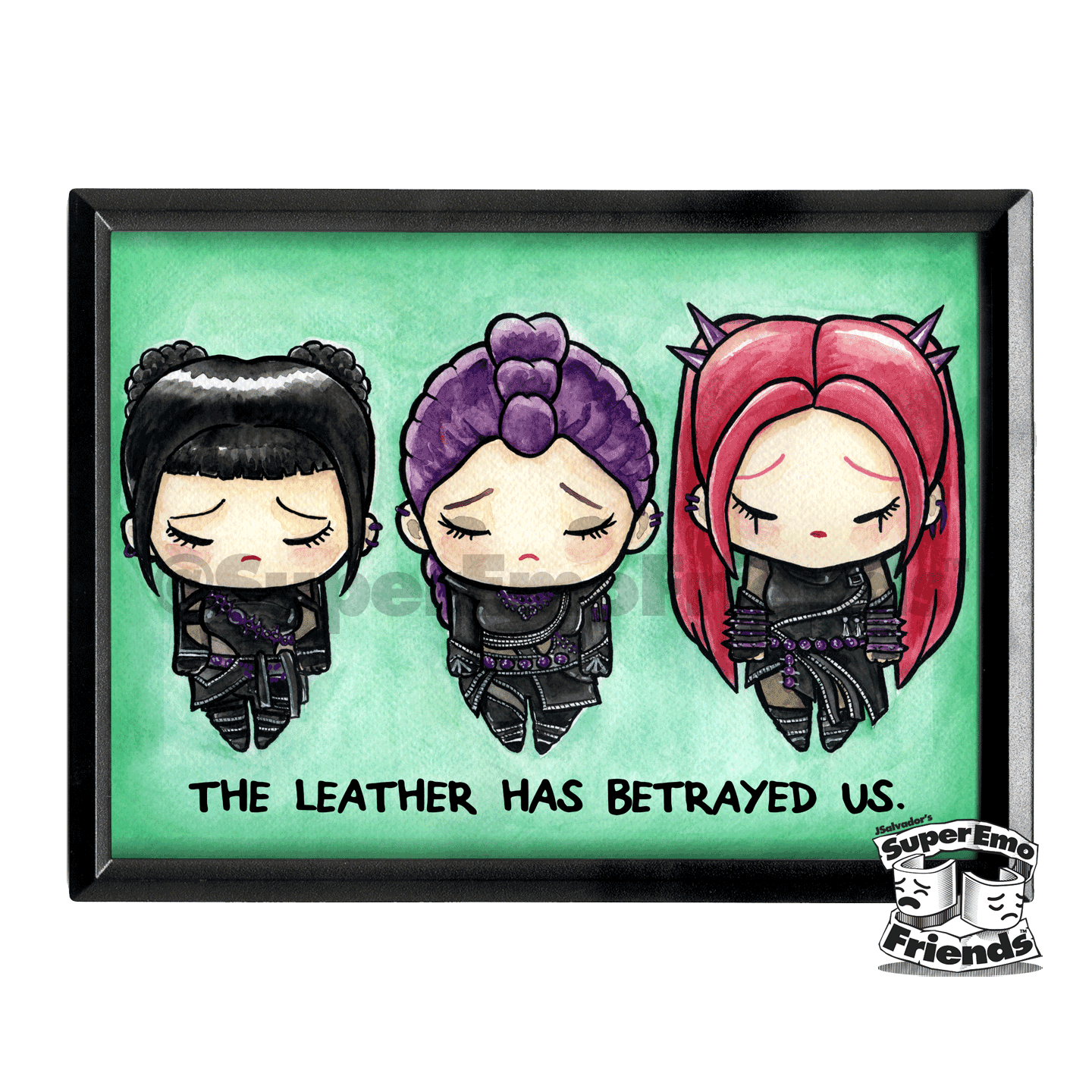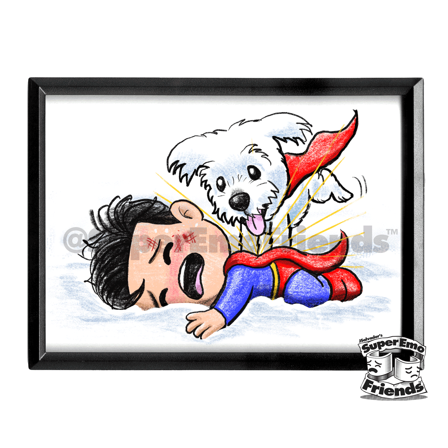 Imagine having a collection of your favorite characters parodied with a touch of super emo joy, showcased in stunning 5x7 frames. These prints, designed by the talented J.Salvador, have been a major hit at comic conventions and stores across the country. Now, you have the opportunity to bring this trend-setting artwork right to your shelves! Crafted with precision and sadness, each 5x7 print is beautifully packaged and framed to enhance its emotional impact. The attention to detail ensures a premium product that your customers will laugh AND cry about for generations.