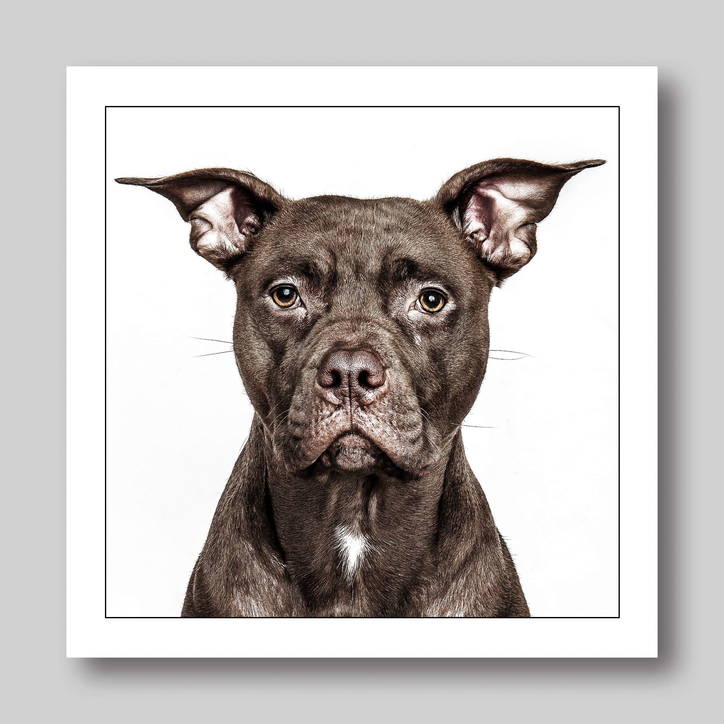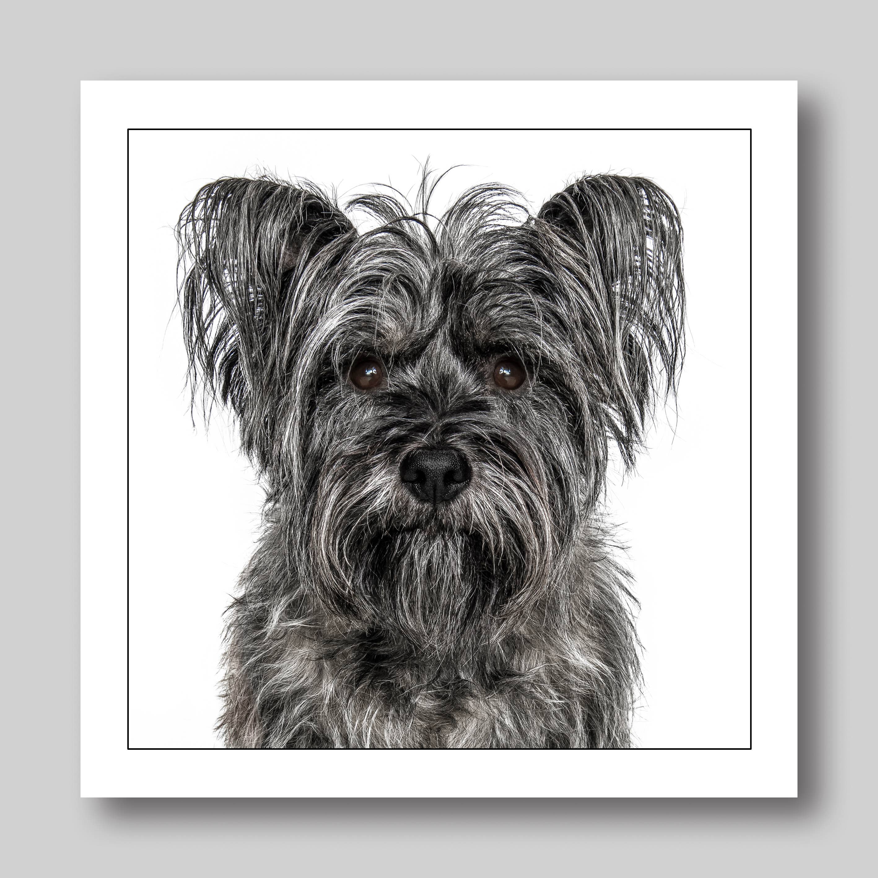For the past twenty years I have worked as a London based portrait and reportage photographer. Based in London working for magazines and newspapers and across Africa for charities. It was quite by chance, while on a photoshoot at a location house in London a few years ago, that I used the model’s dog as a stand in to check my lights while the model was getting ready. That evening when editing the days shoot I came across the image of the model’s dog. It was looking so intensely at me, as if it was going to jump out of the picture and start talking! From then on every shoot I went on, if they had a dog I would photograph it, just to see if I could get the same magic as the first dog… I did. I started photographing people’s dogs and putting them on cards as presents and, their popularity just grew. I now have a commercial range of 50 greeting cards of all different breeds and, the range is growing. I still get commissioned to photograph dogs on a daily basis and when I have time I also photograph the odd human.