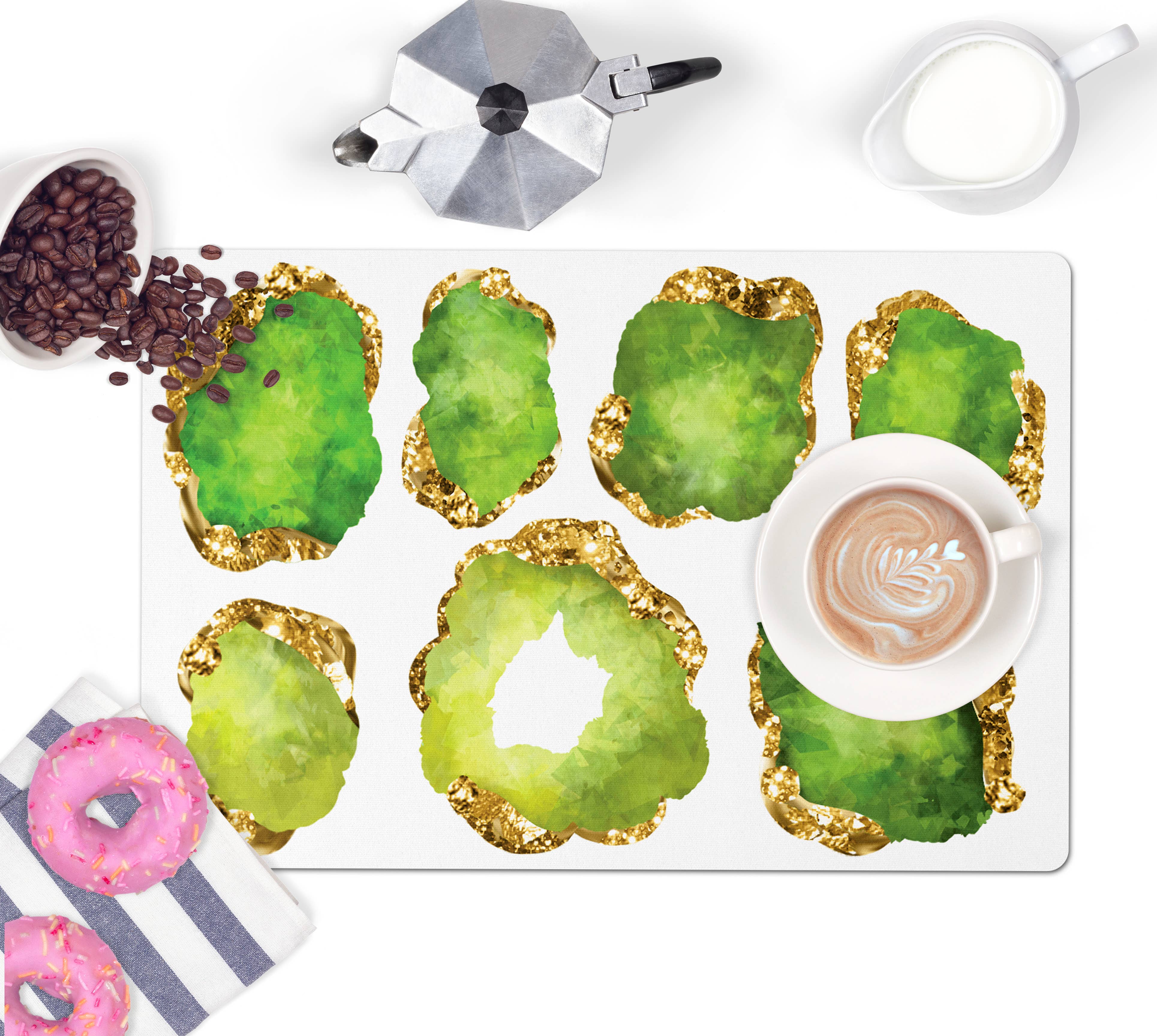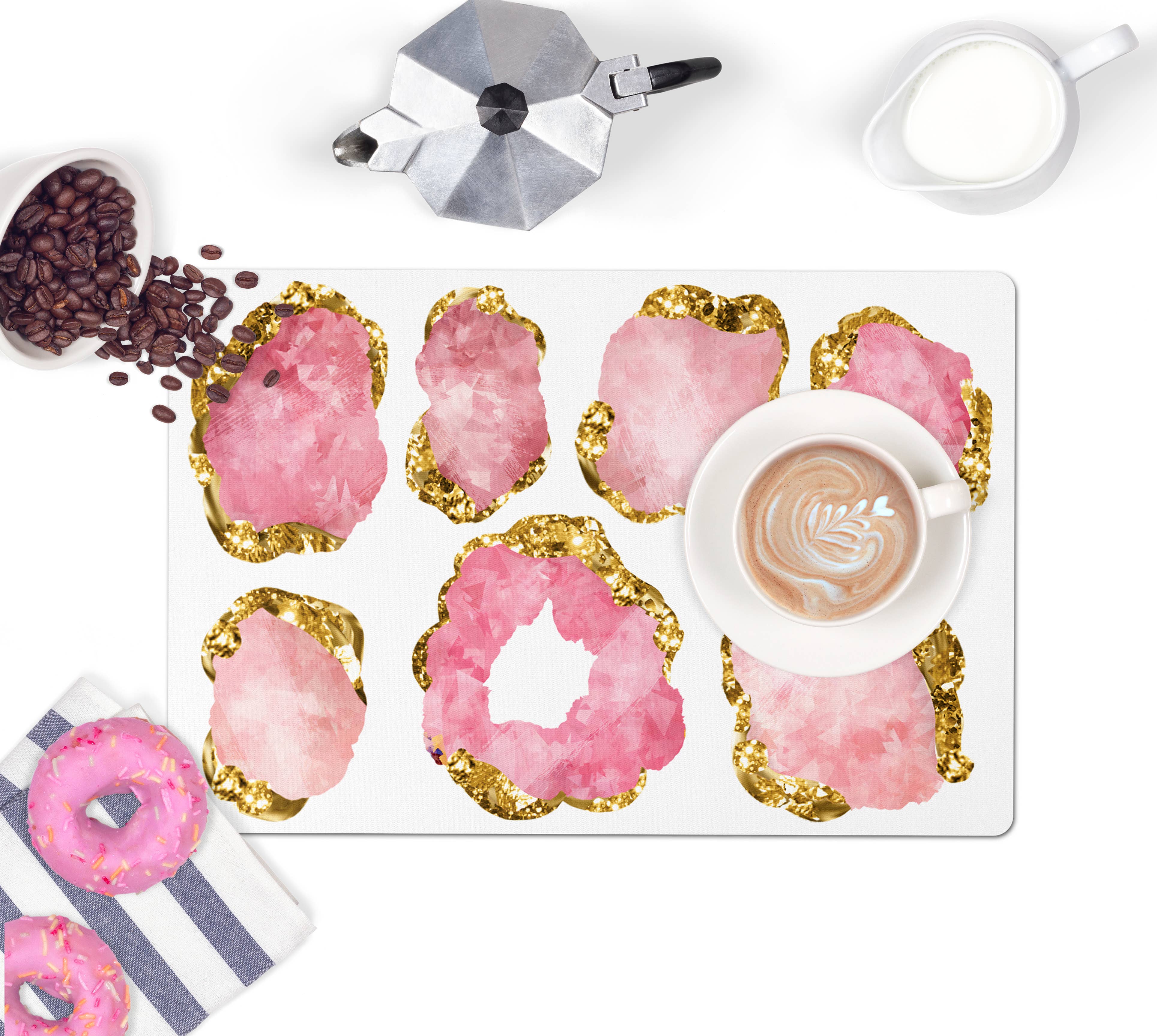 Aliza Darik chic and modern surface-protecting mats: pet food placemats, tabletop/kitchen counter mats and desk mats complement stylish home decor with colorful and eye-catching printed patterns. We combine our love of tropical and coastal styles with our passion for great design. Aliza Darik was founded in 1999 by sisters Alyssa & Darice. Their debut fashion collection of silk kimono-style blouses and handmade coordinating fabric flower accessories caught the eyes of buyers, stylists and editors across the country. In 2000, when HBO's hit series Sex and the City began featuring over-sized flower accessories on the trend-setting character Carrie Bradshaw, played by Sarah Jessica Parker, The New York Times featured an Aliza Darik flower choker in their Sunday Styles section. Aliza Darik accessories took off! They were scooped up by high end department stores such as Barneys New York & Japan, Henri Bendel, and luxury fashion boutiques around the world. Aliza Darik's fashion accessories were featured in top magazine editorial spreads - styled, photographed, and edited by some of the biggest names in fashion. After taking a pause to raise families and explore other business ventures, Alyssa & Darice relaunched Aliza Darik in 2021 to bring back the pretty and feminine spirit of the brand to the home market offering decorative home accessories. We are pleased to offer our unique hand printed surface-protecting mats to pet and home decor retail stores.