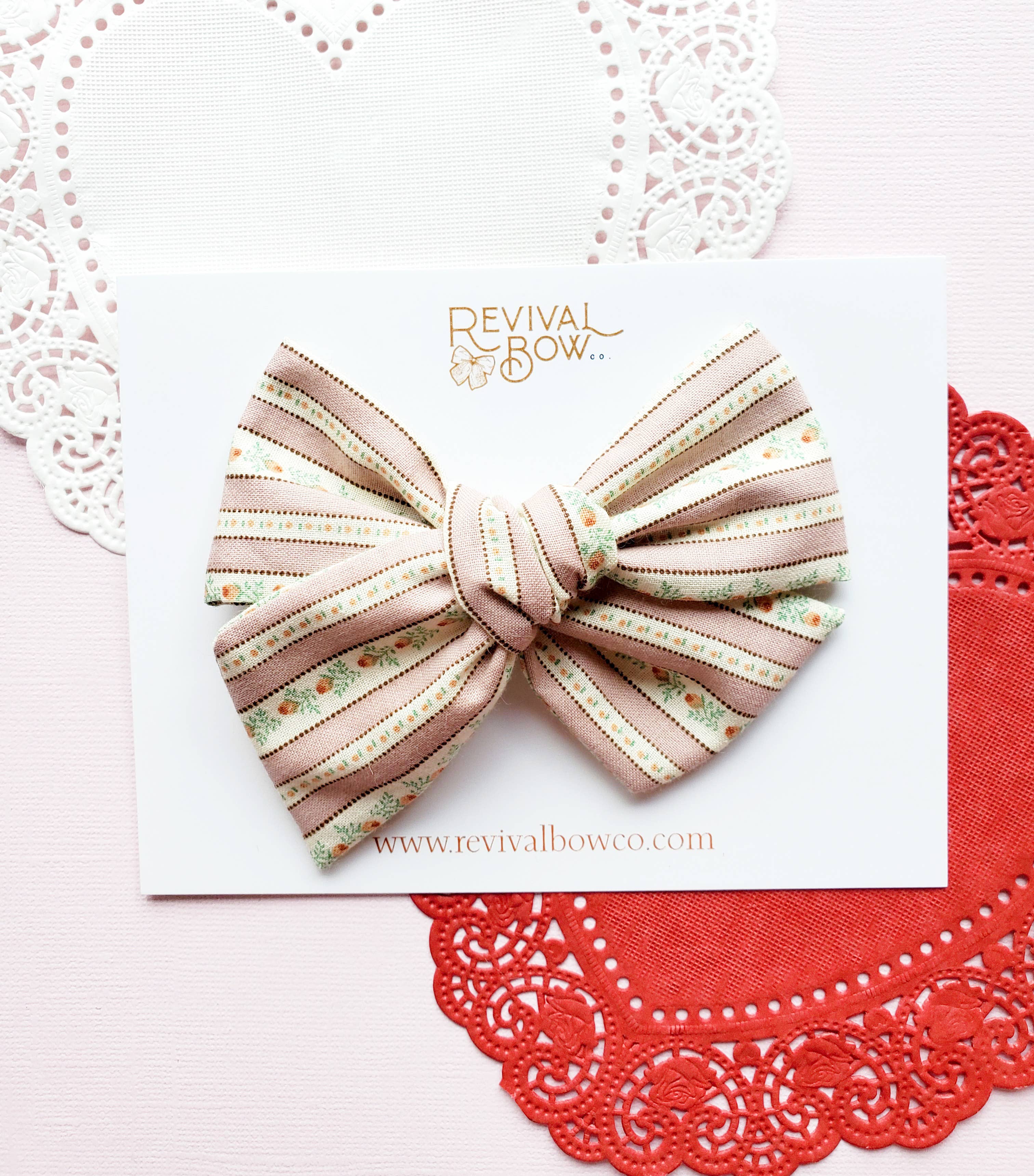 Welcome to Revival Bow Co! My name is Ashley, and I'm the owner and maker here at RBC. This isn't your typical bow shop, almost all of my bows are crafted from vintage and upcycled materials with many of my pieces being one-of-a-kind. Ever since I was a little girl, I've had a love for all things vintage. I remember spending hours in my grandmother's closet, trying on her vintage dresses and playing with her antique jewelry. As I grew older, my passion for vintage only grew stronger. As a mom of two little girls and a lover of vintage style, I wanted to create bows that were both special and practical. I love scouring antique malls and thrift stores, searching for the perfect vintage fabrics and hankies to create my unique hair bows. Now, I'm thrilled to offer my vintage and small batch hair bows to wholesale buyers like you. Each bow is carefully crafted by my hands, with attention to detail and quality. My items will add the perfect touch of vintage charm to your store. I hope you and your customers love them as much as I do!