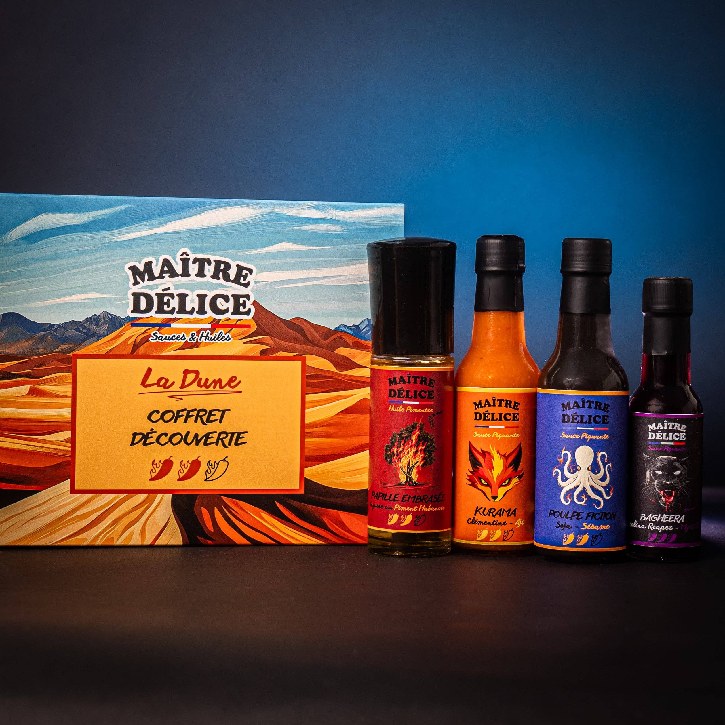 Maître Délice is a French brand specializing in the creation of artisanal hot sauces and oils, designed for taste enthusiasts as well as gourmet shops, concept stores, or restaurants seeking original products. Each recipe is developed from quality ingredients, with particular attention paid to the balance of flavors and the intensity of the heat. Inspired by South American and Asian influences, we strive to offer a varied range, from mild sauces to extreme creations, including perfectly mastered chili infusions. Born from a passion for cooking and intense sensations, Maître Délice combines artisanal expertise, culinary creativity, and responsible production. Our products are made in small batches in our workshop in France. However, what sets us apart, beyond our overflowing humor and legendary humility, are our deep values. We are firmly convinced of the power of culinary creativity to bring cultures and individuals closer together. Whether you are an experienced chef looking for a spicy twist to enhance your dishes or simply a food lover eager to explore new flavors, our hot sauces and oils are here.