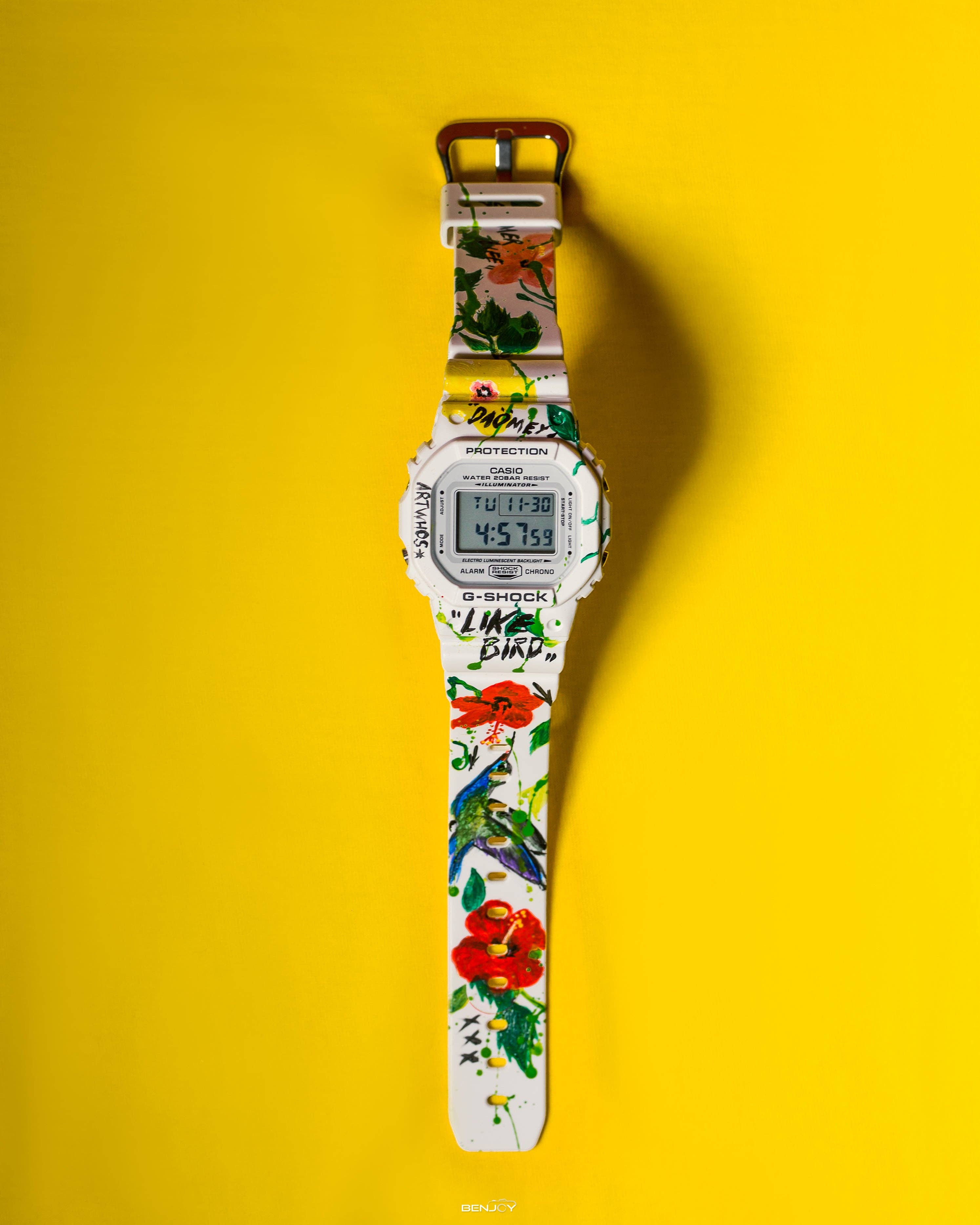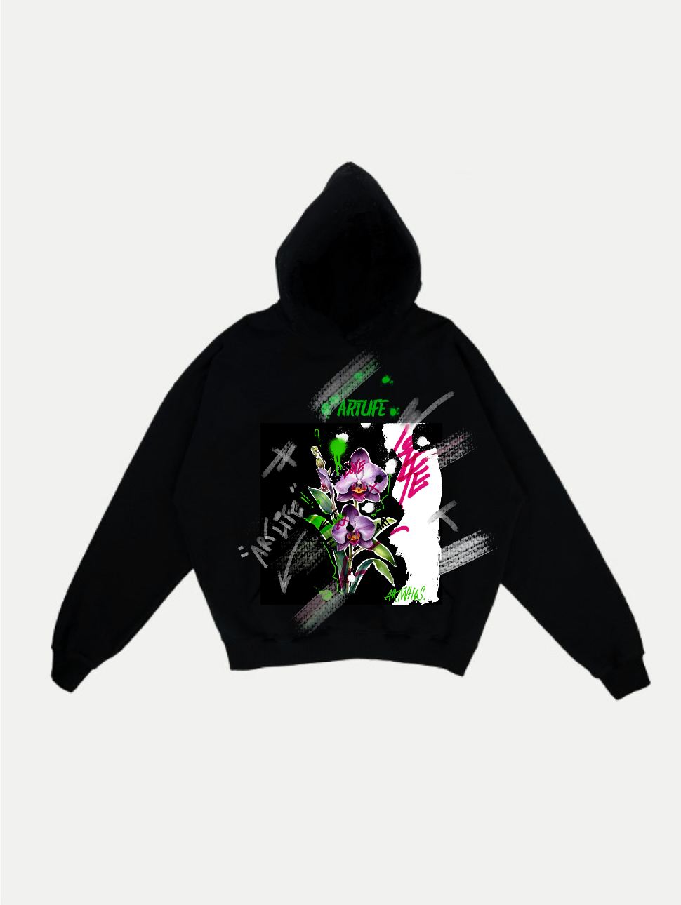 Artwhos (whose real name is Jules Garin), is a Parisian painter from Guadeloupe. He has been drawing from an early age, a self-taught apprenticeship that goes through “doing it” and inspired by his mother, also a painter, and an uncle artist who will become his model. Attached to sneakers, he will try his hand at customizing a Nike Air Force, which will be a success. He will then be encouraged by his brothers to follow this path, until he reaches pairs of custom shoes for footballer Cristiano Ronaldo and rapper Booba. Then he will customize jackets for Fianso, Gims or rapper Seth Gueko. It is pop culture that Artwhos is inspired by. Marvel heroes, the manga universe or the Star Wars saga. At the same time, it shapes personal work, more abstract and more spontaneous. Of the tables that he runs, after having “observed a lot” he explains. Taking time, watching, contemplating the reflections of the sun are the first fruits of the action of painting. The creative process is permanent at home, ideas bubble, and it is in front of the canvas, that he transcribes what he has in his head, as precisely as possible, knowing that like most artists, he remains an eternal dissatisfied. See the store