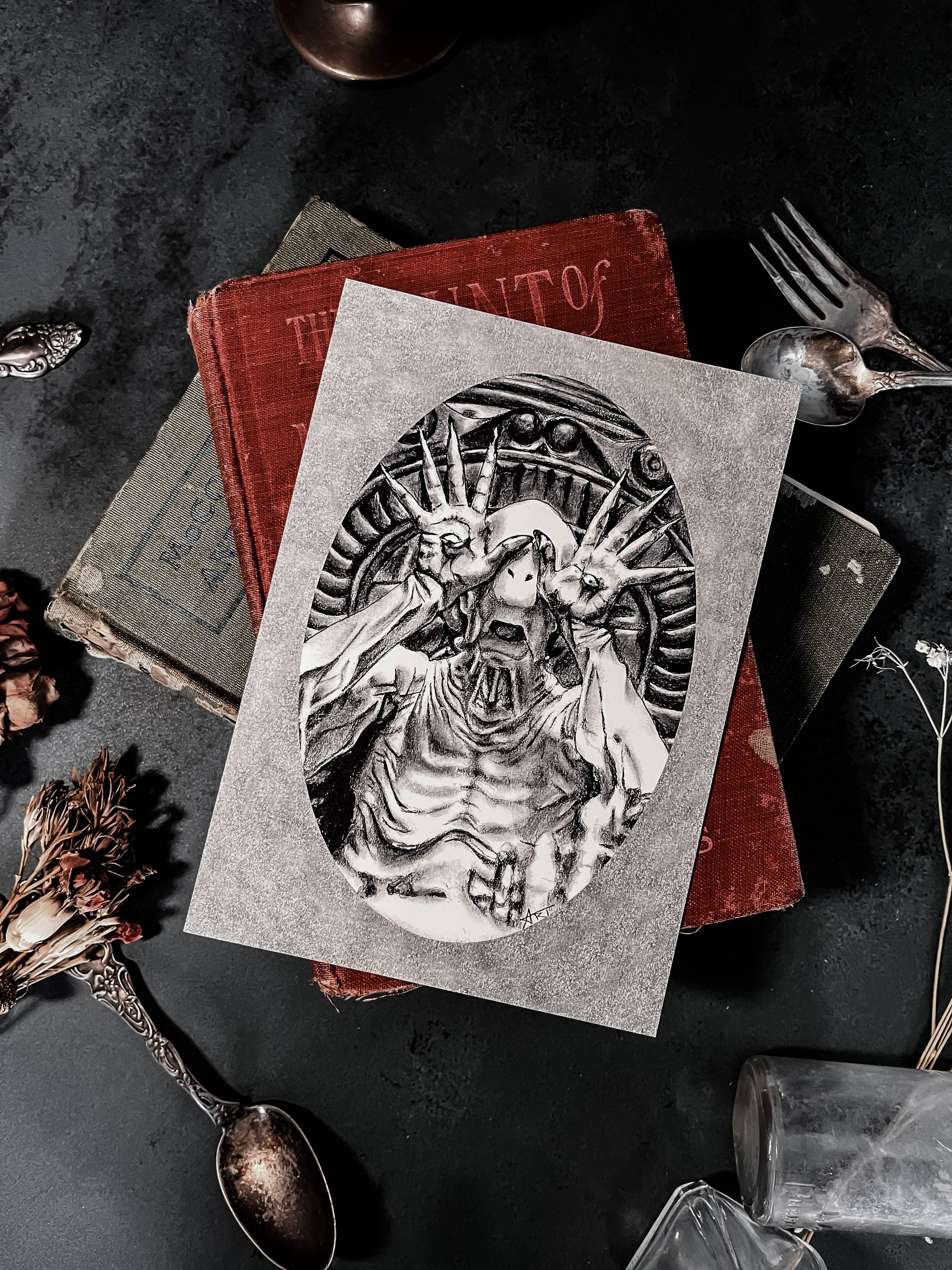 Welcome home, Witches! House of Hex = Hexenhaus /ˈhæksen/ [haːu̯z̥] The name House of Hex is a combination of the german word for Witch House and the English word hex. I wanted to combine both of my homes, America and Switzerland, and their languages. Ever since I was a little kid, my dream was to own a victorian/ witch house, that was the inspiration behind the name. I have been drawing and painting for as long as I can think back. Art and victorian architecture and design have always been my biggest passions and I am so happy I now get to combine both. My grandma has been an inspiration for my art, with her, it all started. Other than that, I am self-taught, and forever learning new things. Besides art and architecture; history, languages, witchcraft, mental health, and rock/metal music are some of my favorite things.