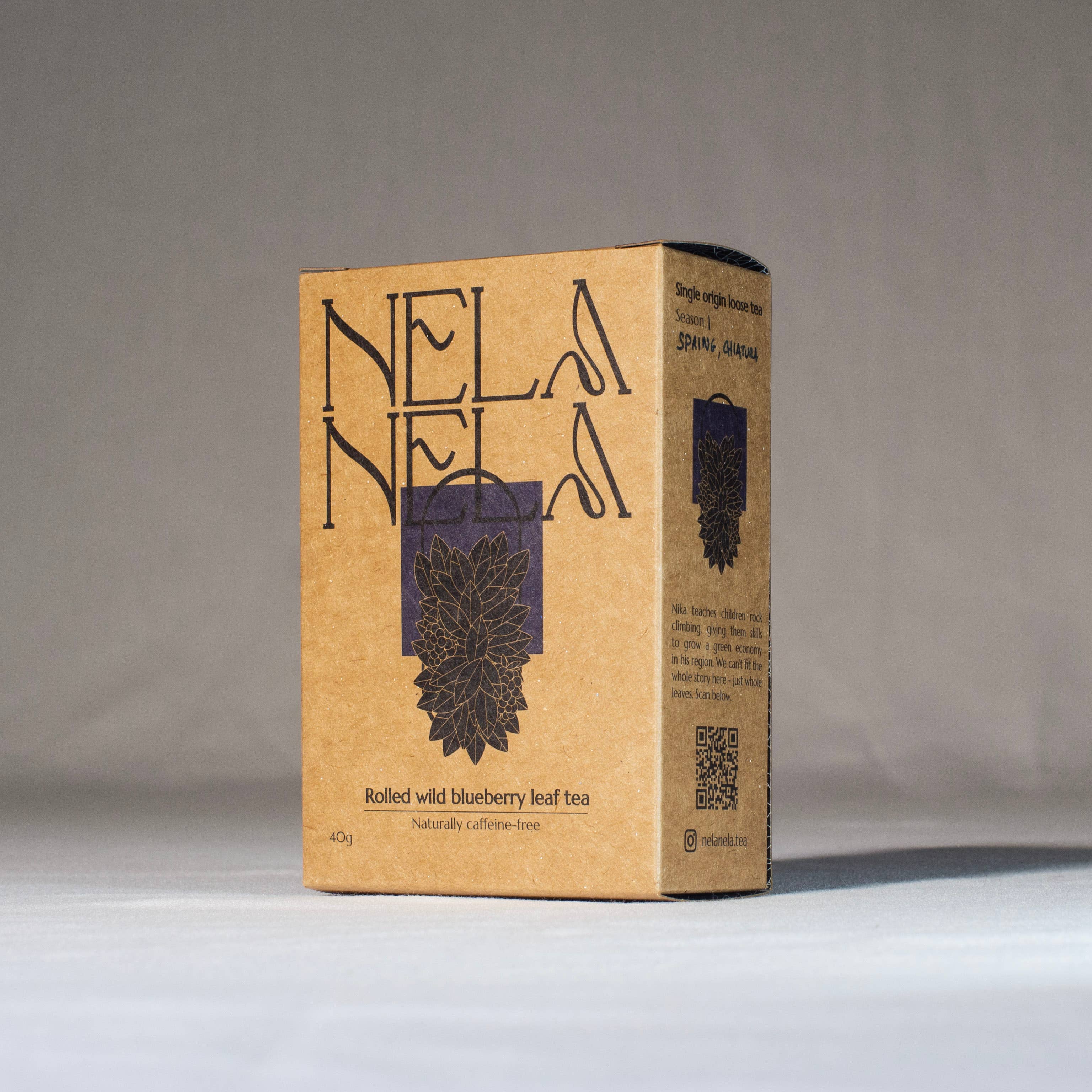 Nela-Nela introduces unique fermented botanical teas from Georgia in the Caucasus to the UK. Our teas bridge the gap between herbal and black, white and green tea. Inspired by ancient tea tradition and the Silk Road, Georgian tea artisans wither, roll and ferment diverse leaves to create full-bodied teas with beautiful, twisted leaves. These are the highest quality, most wonderfully crafted alternative to herbal teas that appeal to both tea and herbal drinkers alike. They have been drunk for their high anti-oxidant and vitamin content for centuries. Our story We discovered these teas whilst living in Georgia for three years where we established direct relationships with artisanal tea makers. We've been involved in every step of the process, from production to packing. In Georgia, Nela-Nela is a philosophy: slow down, the best things in life take time. Our artisans Season 1: Shota and Nika Shota is the only tea maker in the world to make Fermented Mulberry Leaf and Wild Rolled Blackberry Leaf tea in this way. He spent 2 years perfecting his recipes. Nika crafts Rolled Wild Blueberry Leaf tea alongside organic white, green and black tea. Framed by the jagged teeth of the Caucasus' peaks, wild blueberry bushes grow abundantly in his region, Imereti. He uses the orthodox rolling method of tea making to create beautiful twisted wild blueberry tea leaves. Our packaging is biodegradable.