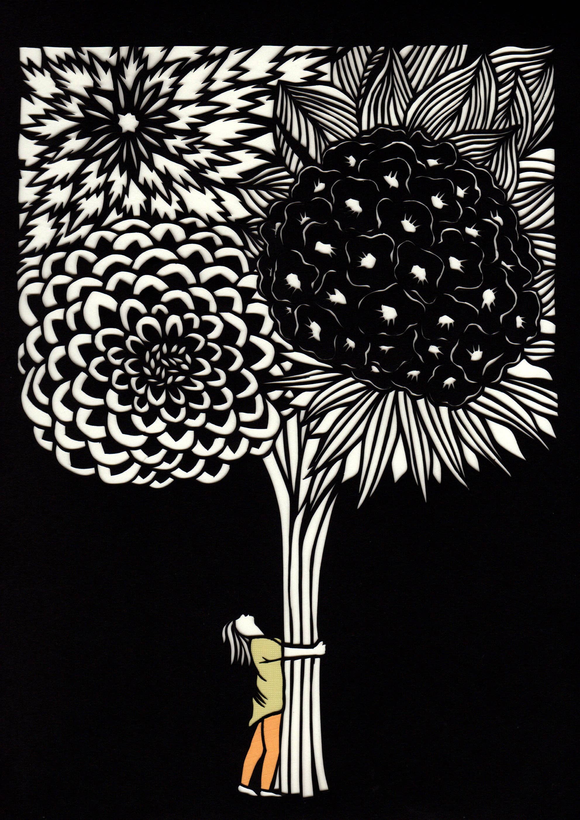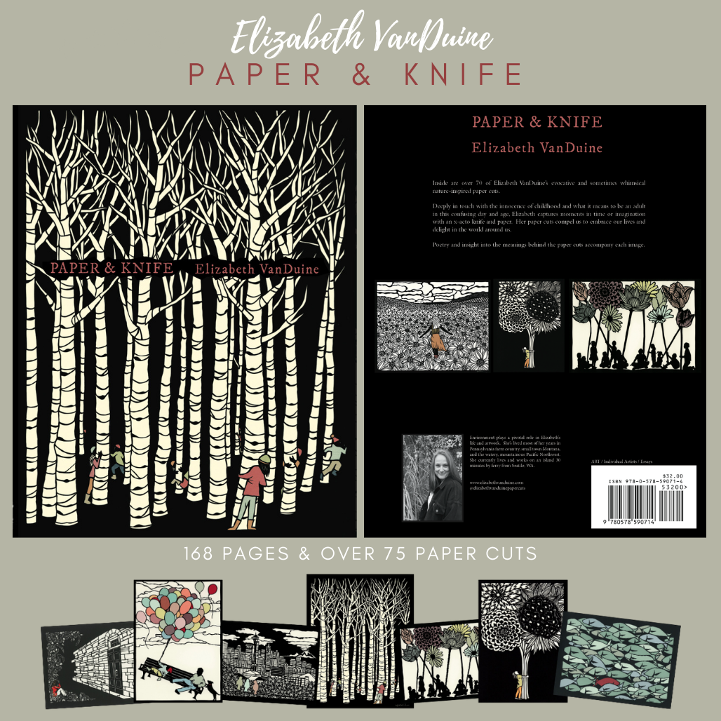 I am a compulsively creative person by nature and a paper cutter by trade. Inspired by things I see and experience in my daily life, I take photographs, sketch and then cut images out of a single piece of black paper with an x-acto knife. I complete each paper cut by fixing one or more colored papers on the back with bookbinding glue. Spending the majority of my life in Pennsylvania farm country, Western Montana, and the watery, mountainous Pacific Northwest, nature has always been key to my happiness and creativity. Nature’s complexity, beauty, and ability to elicit emotion inform and inspire me every day and my affinity for all living things manifests in every piece of art I create. After 15 years of honing my craft I now have 123 greeting card designs and 60 11x14 poster print designs available. Artwork crafted and reproductions printed in the USA. PLEASE NOTE- RETURNS ONLY ACCEPTED IN CASE OF DAMAGED ITEMS DURING SHIPPING