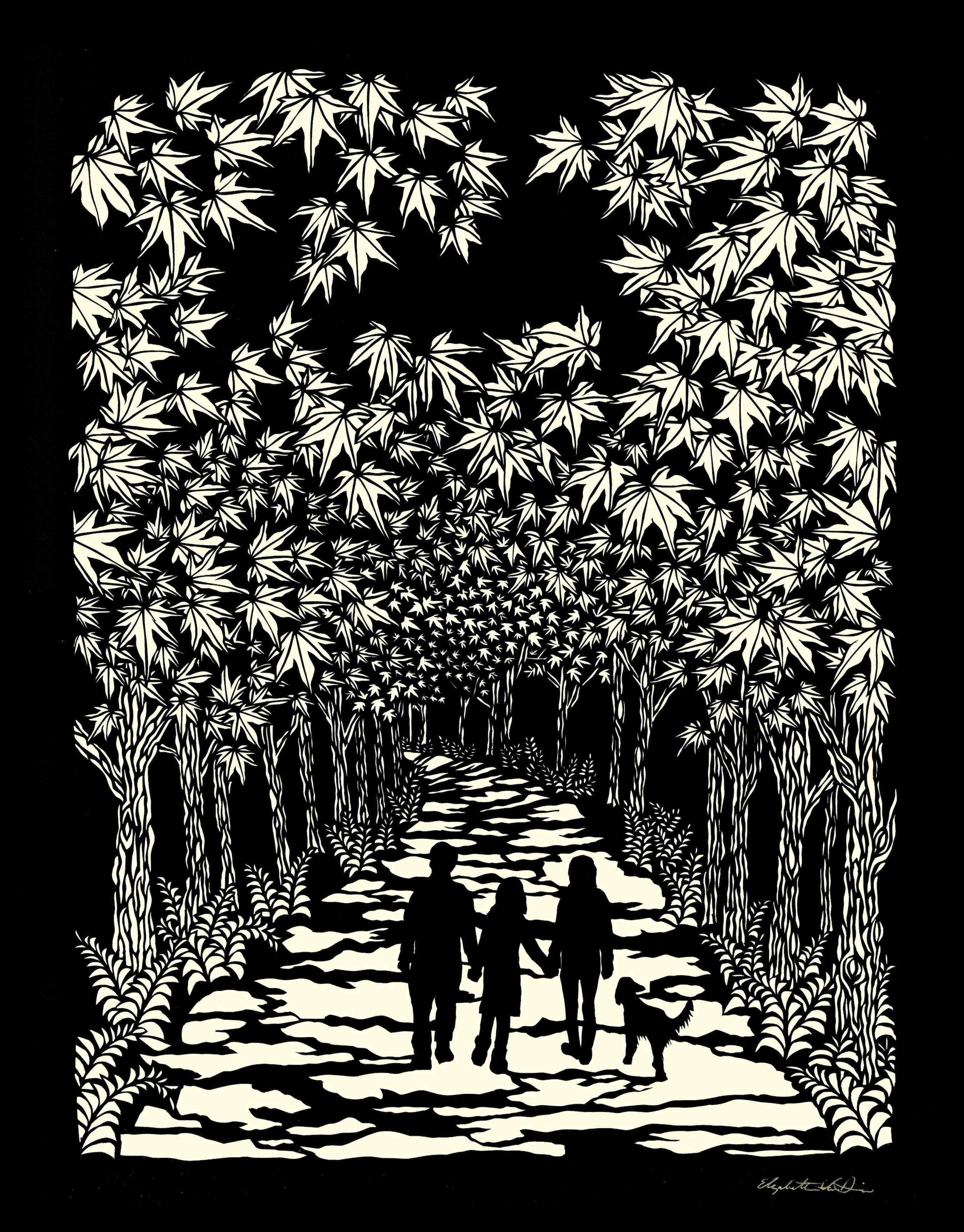 I am a compulsively creative person by nature and a paper cutter by trade. Inspired by things I see and experience in my daily life, I take photographs, sketch and then cut images out of a single piece of black paper with an x-acto knife. I complete each paper cut by fixing one or more colored papers on the back with bookbinding glue. Spending the majority of my life in Pennsylvania farm country, Western Montana, and the watery, mountainous Pacific Northwest, nature has always been key to my happiness and creativity. Nature’s complexity, beauty, and ability to elicit emotion inform and inspire me every day and my affinity for all living things manifests in every piece of art I create. After 15 years of honing my craft I now have 123 greeting card designs and 60 11x14 poster print designs available. Artwork crafted and reproductions printed in the USA. PLEASE NOTE- RETURNS ONLY ACCEPTED IN CASE OF DAMAGED ITEMS DURING SHIPPING