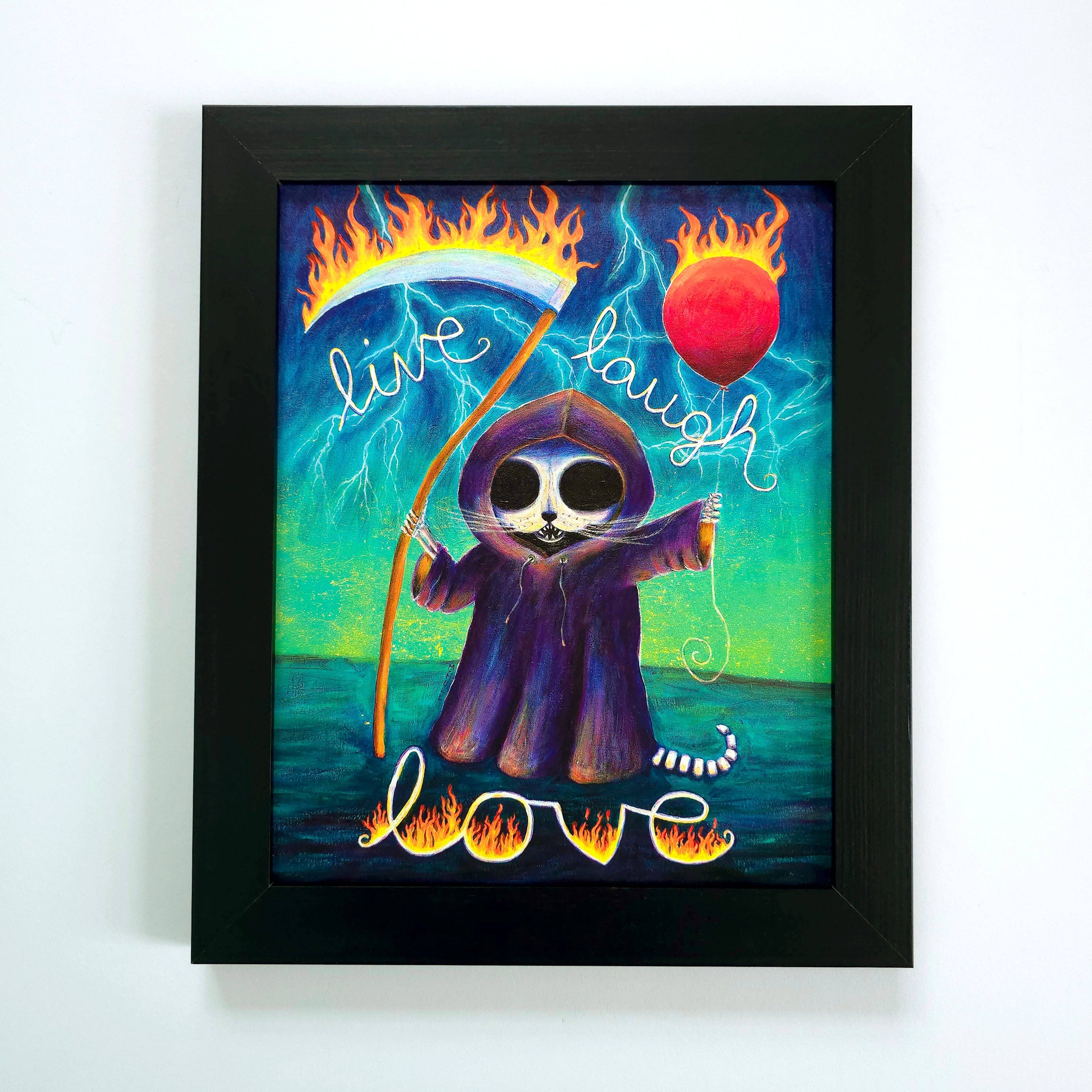 Martha Hull didn’t become an artist because it seemed fun—she started painting because the stories in her head refused to stay quiet. For her, making art is how she makes sense of a world that’s equal parts absurd and beautiful. It’s expression, catharsis, and comedy in equal measure. Martha Hull paints what life feels like—hilarious, strange, a little dark, and totally worth laughing at. Her “cute and deadly” characters, with their big eyes and hand-lettered quips, navigate life’s absurdities with charm, wit, and a touch of chaos. It’s beautiful, twisted, and deeply human. Every design begins as an original painting in her Burlington, Vermont studio, where Martha layers bold acrylics, inks, and colored pencils until the magic per square inch is off the charts. From there, she lovingly creates high-quality prints and cards in-house, making her art accessible, giftable, and surprisingly relatable. Martha believes humor heals, skeletons are always smiling, and great art doesn’t need to be expensive. Her work resonates with people who see the weird in the everyday—and appreciate a good laugh with their beauty. Wholesale buyers love Martha Hull’s art for its emotional punch, craftsmanship, and loyal customer appeal. From shops to galleries to farmers markets, her products turn browsers into fans and fans into collectors.