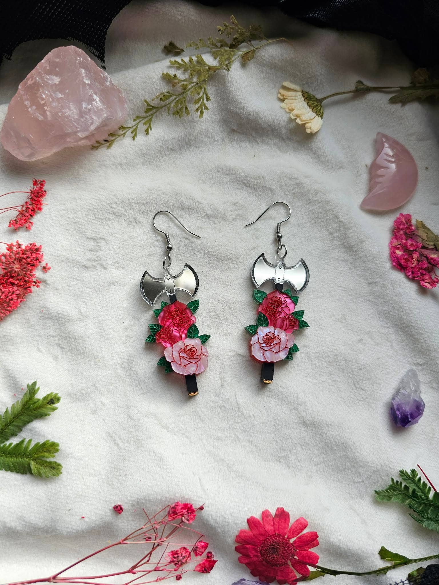 Hi! I'm Christa Hanna, the sole owner of Fallen Pine Studio. I create witchy, magical, and whimsical laser cut acrylic jewelry, from my home to yours. My art is heavily inspired by traditional tattoo culture, books, 90s nostalgia, whimsy, dark academia & gothic vibes. Quite the mix, but it's all of my favorite things! :) I want to put more art into the world. Creating, designing and producing every piece fills my heart with adoration knowing that I am able to do just that.