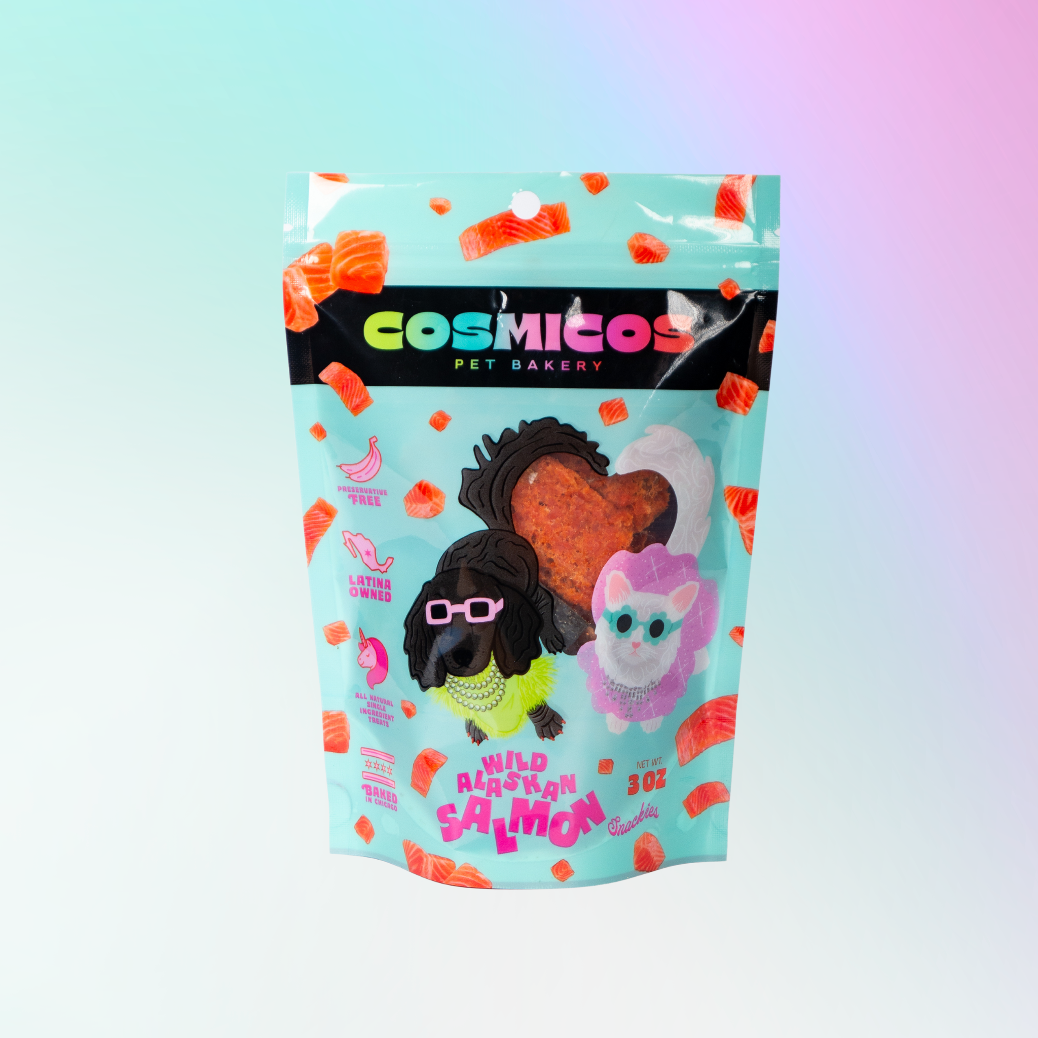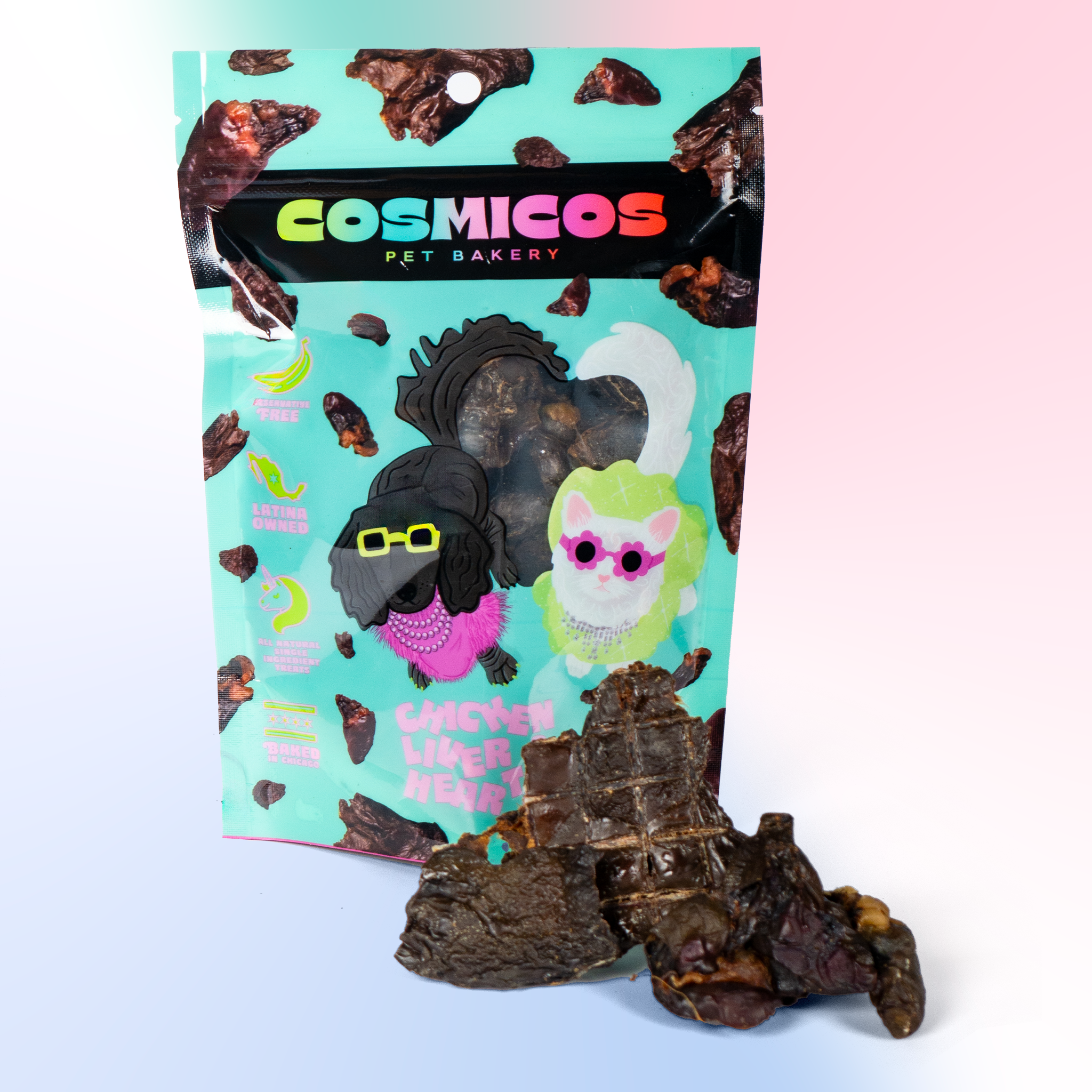 Cosmicos Pet Bakery is a Latina-owned, Chicago-based small business specializing in all-natural, handmade treats for cats and dogs. Founded by former professional chef Kimberly Padilla, we bring a culinary approach to pet wellness, crafting high-quality treats that prioritize both flavor and nutrition. We offer a variety of small-batch products, including freeze-dried single-ingredient proteins, gourmet cookies, and nutrient-rich sprinkles, all made with ethically sourced, human-grade ingredients. Our treats are grain-free, preservative-free, and suitable for pets with food sensitivities or raw-friendly diets. Everything is handmade in-house to ensure consistency, quality, and freshness. With eye-catching packaging and a strong brand following, Cosmicos is a great fit for retailers looking to offer thoughtful, health-focused pet treats their customers can trust.