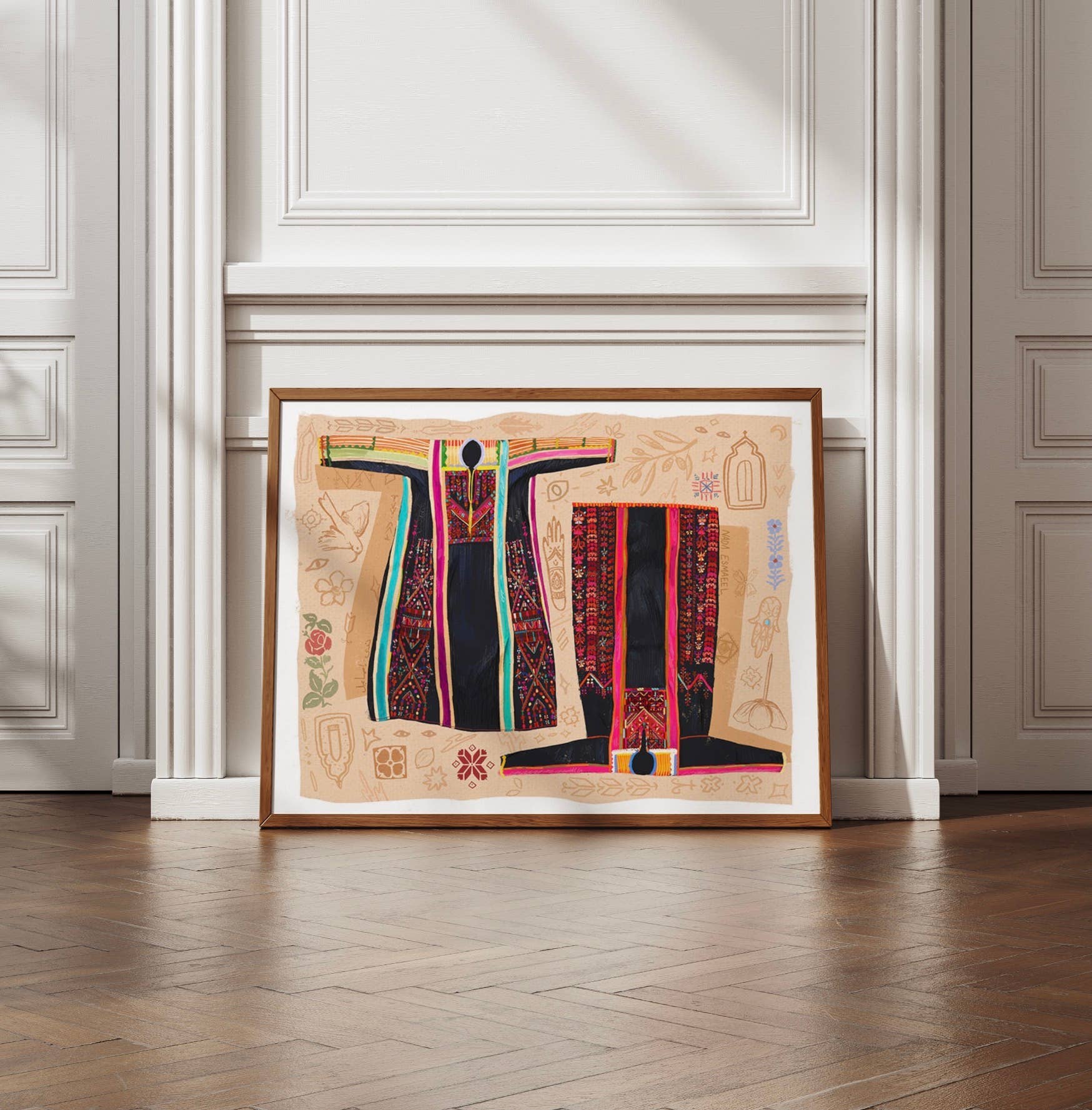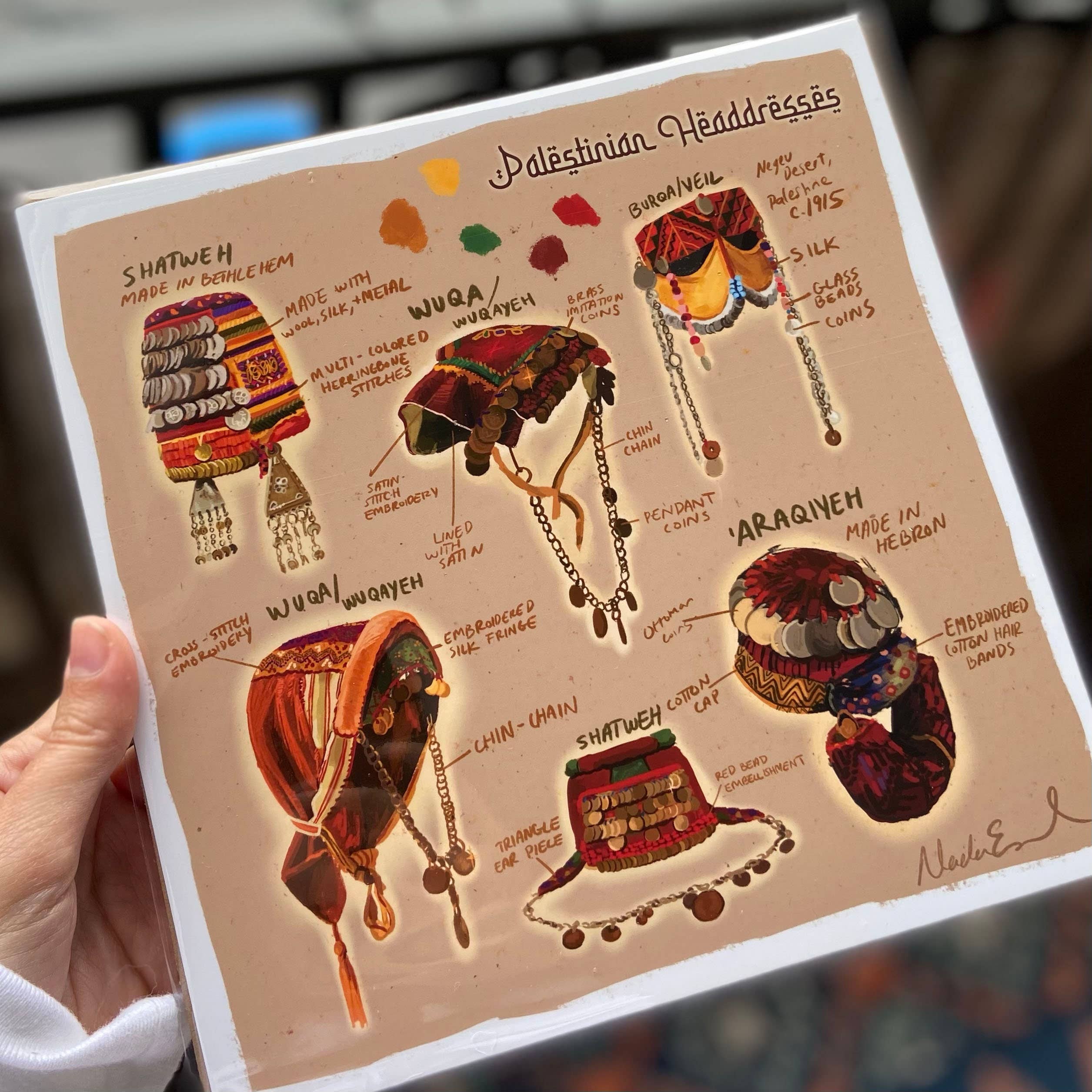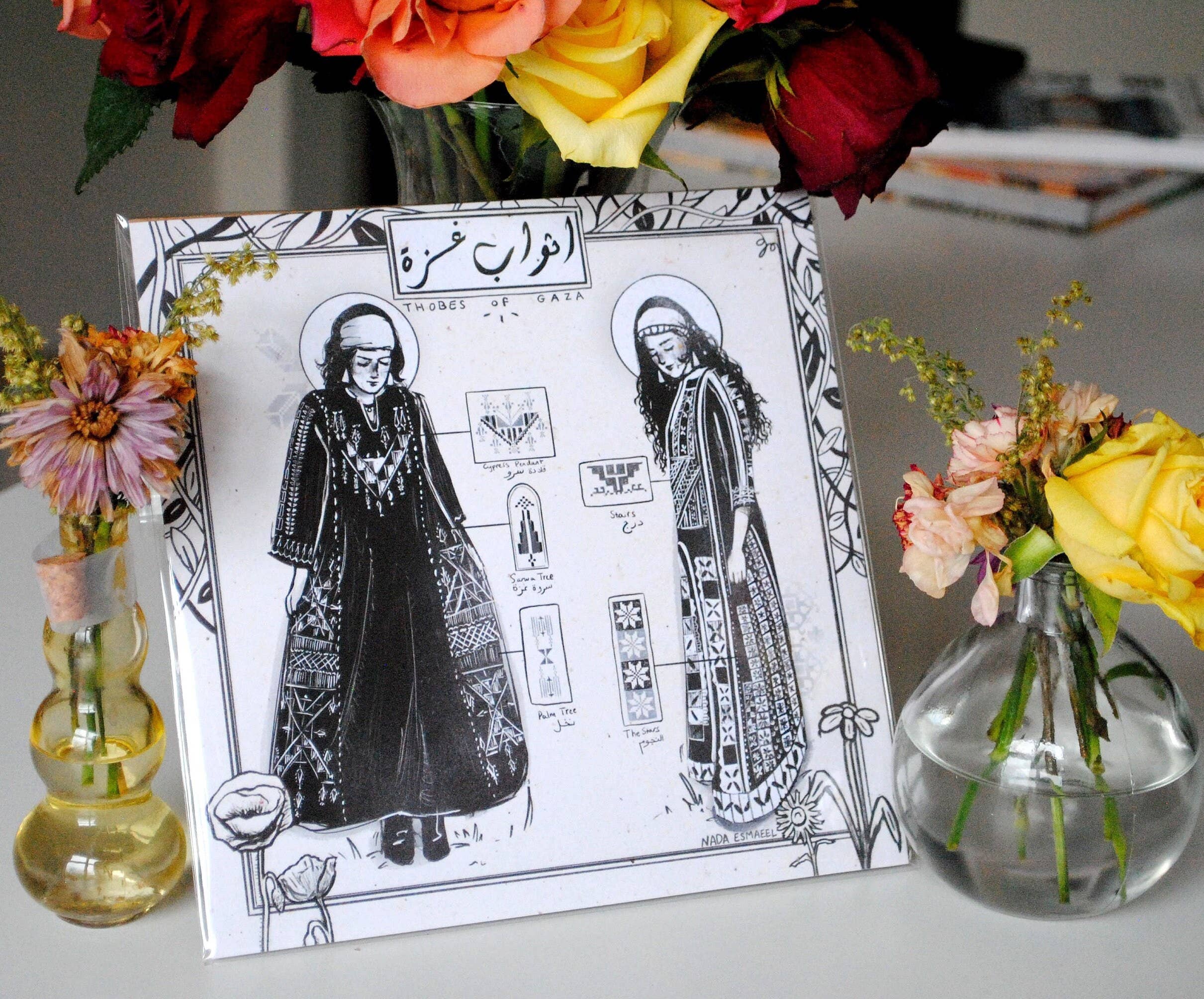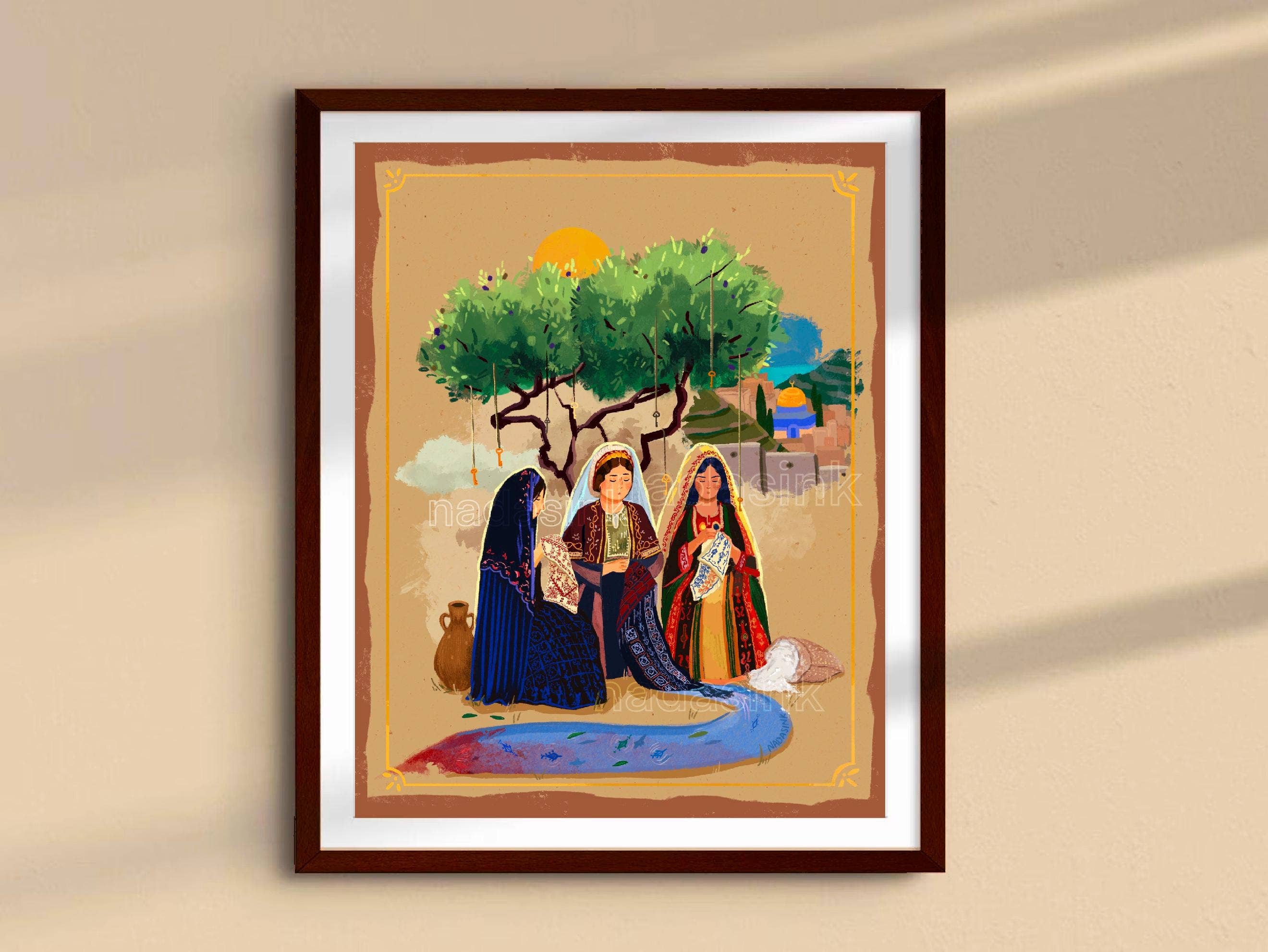 Nada's Ink is run by Nada Esmaeel, a Palestinian diaspora artist whose work is heavily influenced by her continued exploration and reconnection to her heritage, often inspired by and invoking the vibrant colors and geometric motifs of traditional Palestinian Tatreez in her artwork. Nada’s personal work focuses on the celebration and representation of repressed SWANA-region cultural history, women, tradition, and connections between land and people.