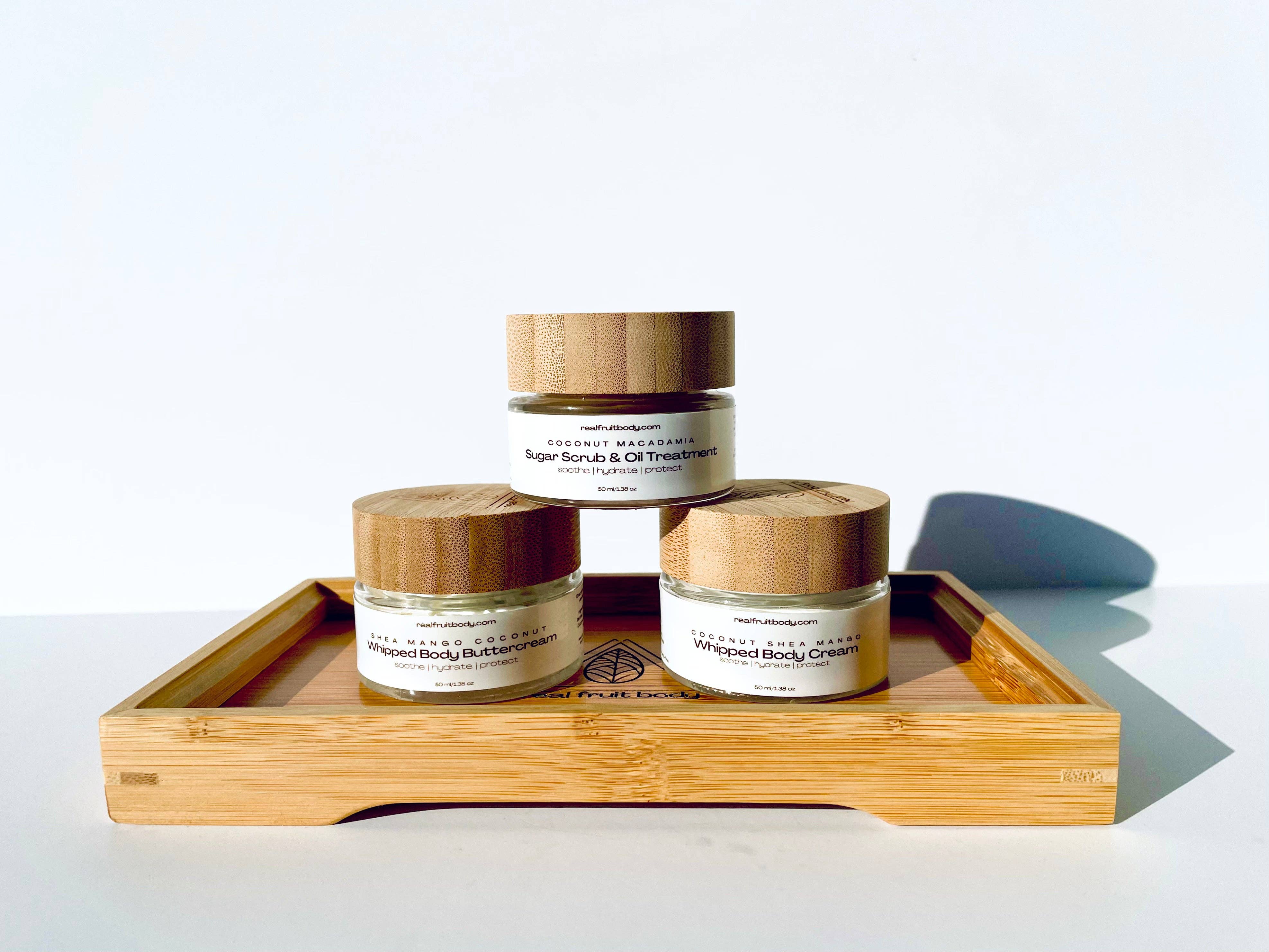 Trademarked & Made in the USA our 100% all-natural products formulated for sensitive skin are preservative-free, dye-free, and additive-free. Certified Cruelty Free by Leaping Bunny, Real Fruit Body strives to create Human & Earth Friendly products that are safe for all ages & skin types. Made with the finest organic and natural in-house blends of exotic fruit, nut, and vegan plant based oils with vitamin and mineral rich properties, our concentrated product line range refines, hydrates, replenishes, and feeds your skin while keeping you and your environment safe from chemicals and ingredients that just aren't necessary. Proud to be chosen by British Vogue as 1 of 40 companies for their "Glowgetter" campaign for up-and-coming brands to keep an eye on in 2021, this milestone led RFB to features at Glamour UK online, Condé Nast Traveller and as a sponsor in the 73rd Emmy Awards Official Gifting Suite benefitting the Television Academy Foundation's non-profit educational programs for students in which our Coconut Mango Shea Whipped Body Cream was gifted to the winners and presenter of the Emmy Awards. Recently mentioned in the LA Times Gift Guide by one of our retail partners Cici n Tux in Glendale CA. Check out our Five Star ratings on Google. Please inquire for product samples. (Any print promotional material such as product booklets can be translated into any language at request)