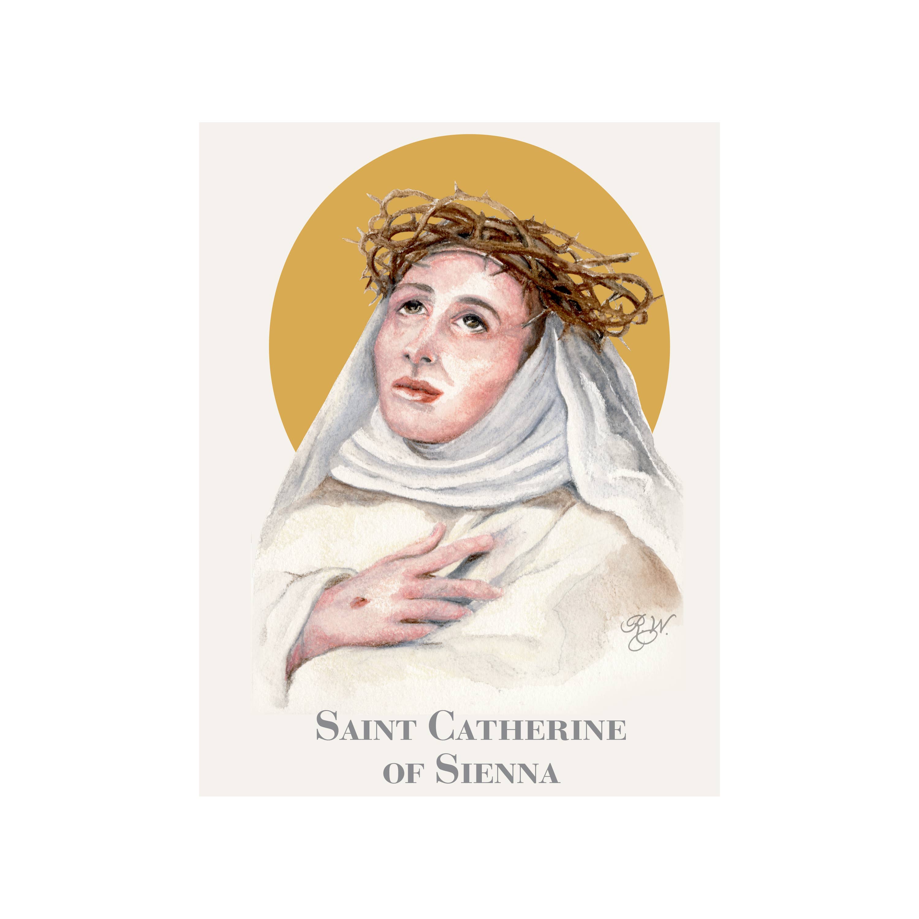 Rachelle Woodard is an artist and interior designer from southeast Louisiana, inspired to paint many of the Catholic Saints, both ancient and modern day. As she paints a particular saint, she prays for their intercession to capture their likeness, with the mission of promoting these saints in a new and fresh way, as well as introduce people to the richness and beauty of their lives. The cards are a small way of offering thanksgiving to God for His many gifts.