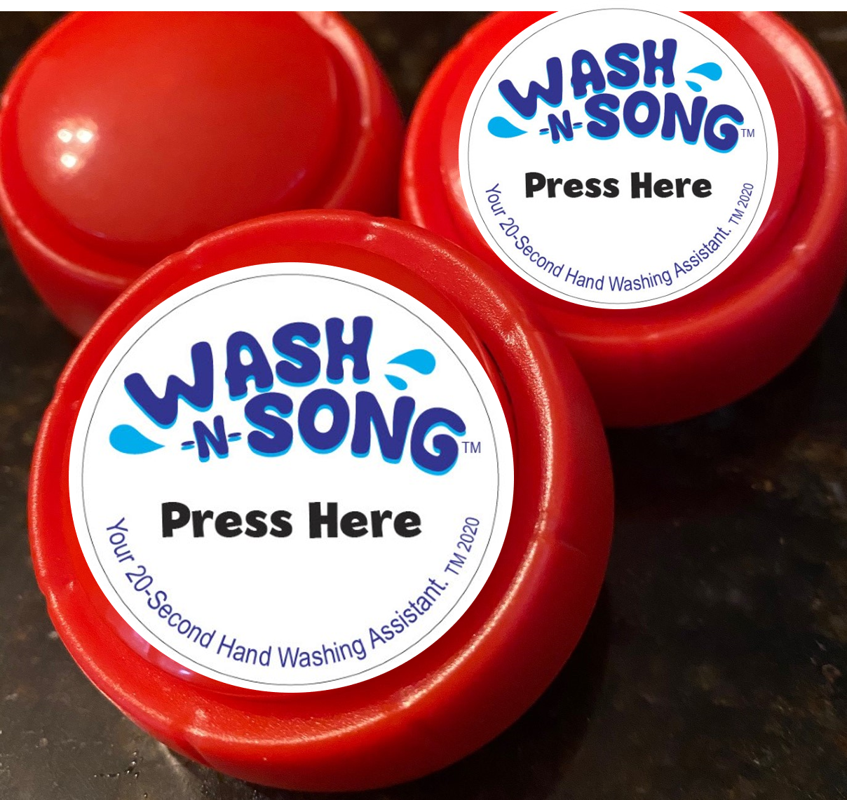 The Wash-n-Song is simple: it times you for 20-seconds when you wash your hands. No need to sing Happy Birthday anymore; the Wash-n-Song Button does it for you! Keep your hands clean with help from the Wash-n-Song! Just press and wash. For bathrooms, kitchens or just about anywhere you wash and wipe your hands! The Wash-n-Song Button teaches kids (of all ages!) proper cleaning hygiene. Perfect for homes, schools, pre-schools, play centers & gymnasiums, arts & crafts facilities, and more. It is also perfect for restaurants, offices and community bathroom facilities, senior and assisted living facilities and countless more places. Basically - if you have hands and if you wash your hands - use the Wash-n-Song Button to time you for 20 seconds. TO ACTIVATE & USE: 1. PULL TAB FROM BOTTOM TO ACTIVATE BATTERY 2. PUT ON SINK OR COUNTERTOP IN A SMALL DISH TO KEEP DRY (the button is water resistant, not waterproof) 3. PRESS THE BUTTON, START WASHING AND SING-ALONG! Promoting hand washing is more important than ever. This item was created during the pandemic and as they say – from necessity. The Wash-n-Song Button/Timer is our way to help control the spread. The Wash-n-Song is new to market and currently being sold on its website and other sites.