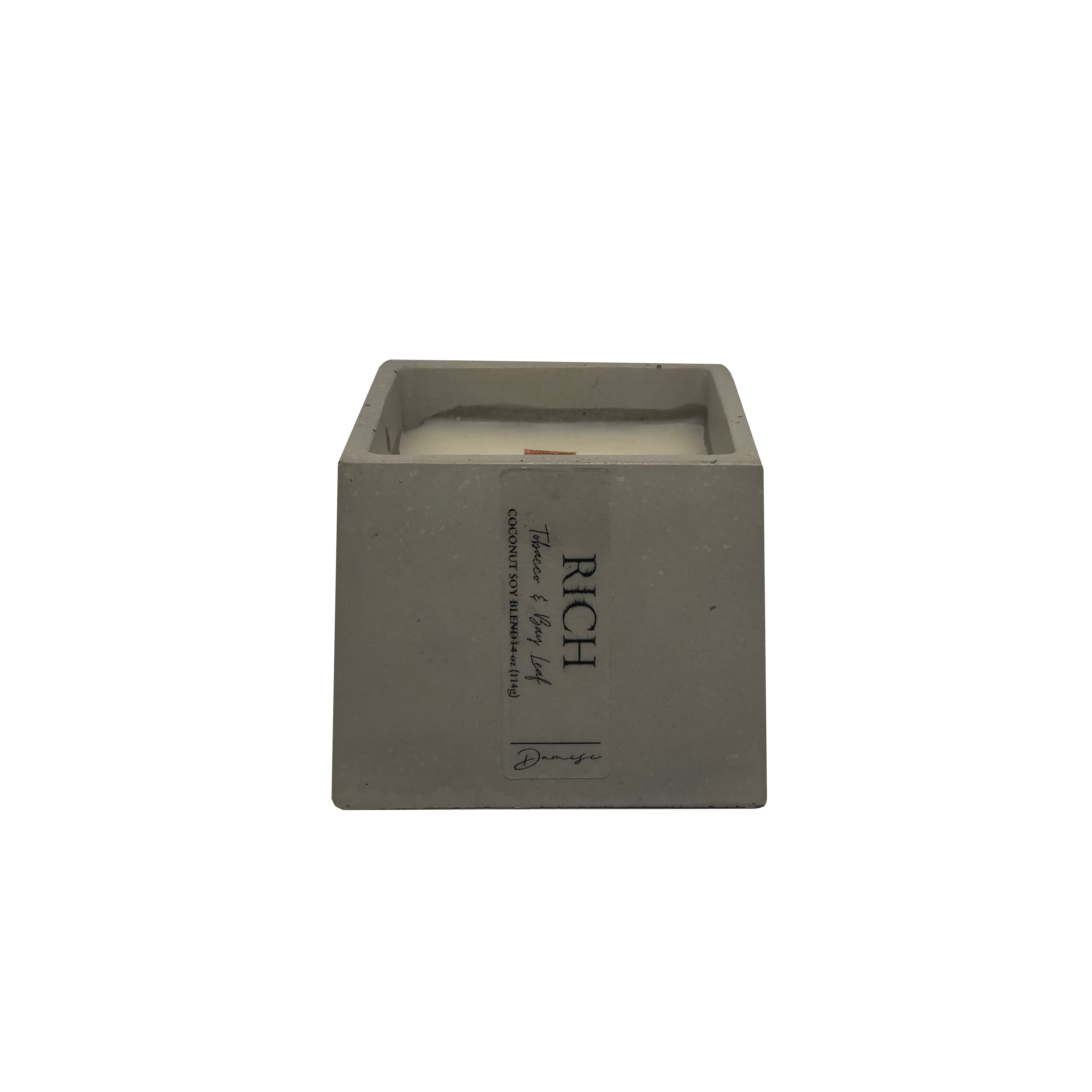 Damisi is a decor company started by a stay at home mom who wanted to creatively express herself. Damisi is dedicated to my daughter, whose middle name is Damisi, meaning “cheerful” in Swahili, because there is power in a name. Currently specializing in concrete creations, for now, we’re hoping to expand into other decor mediums. Each creation is to evoke a type of emotion or to help relax and accompany those indulging in self care. About Our Candles Our concrete jars are carefully crafted in a week-long curating process. After dried and sealed, each candle is filled with coconut soy wax or coconut apricot wax. Each candle contains a wooden wick, as well as phthalate-free fragrance oils. Our candles are always hand-poured in small batches, ensuring only the highest quality and personalization for our customers