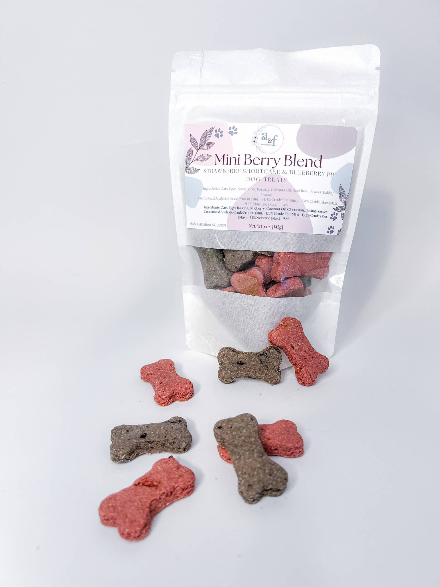 Hi, my name is Vanessa and my company is named after my dogs, Auggie and Finn. My business is based out of South Carolina where all of our treats are baked fresh from our kitchen and all of our accessories are handmade. I have always been that “crazy” dog mom that goes above and beyond for birthdays and well, most days! This included homemade treats, birthday cakes, and special bandanas. Being able to make treats that you know your pup will love and ingredients that you know are actually good for them is an amazing feeling. My favorite part about baking has always been the excitement from the customer when seeing or tasting something I’ve made, so seeing all the excited wiggle butts and tails brings me so much joy! owning a bakery before made naming our treats after classic desserts was a must!