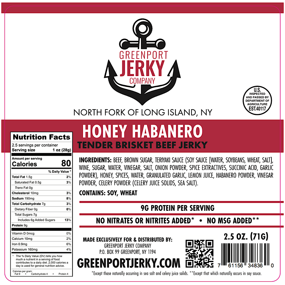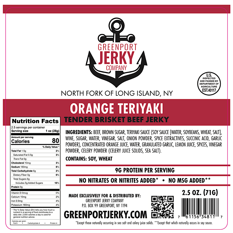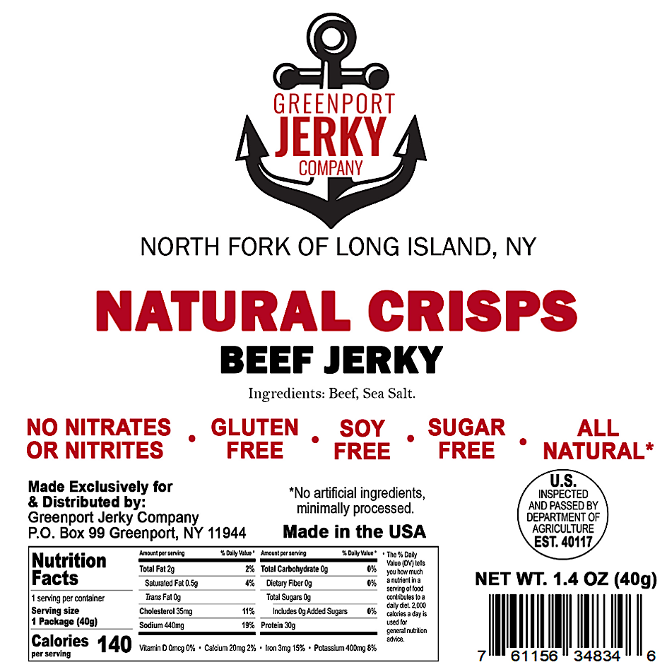 We are a small batch JERKY Company that makes the best damn JERKY—owned and operated by two Greenport natives. Our commitment is to produce a premium, freshly created, small-batch JERKY. It all started in our home kitchen in a small village called Greenport in the North Fork of Long Island, New York. Our handcrafted JERKY starts with ONLY U.S. beef brisket. Our beef is never imported like the mass produced brands. After trimming off all of the fat, we then hand slice and inspect each piece to insure the highest quality. No two pieces are the same size or shape. Unlike the mass produced variety that is pressed and or cut by machine from mystery parts. The meat is then marinated for 24 hours in our 23-year-old family recipes. No MSG or nitrates are added, and we do not use fillers like corn syrups or solids. The JERKY is then dehydrated for 2 to 4 hours depending on the cut. Many companies use compounds to make this process easier and faster. This time consuming process allows us to produce a high quality, tender and mouth watering JERKY. We don't cut corners, when you eat our gourmet JERKY you will taste the difference.