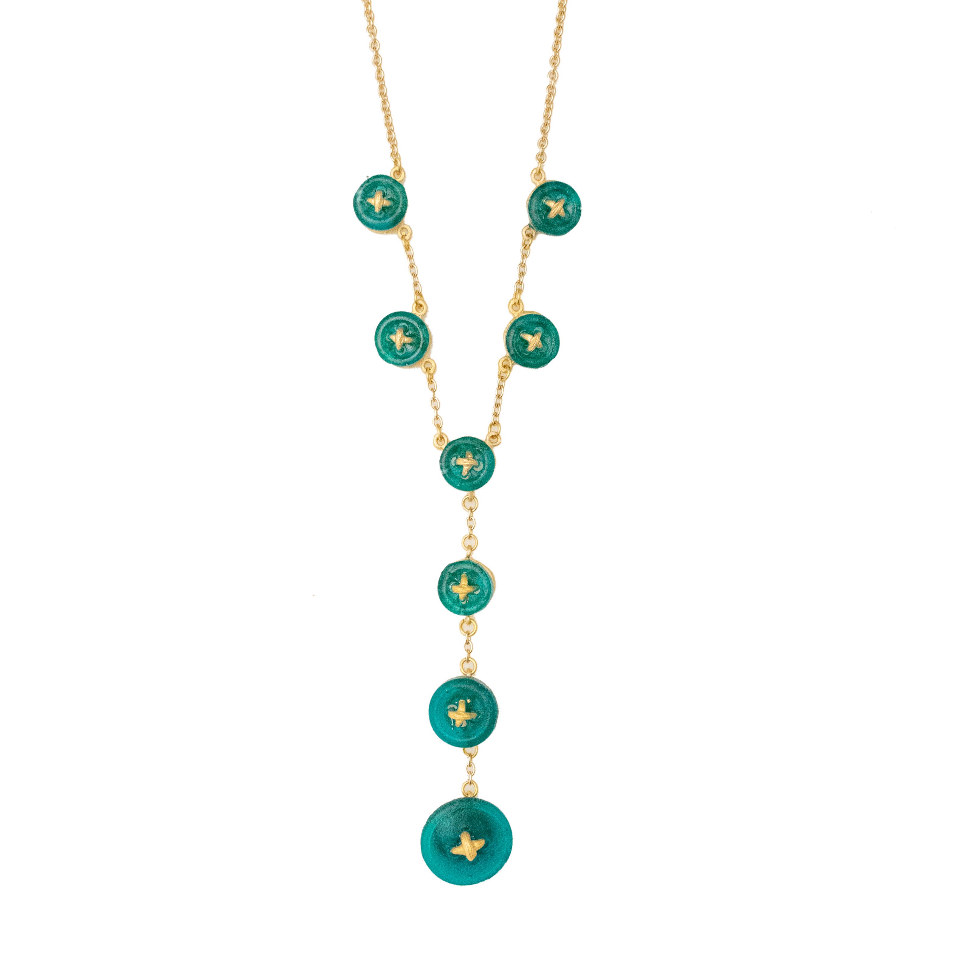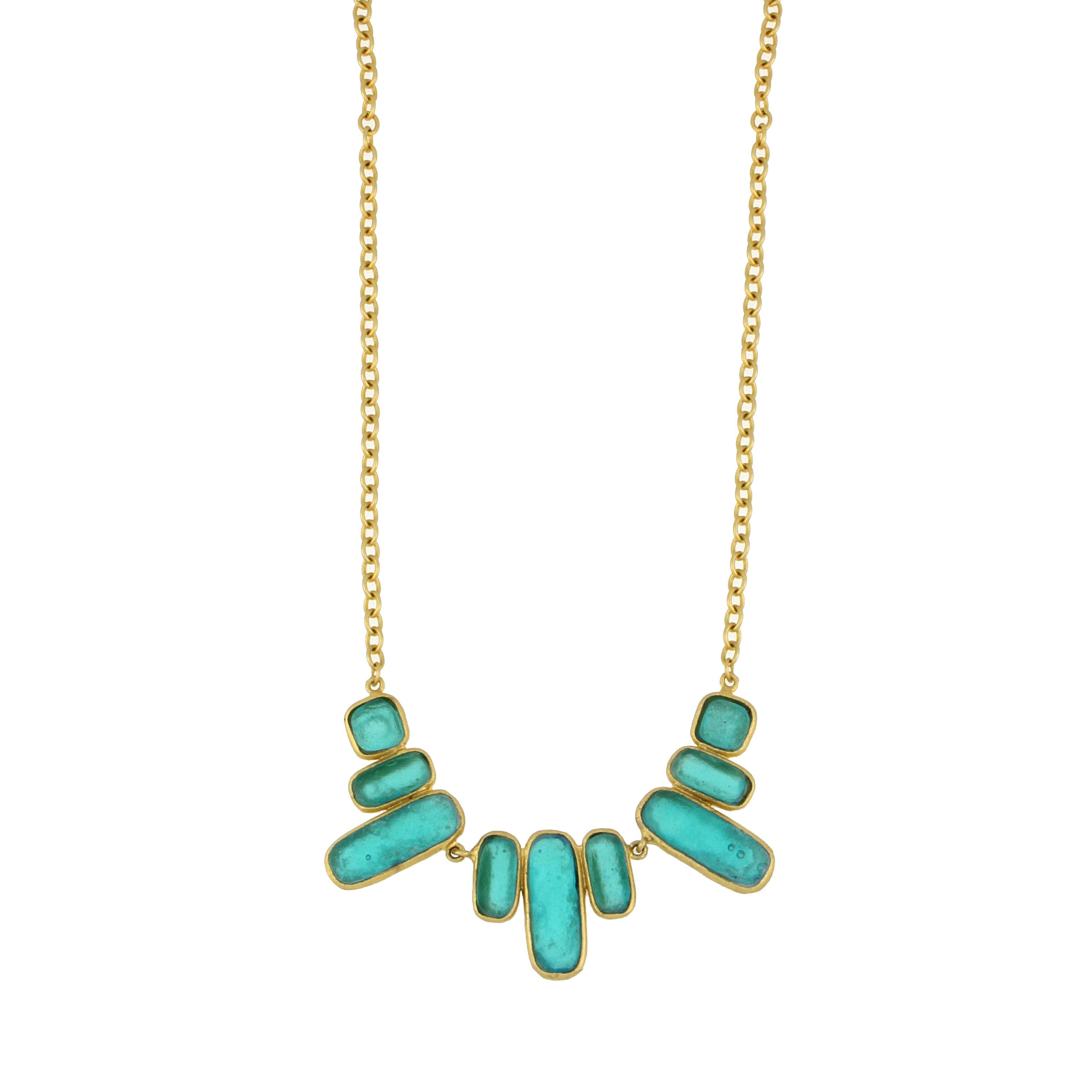 Michael Vincent Michaud is notably unique in his process of cast glass. Through this craft, Michael is able to capture bold colors and textures which, when hit with radiant light, make each glass element of the jewelry glisten and glow. Surrounded by the skilled craftsmen at his father’s studio, Michael was inspired by the master craftsmanship of his father, as well as his own true love of “art glass” and the colors of the world around him. He studied extensively with some of America’s finest glass artists at various institutions including the prestigious Corning and Urban glass programs. Our collection is cast in bronze with a gold finish, and accented with cast glass. All jewelry pieces are meticulously handmade in New York.