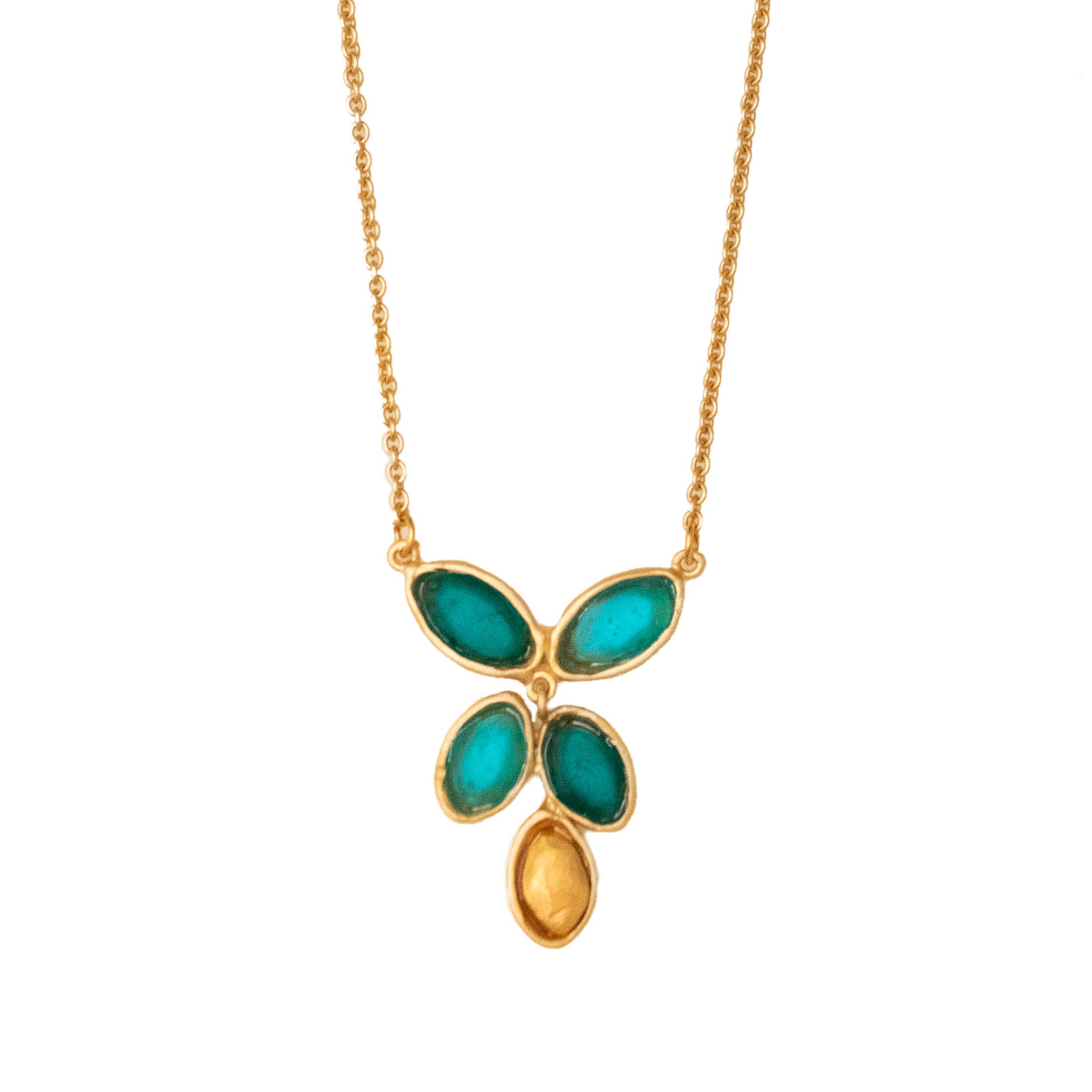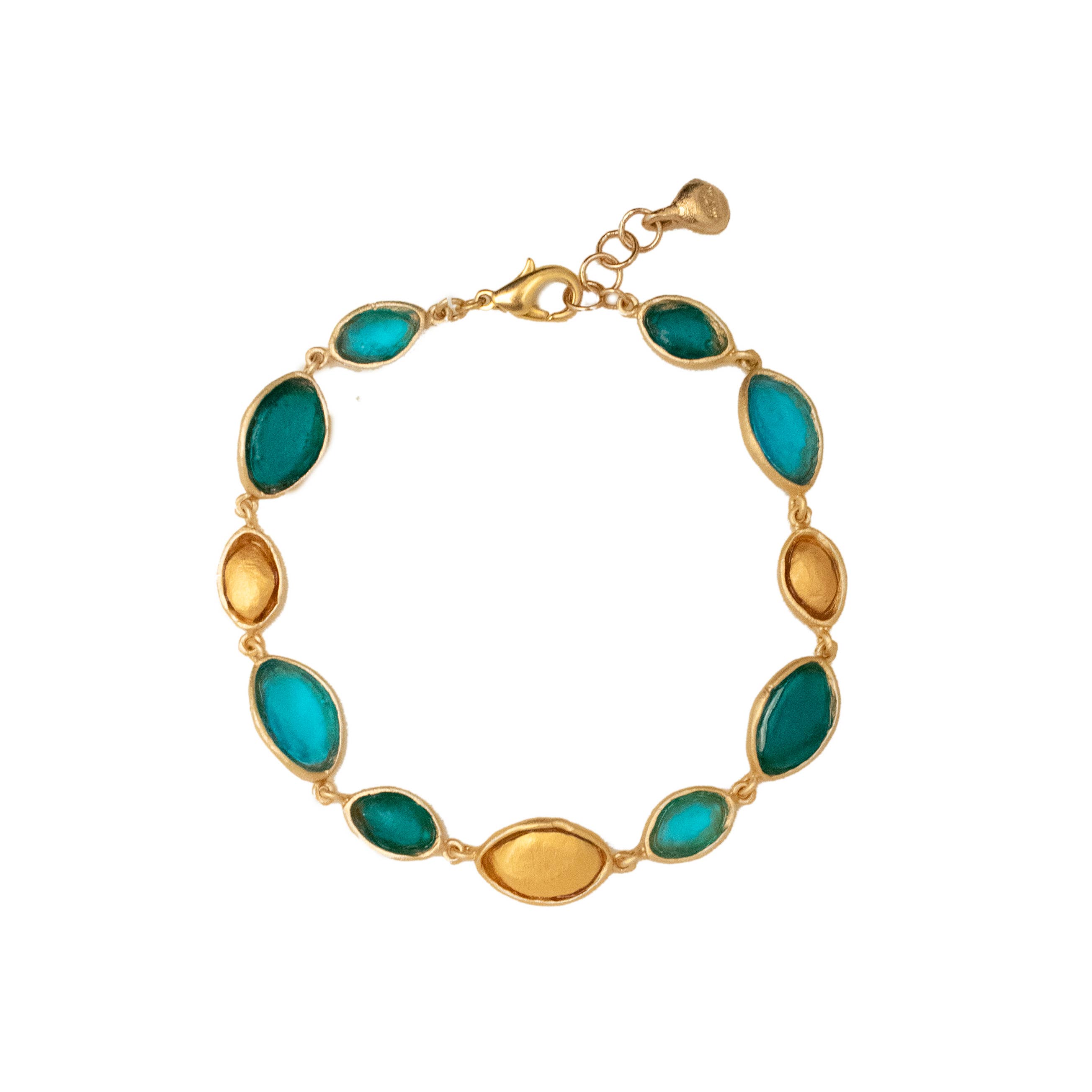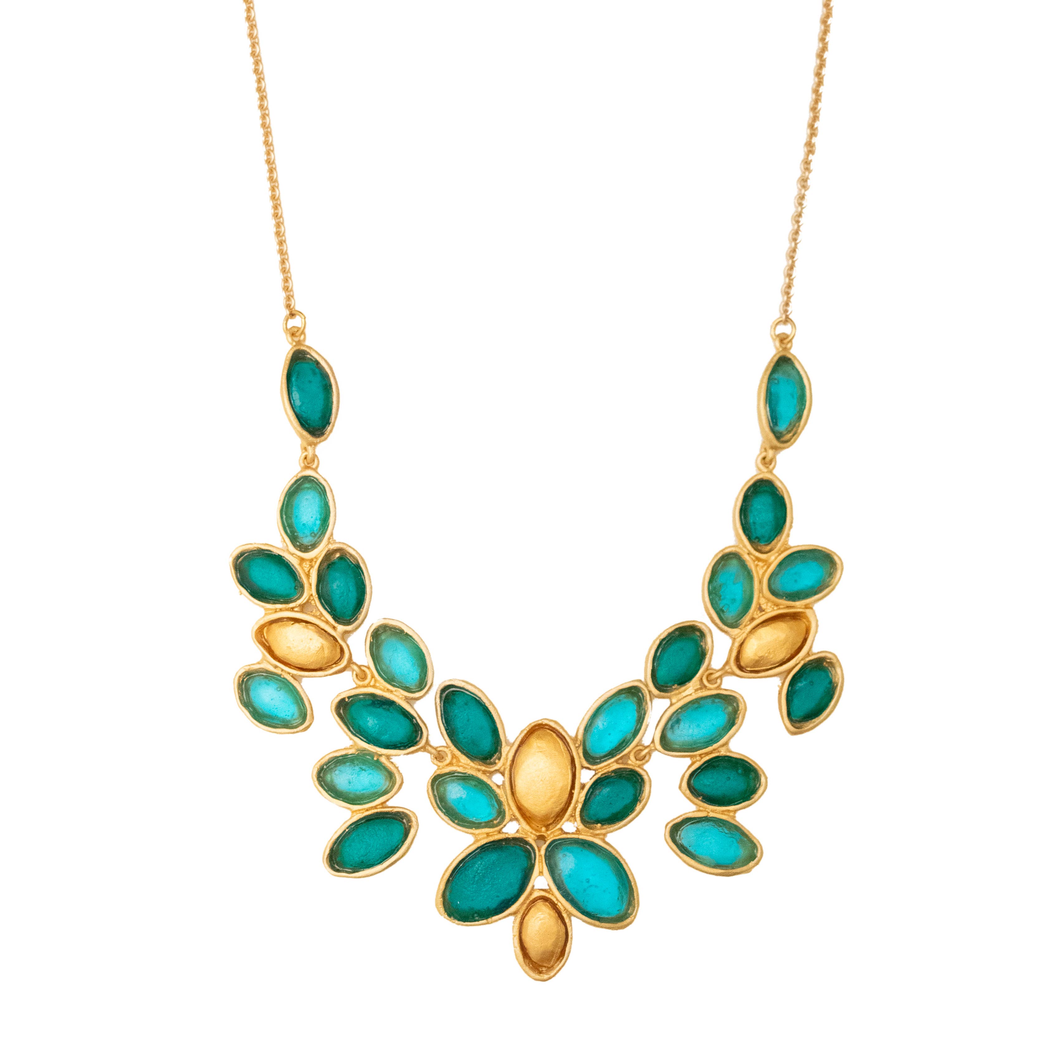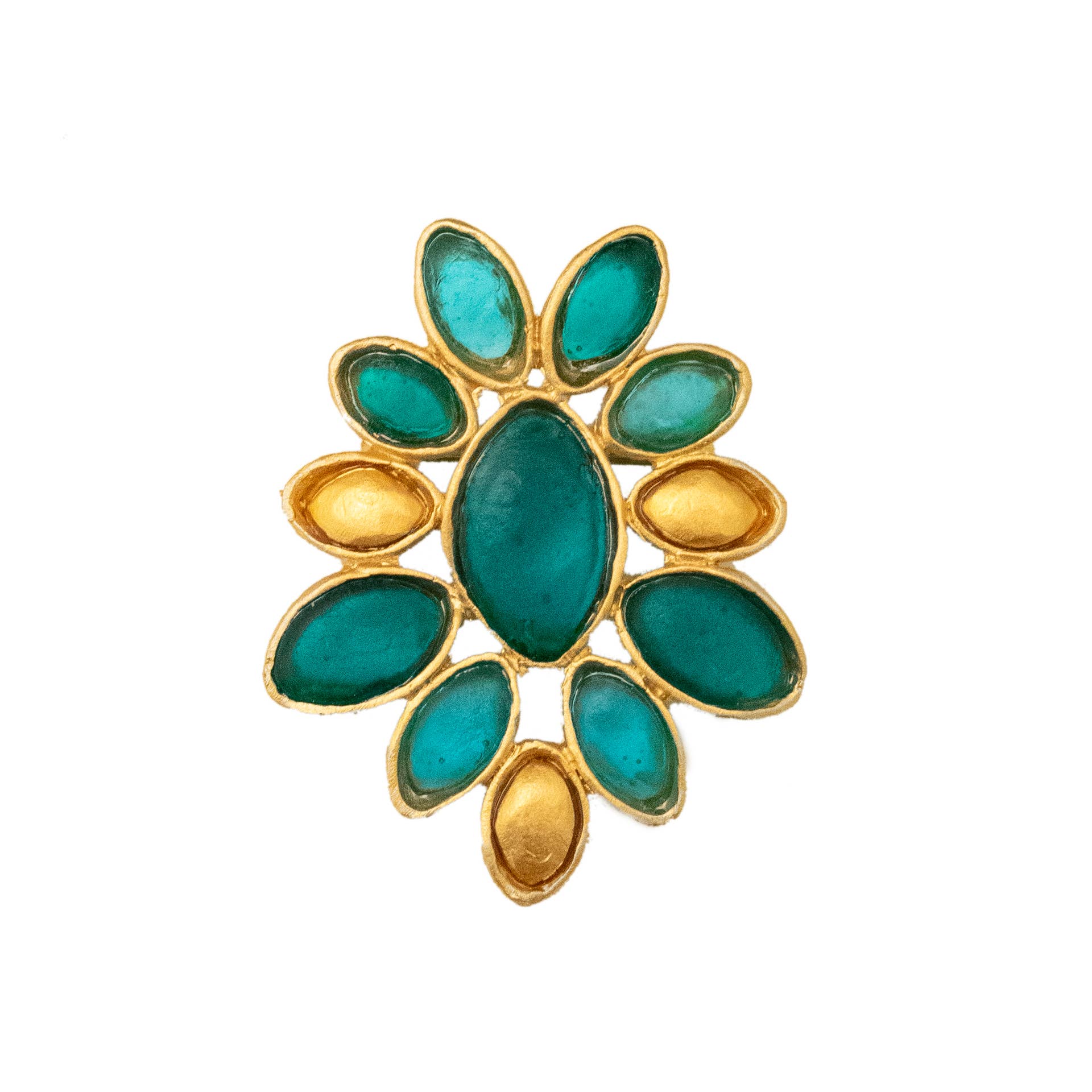 Michael Vincent Michaud is notably unique in his process of cast glass. Through this craft, Michael is able to capture bold colors and textures which, when hit with radiant light, make each glass element of the jewelry glisten and glow. Surrounded by the skilled craftsmen at his father’s studio, Michael was inspired by the master craftsmanship of his father, as well as his own true love of “art glass” and the colors of the world around him. He studied extensively with some of America’s finest glass artists at various institutions including the prestigious Corning and Urban glass programs. Our collection is cast in bronze with a gold finish, and accented with cast glass. All jewelry pieces are meticulously handmade in New York.