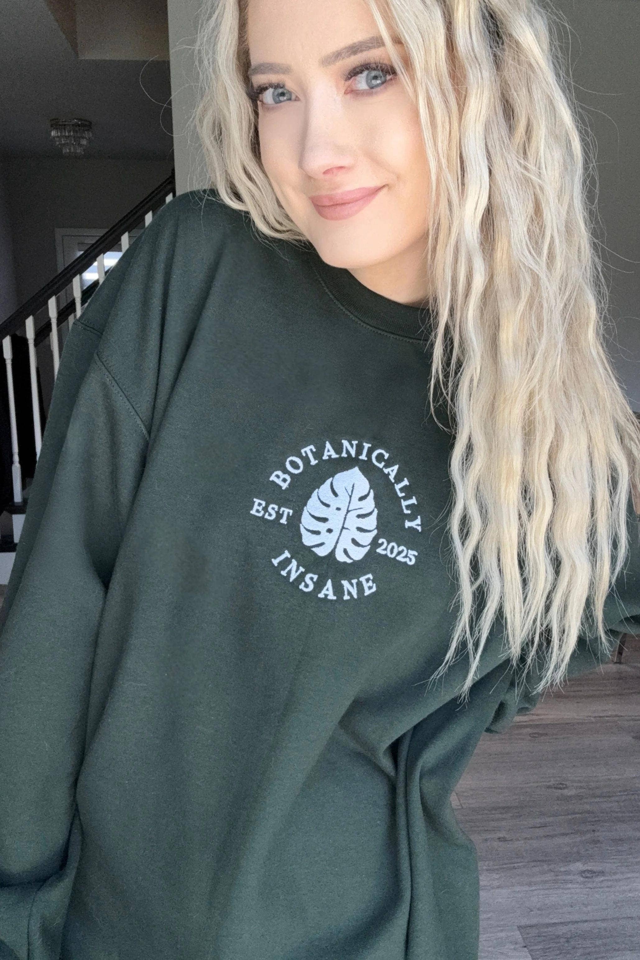 Hey, I'm Catherine-- the owner of Botanically Insane! A plant lover at heart, my apparel is inspired by the botanical influence in every day life. All sweatshirts are embroidered in Madison, WI.