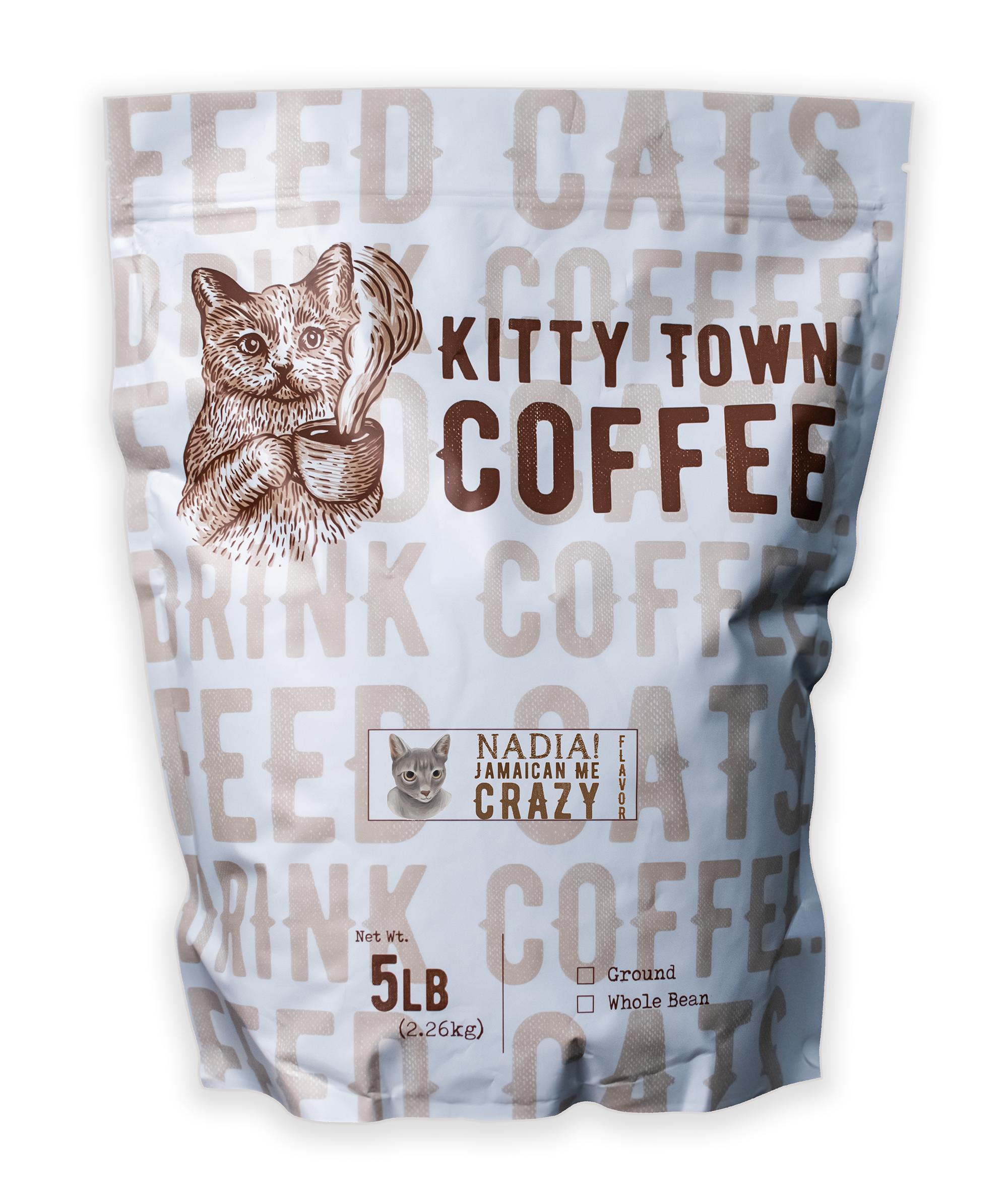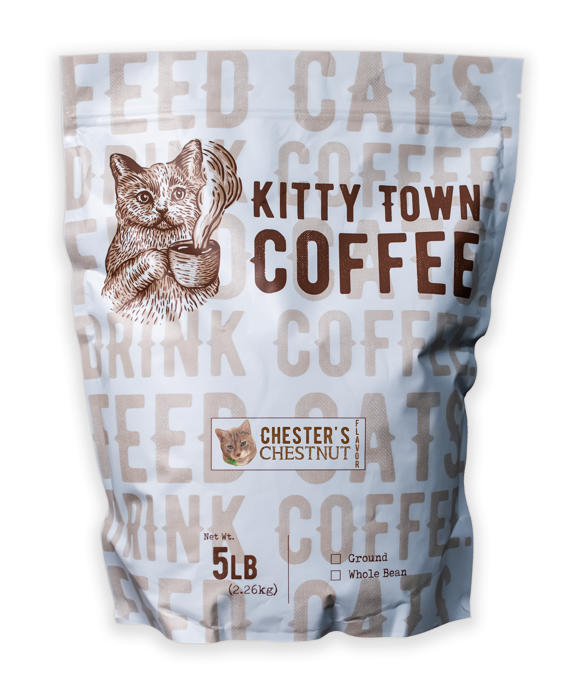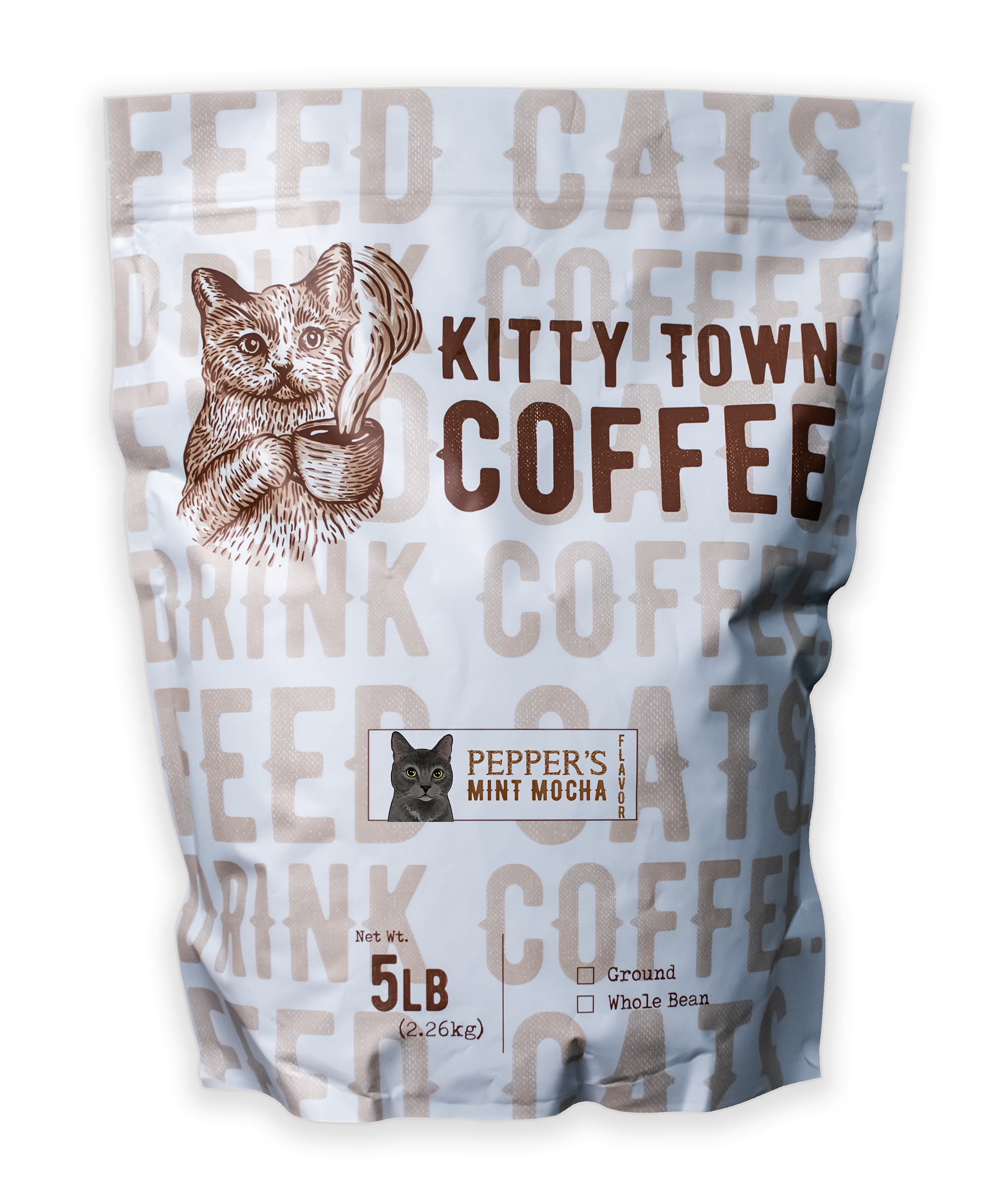 Drink Coffee. Feed Cats. That's what we're all about here in Kitty Town. We make delicious fresh roasted specialty coffee and name it after real life cats we know and love. Every bag sold feeds a homeless kitty for a week. That means you and your customers can start your morning by doing something good for the world while enjoying a delicious cup of fresh coffee.