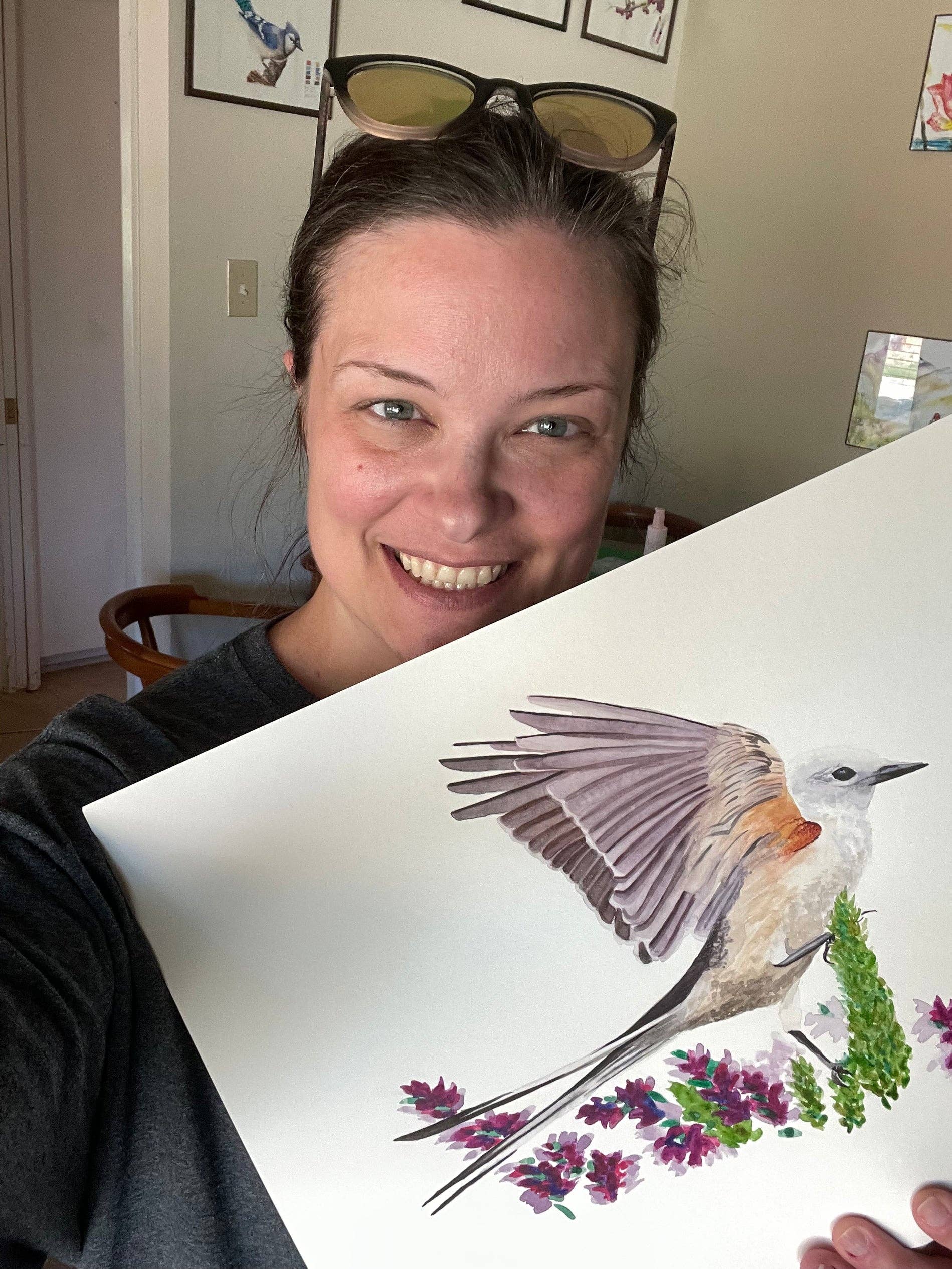 Hi, I’m KB Ribelin, mom and bird artist. When I started playing with watercolors, I quickly discovered that birds would become my way of giving to the world! I’m a surviving military wife and mom of four and birds remind my little 5 sparrow family that even the smallest creatures are beautifully created and cared for. I share my birds so that you can be reminded of your own special memories and stories.
