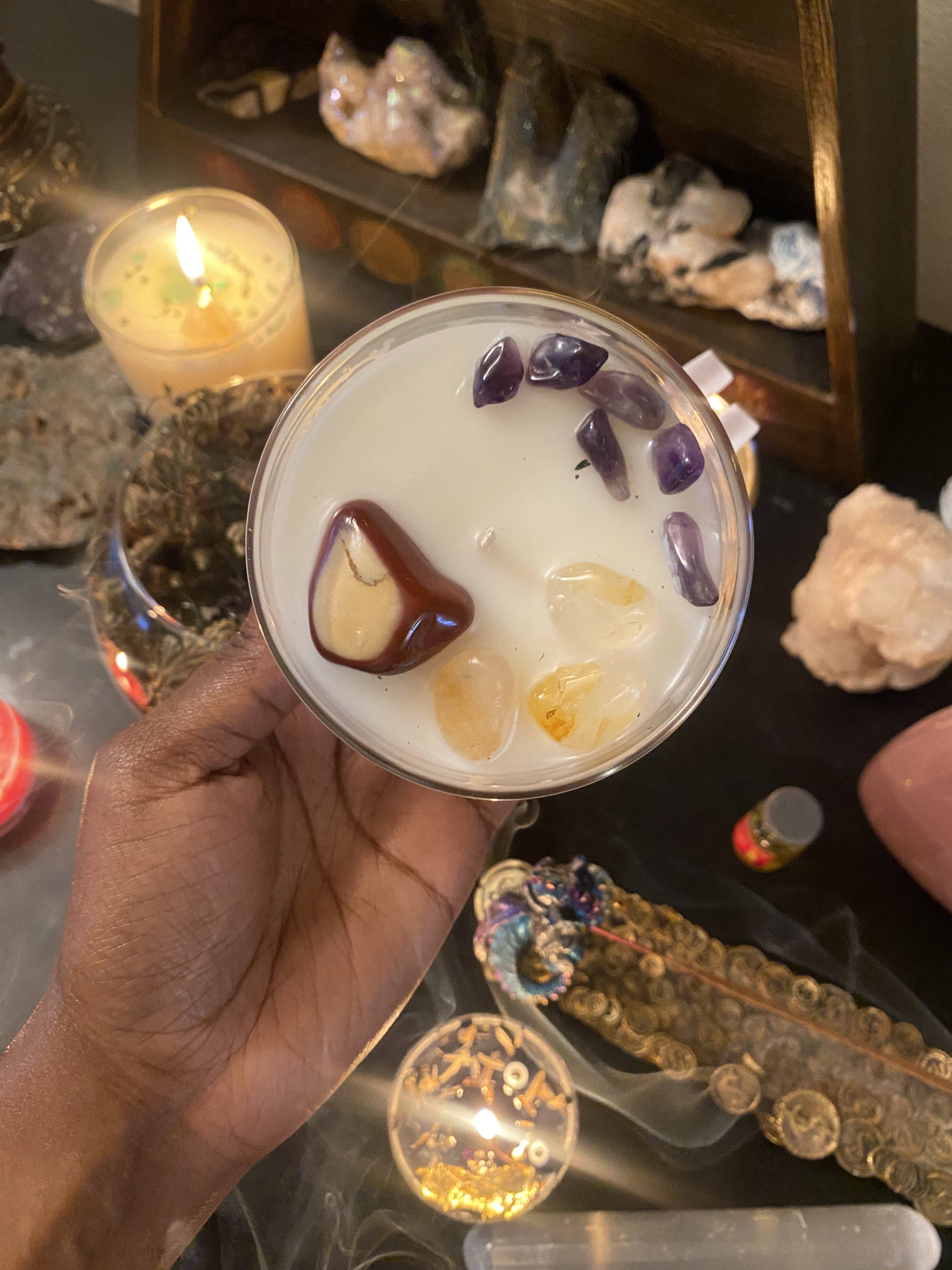 My name is Tameka and I am the owner of Detroit Alchemy, this company originally started out as a tea shop. As I grew as a woman and on my spiritual journey my company began to grow as well. I eventually added intention candles and other spiritual products. I started this company after having a talk with my grandmother about not wanting to work a corporate job, she in turn gave me a check for 3k and 5 years later here we are.