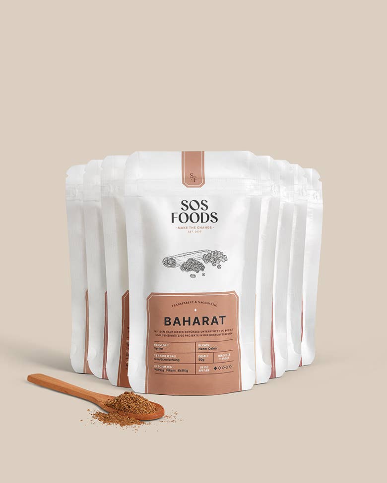 Die Revolution der Gewürze Jeden Tag eine gute Tat. Mit unserem direkten Gewürzhandel kommt mehr Geld bei den Erzeuger*innen im Nahen Osten an und soziale Projekte in der Region erhalten 20% vom Umsatz. Zusammen machen wir den Unterschied! Wir sind Rami und Felix und haben uns dazu entschlossen, ein Unternehmen zu gründen: SOS Foods. Wir beide kommen aus verschieden Fachgebieten und haben uns zusammengeschlossen, um unsere Stärken zu nutzen.