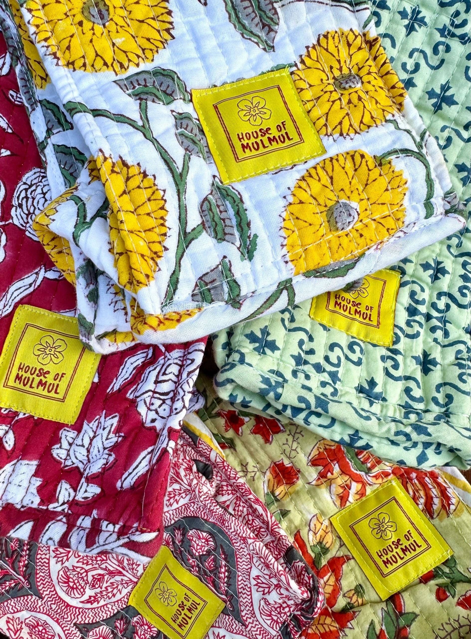 We create and curate exclusive artisanal Indian handblock printed, handmade home linen and accessories such as quilts, bed covers, bed sheets, cushion covers, bath linen, table linen, tote bags, makeup pouches, multi-purpose bags, iPad and Laptop sleeves, kids collection including stationery, kids bedding and much more