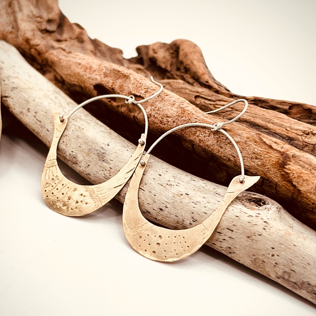 Our designs feature handcrafted jewelry inspired by the natural world. Drawing from land, sea, and sky, the earth offers endless inspiration through its textures and forms, celebrating nature’s imperfect beauty. Each piece carefully maintains the natural beauty and intricate details of handmade craftsmanship. Every mark is thoughtfully created by hand with intention. Our designs are thoughtfully crafted with respect and mindfulness for nature, with the hope that they resonate with those who wear them and become cherished pieces.