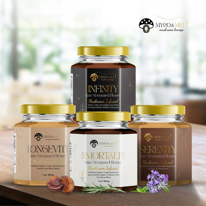 Myco & Meli: Mushroom Honeys are crafted by a certified mushroom forager and a seasoned beekeeper with over 10 years of experience. Her mission is to educate about and empower others with Earth medicines. Our Mushroom Honeys are a delicious and versatile way to incorporate functional mushrooms into our daily diet. We believe healthier people are happier people, and happier people are kinder people. This is our peace movement. Each jar is contributing to the creation of an educational honeybee sanctuary. Thank you for supporting small businesses and the bees!