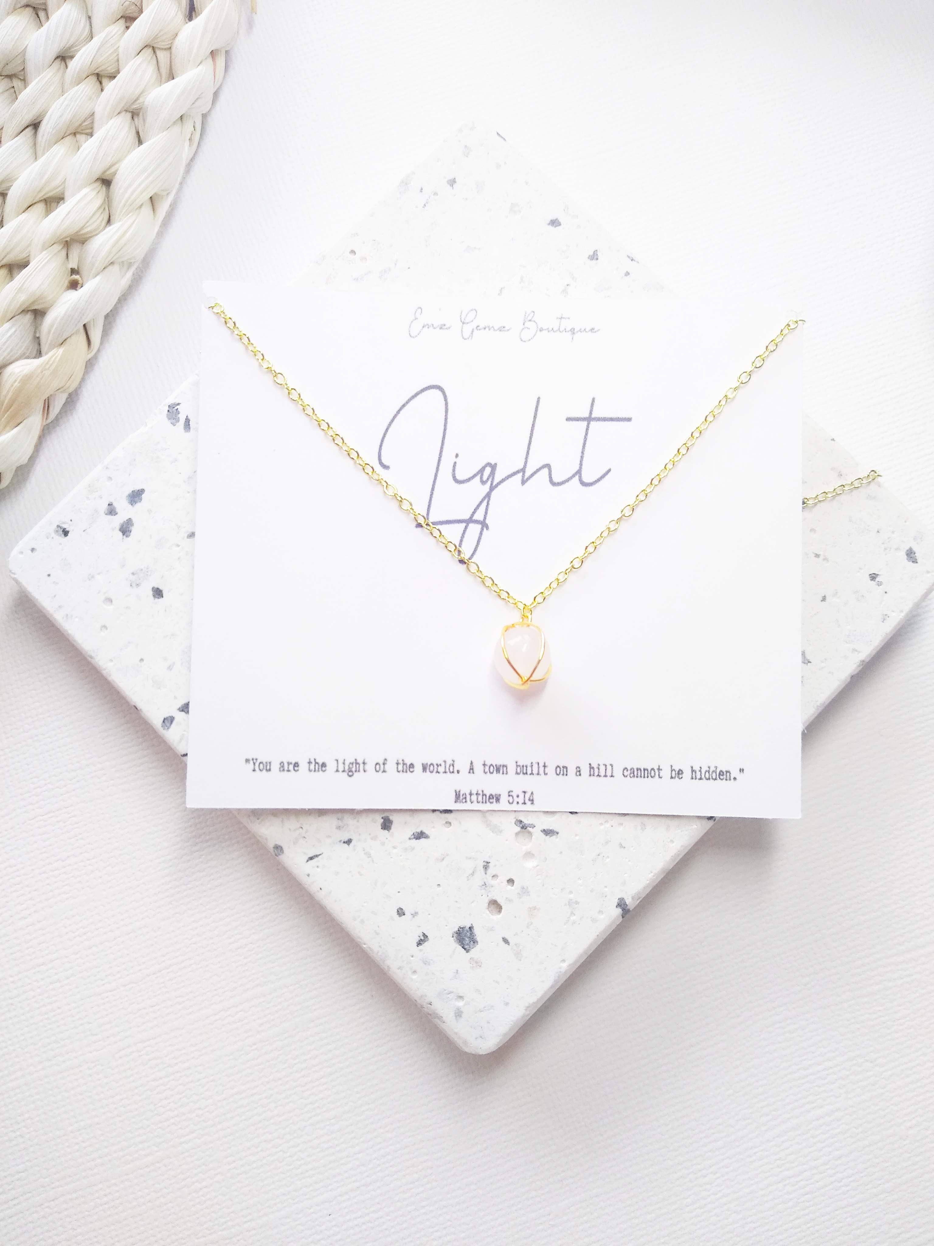 Light Jewelry Co was founded to inspire and encourage women everyday with simple, handmade, faith inspired jewelry. Every item of jewelry that Light Jewelry Co sells is handmade with the best quality gold plated chain, gold plated findings and gold plated charms. The necklaces that feature natural semiprecious stones are hand wire wrapped and the hoop earrings are also hand wire wrapped. We hope that every handmade piece of jewelry inspires, encourages and provides hope to women through whatever season of life they are in.