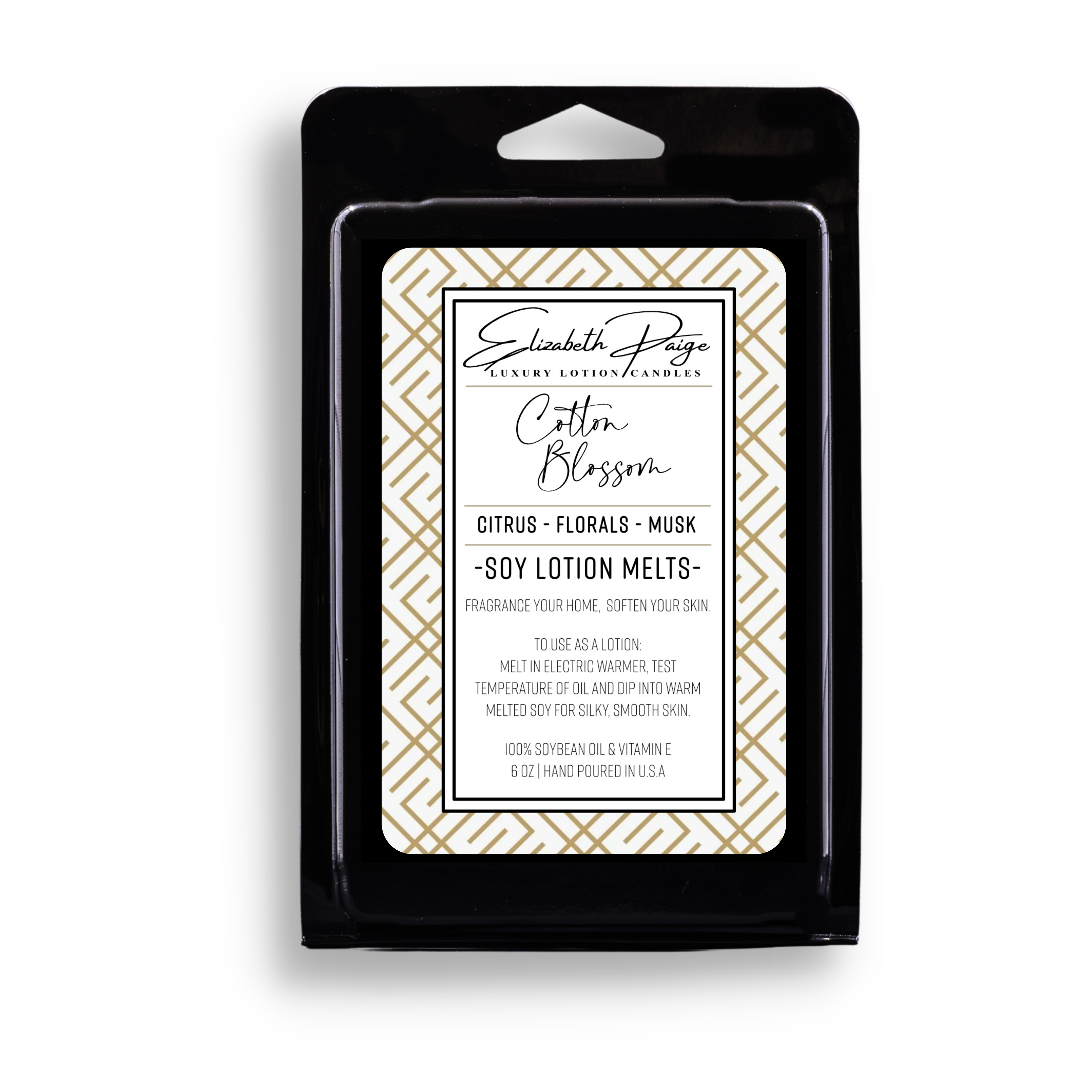 Elizabeth Paige Candles is the original Soy Lotion Candle manufacturer! We've been hand-pouring luxury lotion candles for 15+ years! Candles from Elizabeth Paige are not only clean burning and long lasting but offer a 'two-for-one' experience! Enjoy the beautiful fragrance of your candle as it melts and then "take a dip" into the warm (not hot!) melted soybean oil for use on your skin as a luxurious body moisturizer. Our candles leave your home fragranced and your skin soft and silky. Naturally rich in Vitamin E, our candles are fantastic for psoriasis, eczema, bug bites, sunburns, scars, general dry skin or massage oil - essentially everything from bald heads to pinky toes! Additionally, we offer flameless soy lotion melts for use in electric warmers and a solid soy lotion bar! Thanks for visiting our shop - it is our joy to serve you!