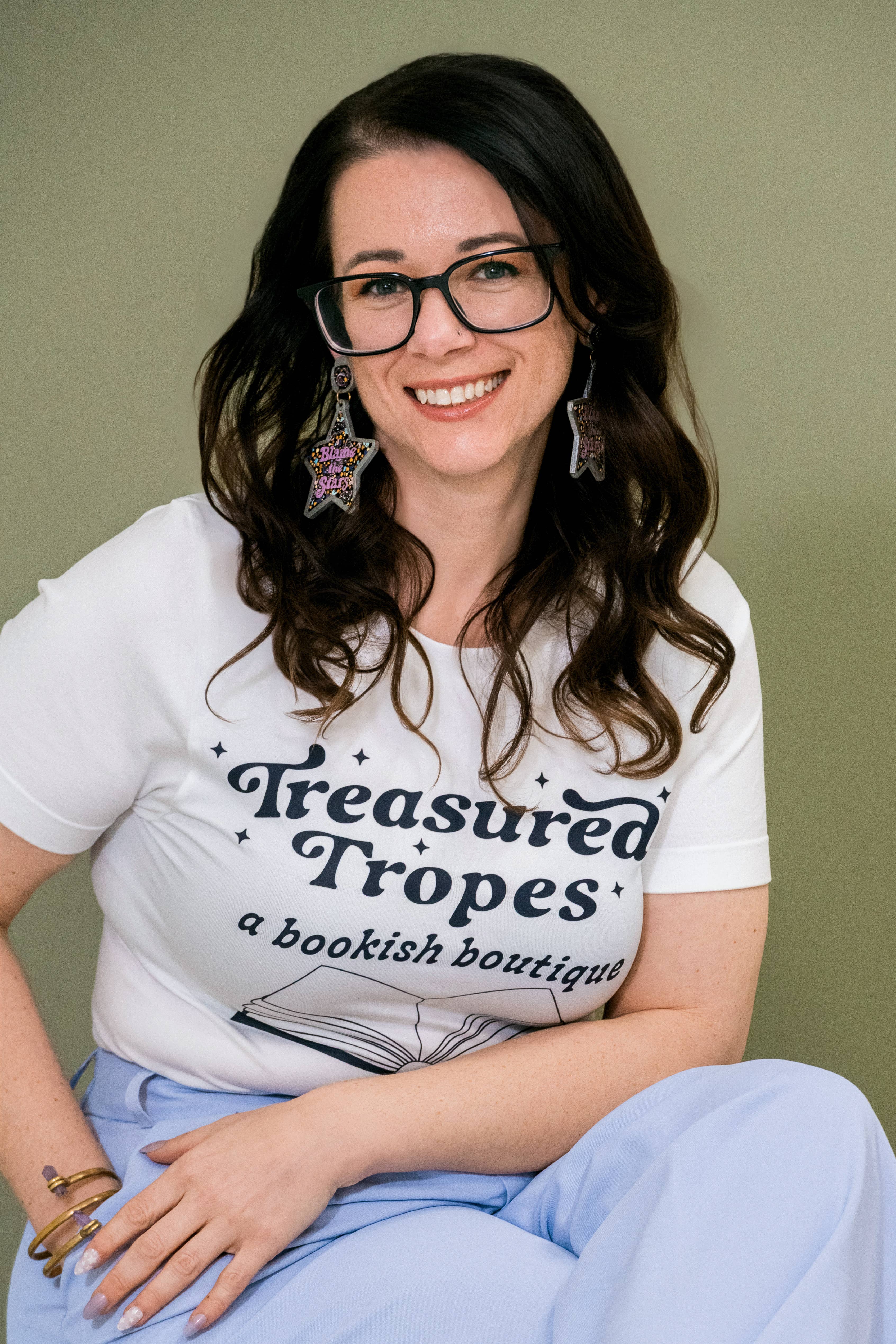 As the owner-operator of Treasured Tropes Paper Co., I am really into books and all things bookish. I aimed to create a shop that offers fun and affordable bookish accessories for other book lovers. With my two trusty, furry shop assistants always by my side, I transformed my home office into a production studio for Treasured Tropes Paper Co. The inventory shelves are filled with handmade bookmarks, stickers, tumblers, t-shirts, and tote bags, and the aroma of coffee is always present. My dream is to one day open a storefront where literary enthusiasts can come to enjoy a coffee or tea, purchase my goods, and participate in book clubs and DIY classes. I want to build a community where people can share their love for books. Until then, I hope my products find their way to your shop and on to their forever home, where they can bring joy and laughter to book lovers all across the country!