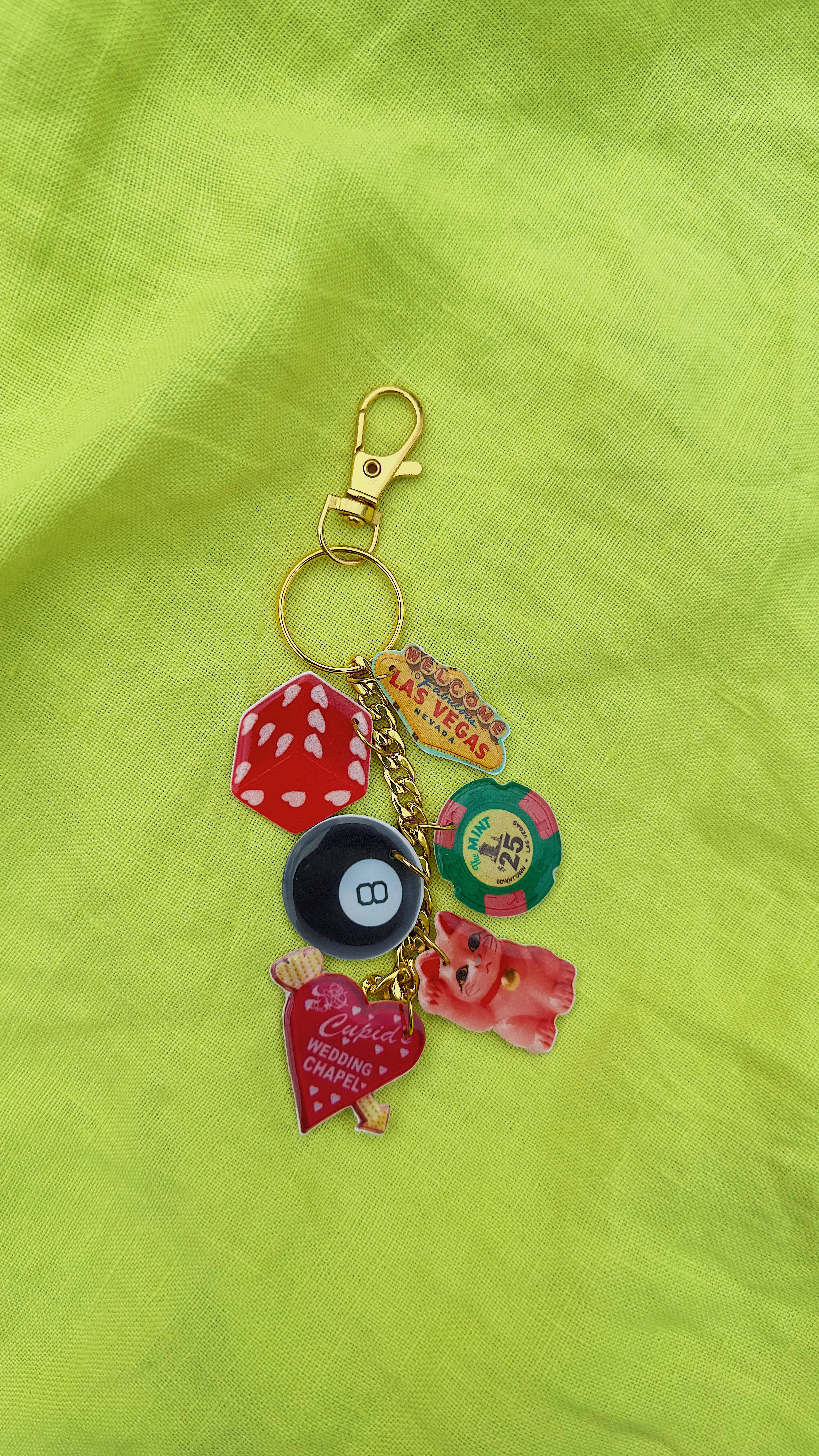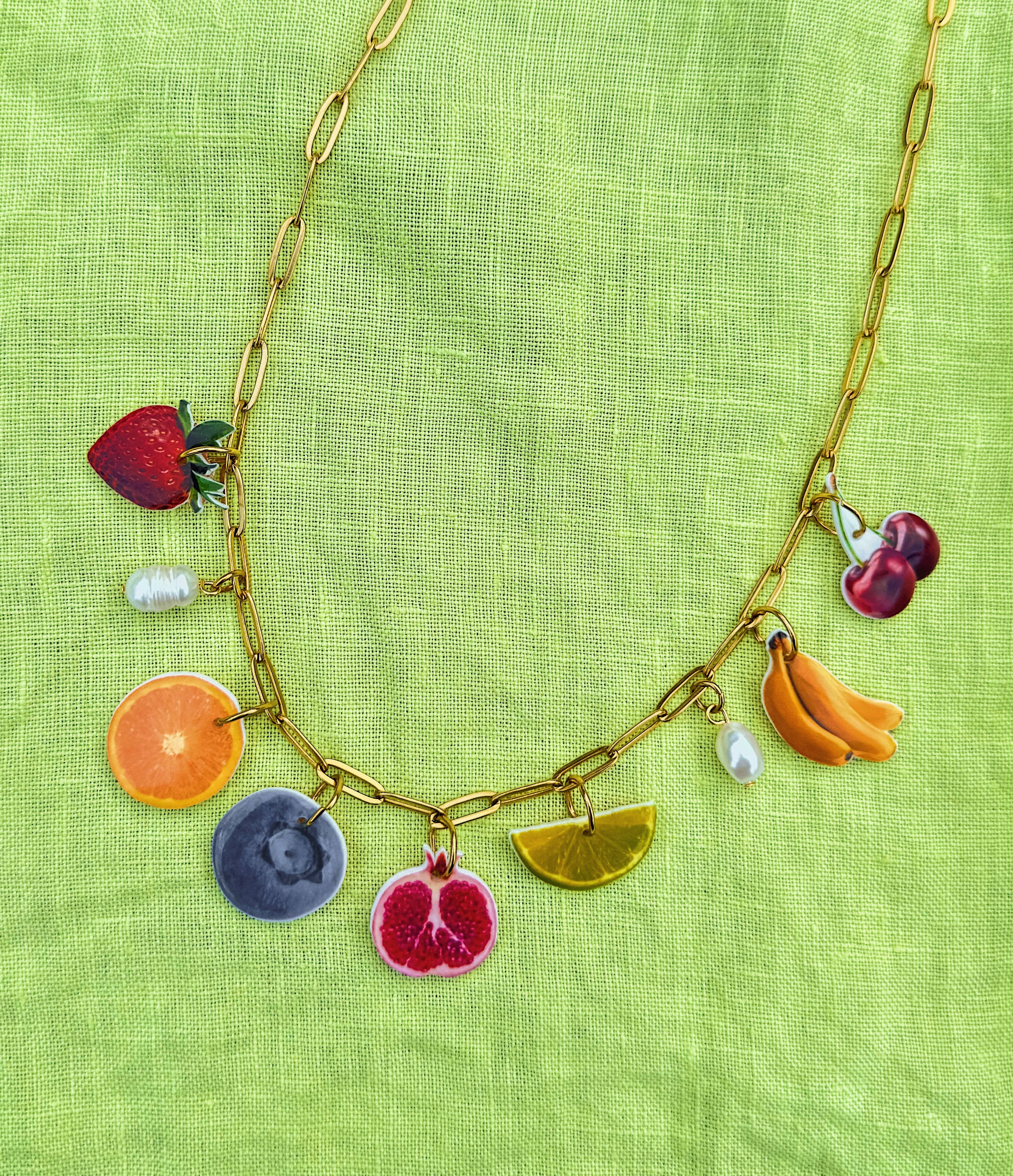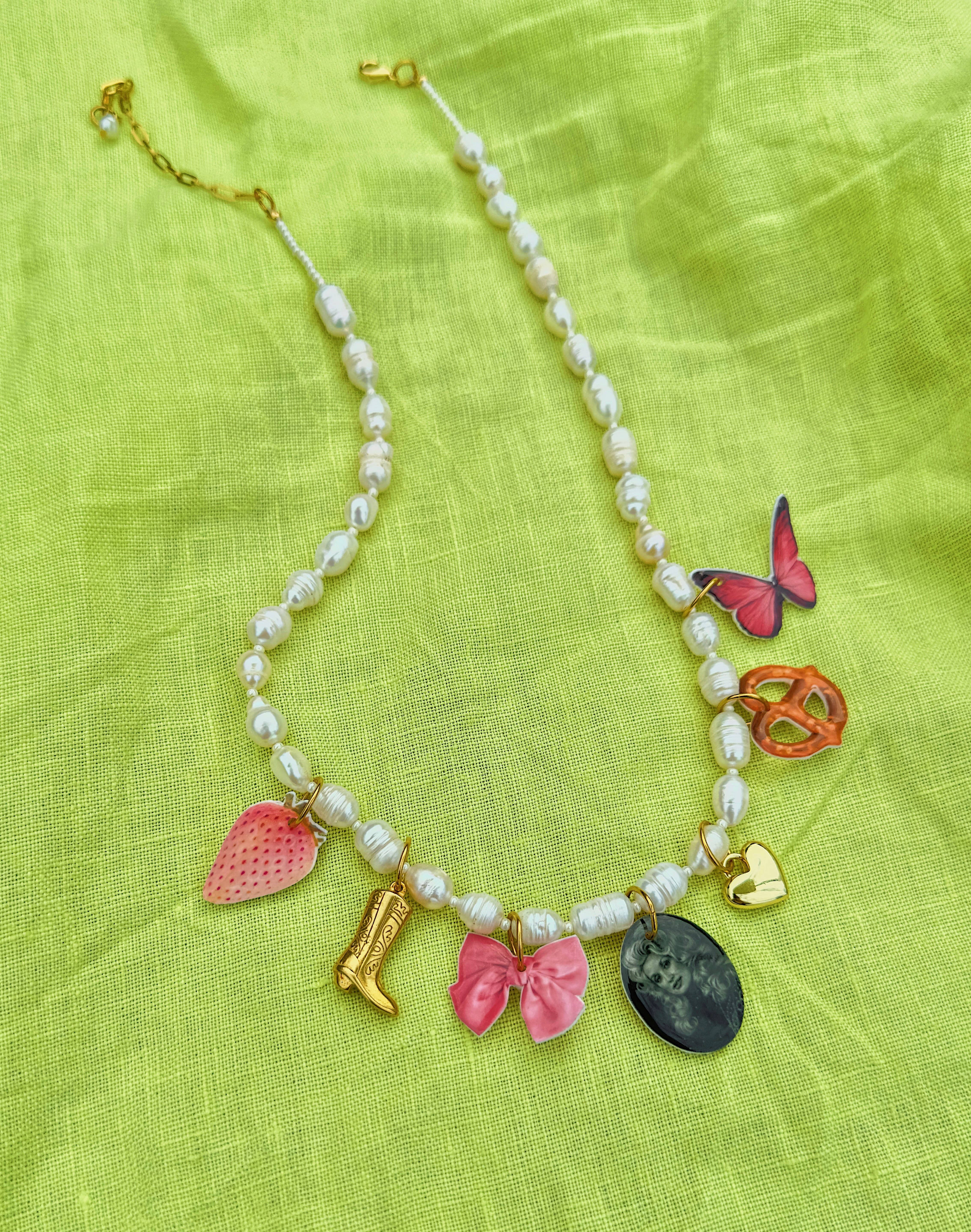Inspired by the abstract world, wiggly and wavy shapes appear in most of my packaging, displays, and signs. I love to explain the vibe of Goldfinch as “a disco in the desert”: bringing together the subtle textures and colors of the desert with the more playful nature that is the Daydreamer Charm Bar. Our charms are lovingly handmade in Portland, Oregon. The goal in creating this little world was to invoke a feeling of nostalgia through each piece, whether it be through our combined love of food, art, or pop culture. You’ll find themed necklaces, silly bag charms, and more, all composed of our ever popular Daydreamer Charms. Everything is hypo-allergenic, nickel-free, and tarnish resistant. While waterproof, I would take caution in introducing our Daydreamer Charms into water long term.