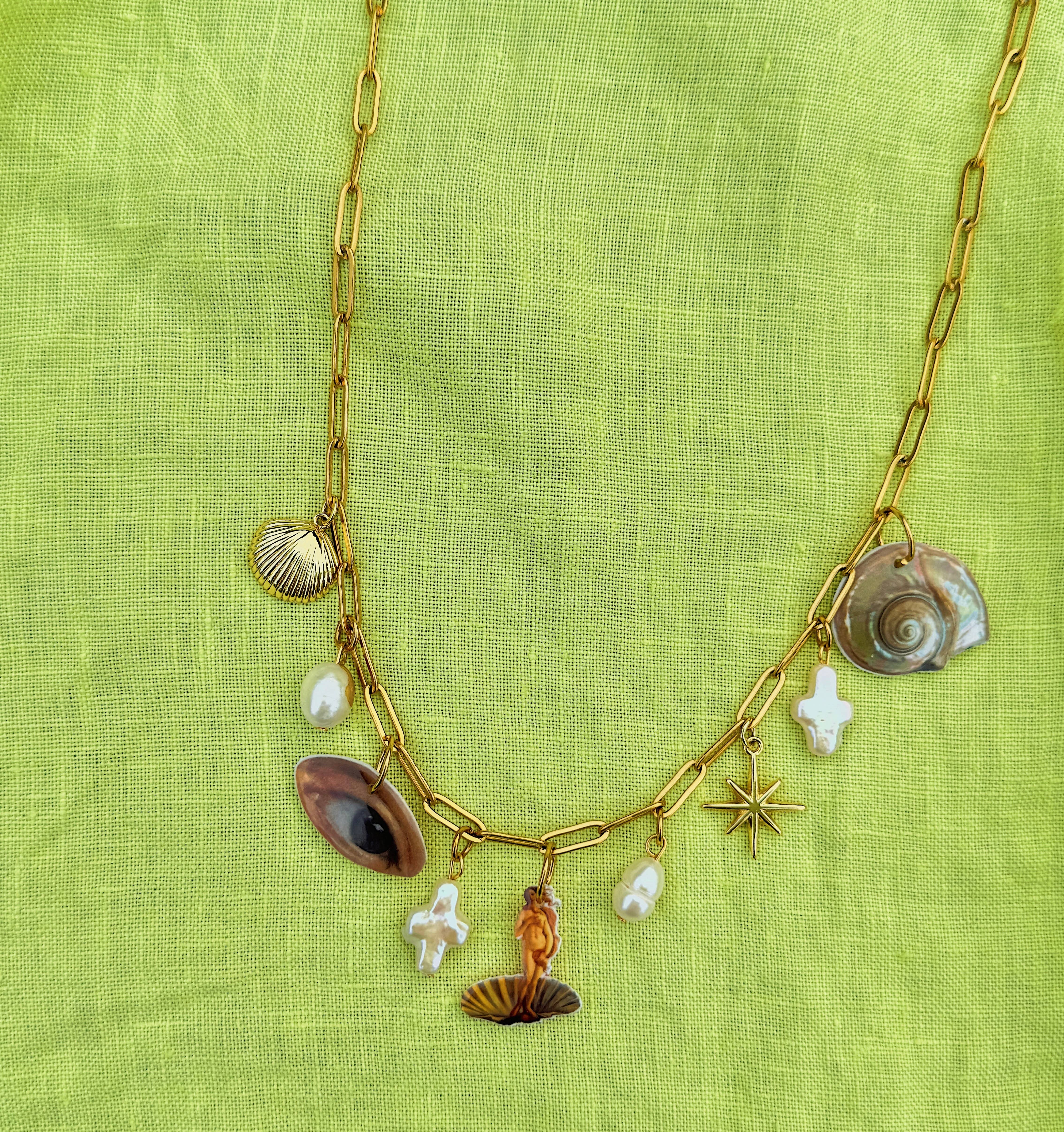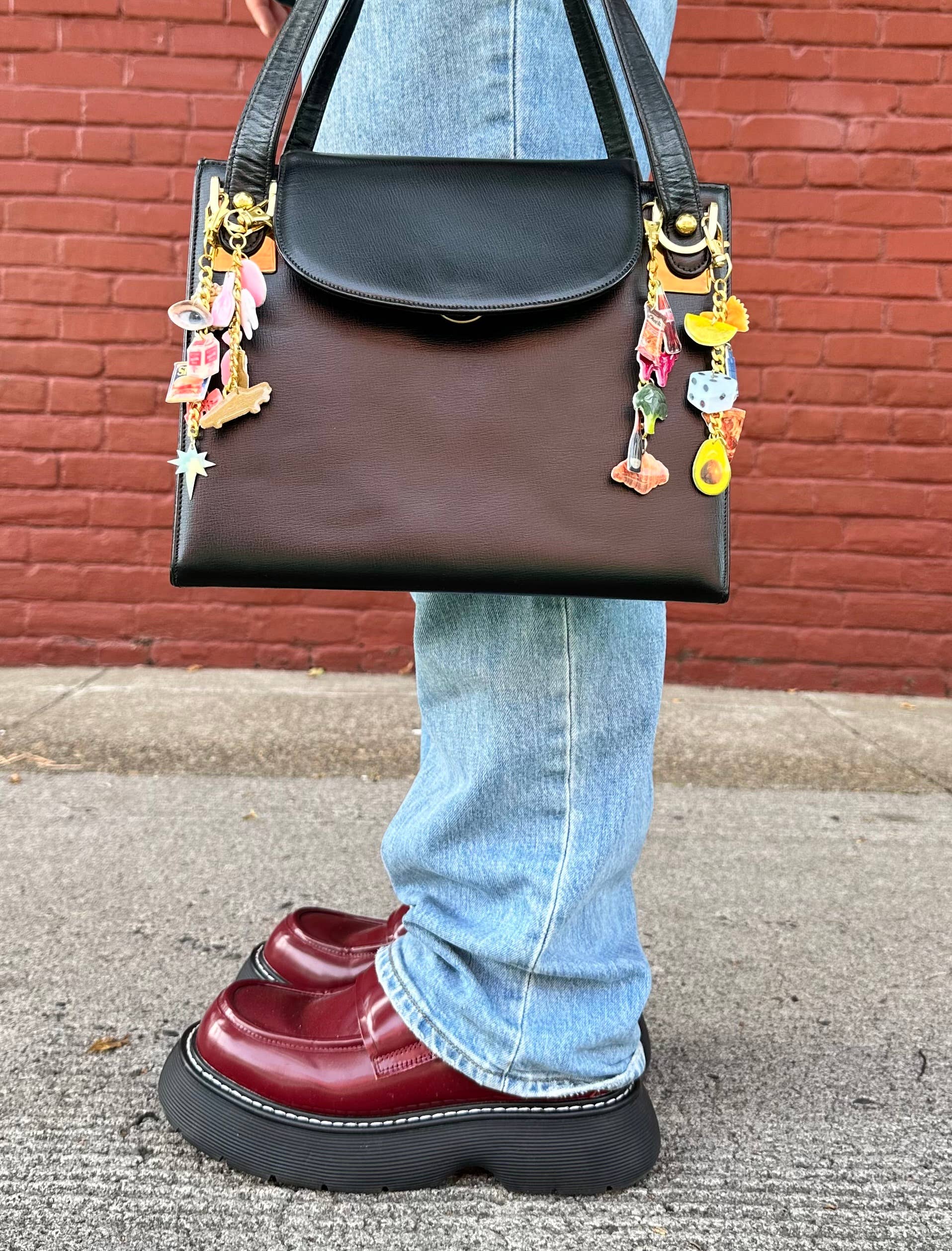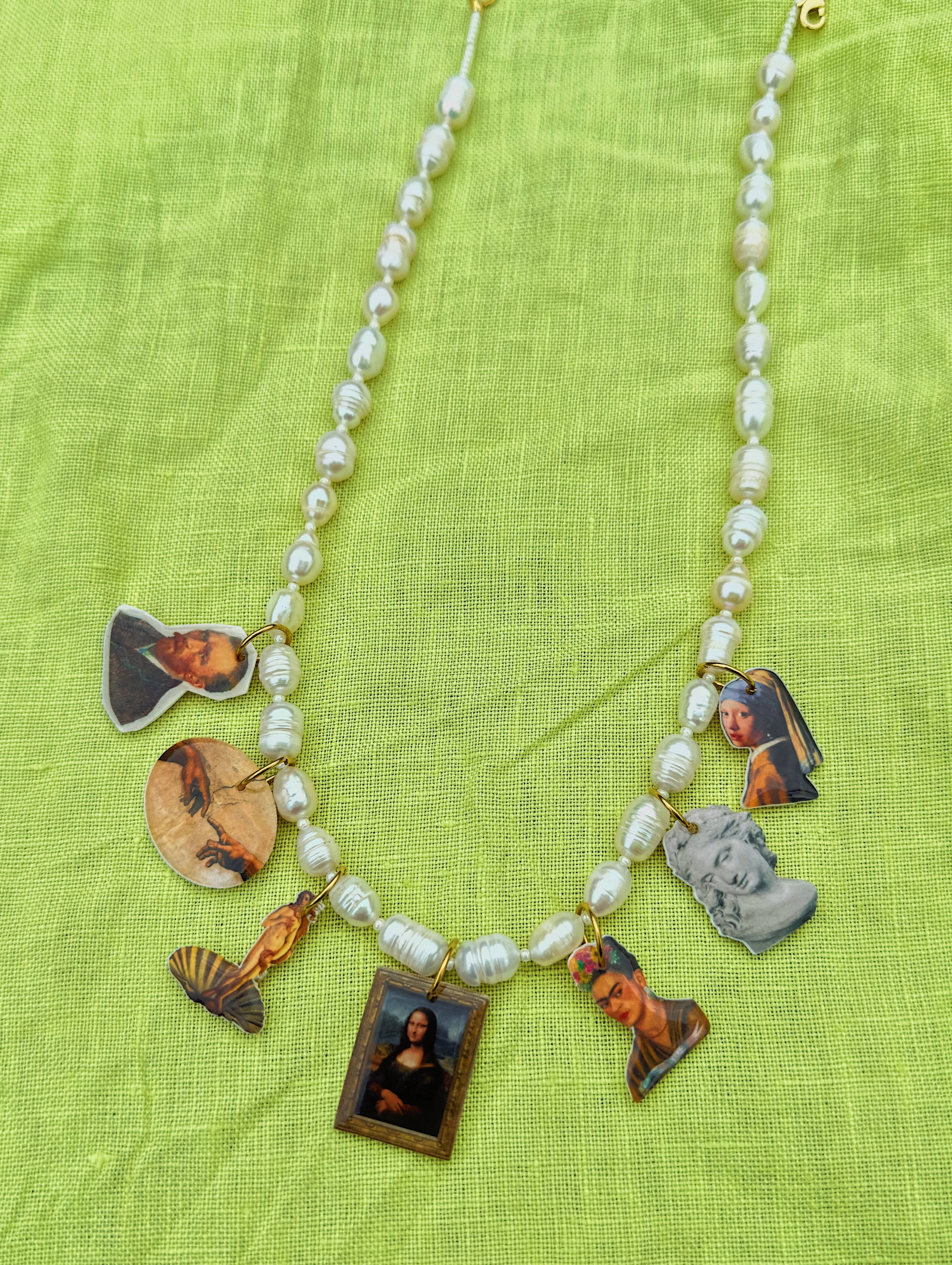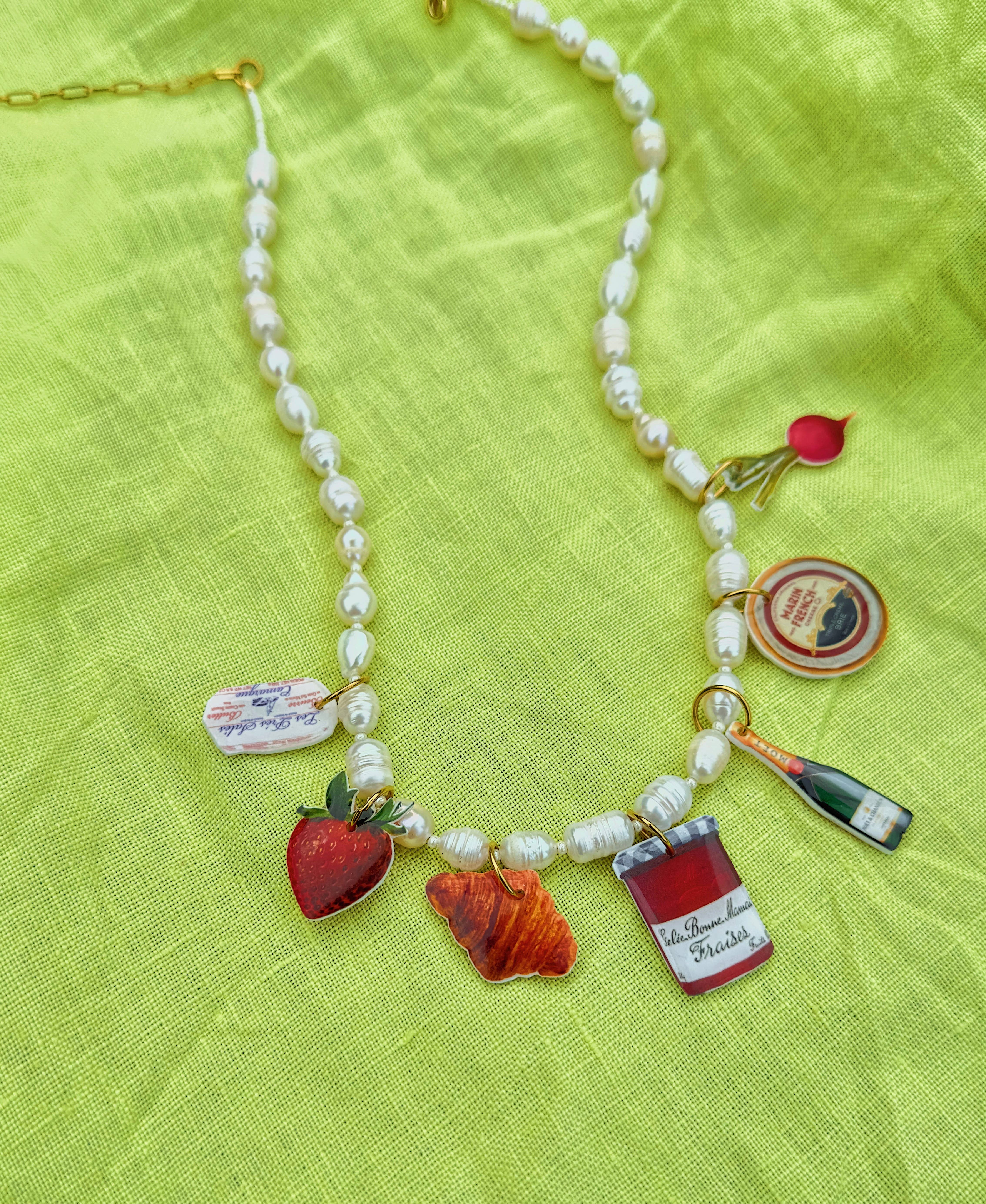 Inspired by the abstract world, wiggly and wavy shapes appear in most of my packaging, displays, and signs. I love to explain the vibe of Goldfinch as “a disco in the desert”: bringing together the subtle textures and colors of the desert with the more playful nature that is the Daydreamer Charm Bar. Our charms are lovingly handmade in Portland, Oregon. The goal in creating this little world was to invoke a feeling of nostalgia through each piece, whether it be through our combined love of food, art, or pop culture. You’ll find themed necklaces, silly bag charms, and more, all composed of our ever popular Daydreamer Charms. Everything is hypo-allergenic, nickel-free, and tarnish resistant. While waterproof, I would take caution in introducing our Daydreamer Charms into water long term.