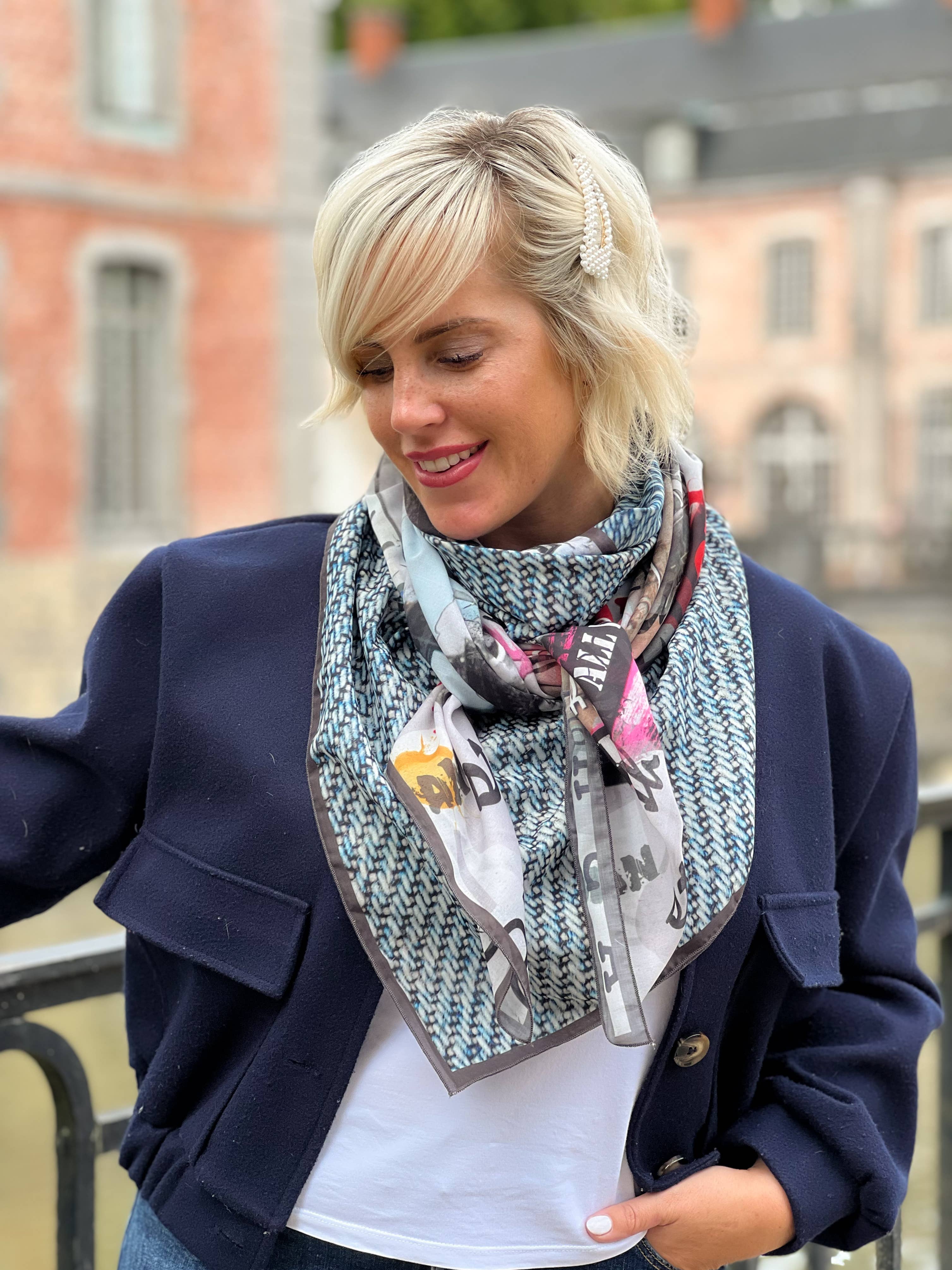 A 100% Belgian success story, with & for local shops: in a few years, we have gone from 200 to more than 4,000 copies created each year, largely thanks to the stores that trust us. We are convinced that our future depends on local shops. There is no substitute for human contact. Our mission from the beginning has been to sublimate our customers while participating in local commerce. No creation will be sold cheaper online than in store, that's our commitment! Our best sellers are square scarves and scarves, 140 x 140cm (ideal for stylish bows, without the feeling of wearing an overly imposing scarf). Exclusive design: we don't assemble existing fabric, we create the fabric... so you won't find anywhere else. Printed in Belgium. Handcrafted & premium quality finishes in Belgium. Composition: for photo quality printing, we print on 100% polyester fabric with a viscose touch for scarves, & a softer and warmer touch for scarves. The viscose effect is very pleasant, with the advantage of better resistance and machine washing+drying. Ecological and environmentally friendly printing process: inks based on water and chillies of mineral origin. AZO Free No POA animal products. REACH compliant. Contact us: we answer quickly & personally! Measured customer satisfaction: 99.7%