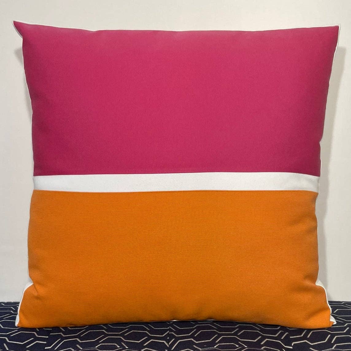 Hello Pillow People! Welcome to Oblique Studio, where we are passionate about bringing clean lines and a bold use of color to outdoor spaces. Inspired by the geometric shapes and patterns found in mid-century and modern design, our pillows are fresh and fun, yet sophisticated. Each color palette and pillow collection is carefully curated to mix and match for a complete look. Our pillow patterns are constructed of individual cut pieces of fabric, sewn together by hand to create our unique color block designs. We make every pillow in Seattle, and use exclusively 100% Sunbrella Canvas to ensure our pillows withstand the elements and you can enjoy for years. Please reach out with questions or custom projects. I love collaborating with retailers and designers to help bring unique and inspired pillow designs to homes, vacation rentals, and hospitality spaces. Christine Karam, Designer
