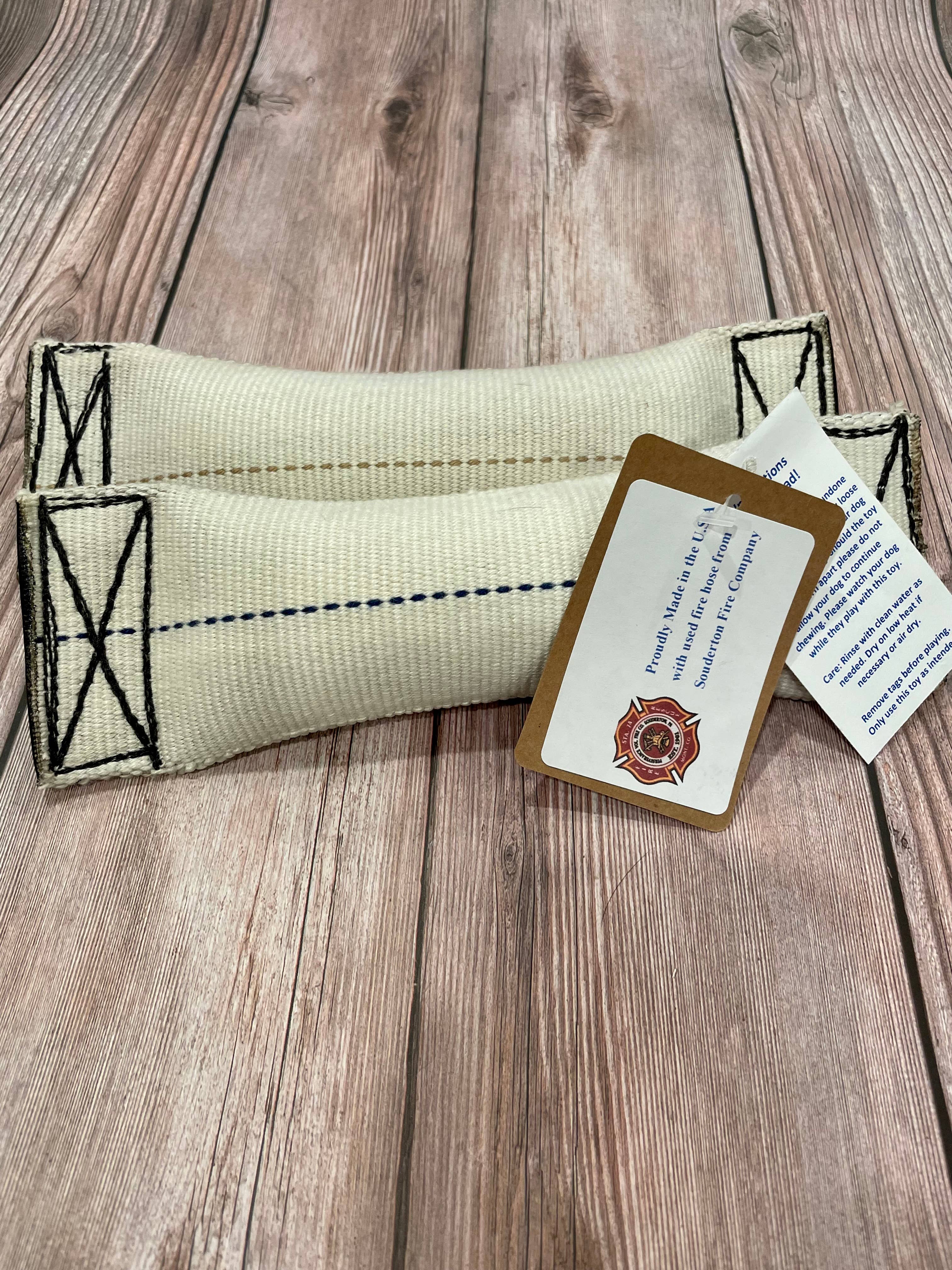 Our inspiration came to us through our everyday efforts to reduce waste. We were purchasing numerous dog toys which did not seem to last. The idea of having something sturdy like fire hose and something that would otherwise be thrown away inspired us to make our toys from used fire hose. Go Go Dog Toys started with making recycled fire hose toys and now we make so much more for your pets. Now we want to bring the joy we saw with our own dog come to the faces of others. For every 100ft of donated fire hose we are able to create 4 free toys to be donated to a shelter of the fire department's choosing Each of our toys help fund fire fighting and provide toys to local shelters. Our toys are made from real fire hose which fought fires and saved lives. The toys are thoroughly cleaned and safe for play time.