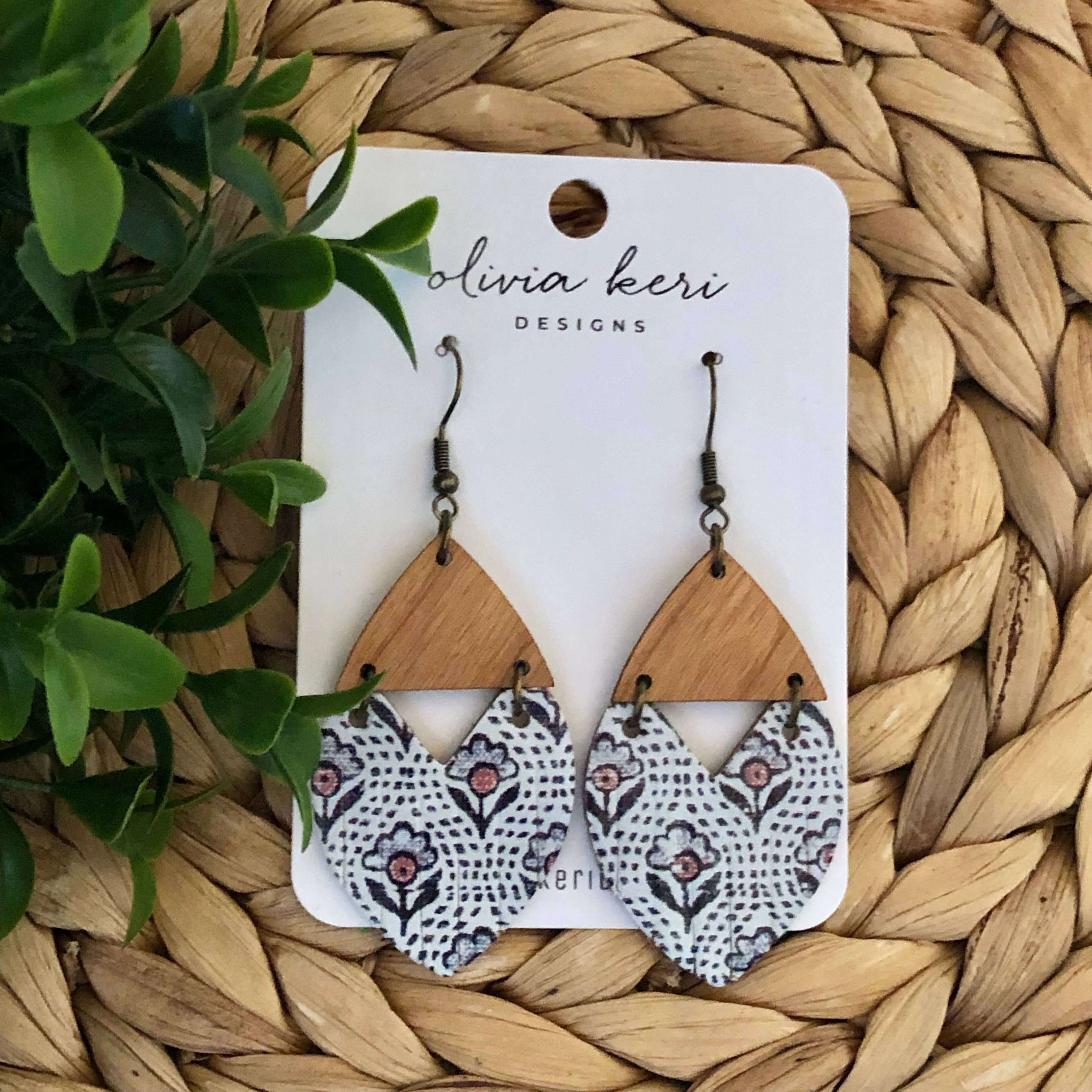 Olivia Keri Designs was officially launched in 2019 after founder and serial entrepreneur Nicole Lemmerman wanted a pair of earrings to match her daughters bow from her children's brand Oscar & Olivia. Taking a scrap of the same leather used to make her daughters bow, Nicole hand cut a pair of tear drop shape earrings and fell in love with the style and lightweight feeling of these earrings. Her desire to create more earrings didn't stop there and now Olivia Keri Designs offers an ever growing selection of earring styles and accessories. We use leather, cork and wood in our designs and combine these materials to create our unique and trendy pieces. Our handcrafted earrings and accessories are designed to make every woman feel bold, beautiful and confident.