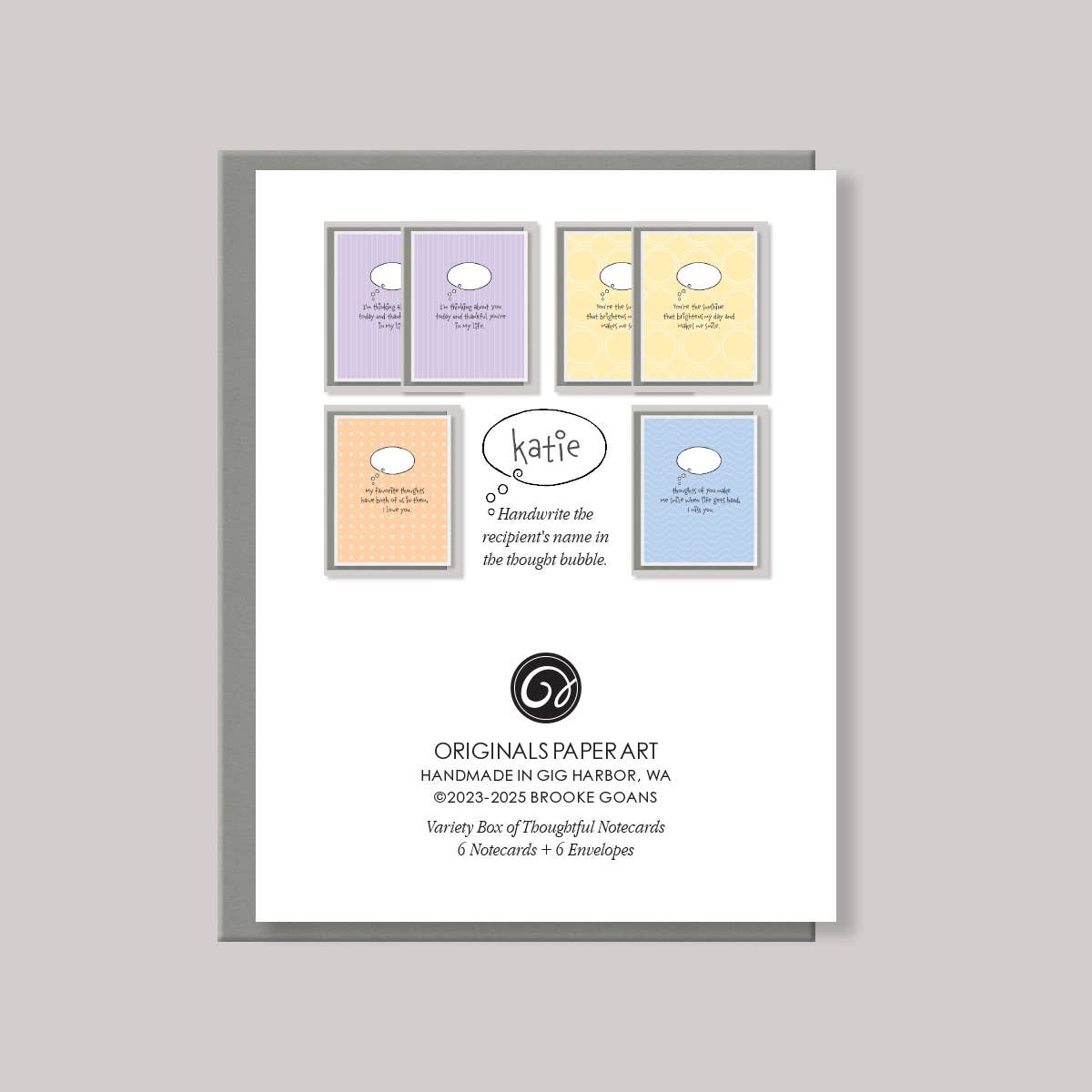 Greetings from Gig Harbor, Washington. My name is Brooke Goans and I'm the artist and designer behind Originals Paper Art. What began as a friendly stamp carving challenge in 2023, ended with dozens of original rubber stamps that I now use for my CARVED stationery collection. I sketch, pencil to paper, an original graphic that I then transfer to, and carve from, a rubber block. Using water-based brush markers I color directly on the rubber block to create a beautiful, one of a kind, stamped impression. And with that single impression I design a variety of stationery items to share with stationery and gift shops from coast to coast.