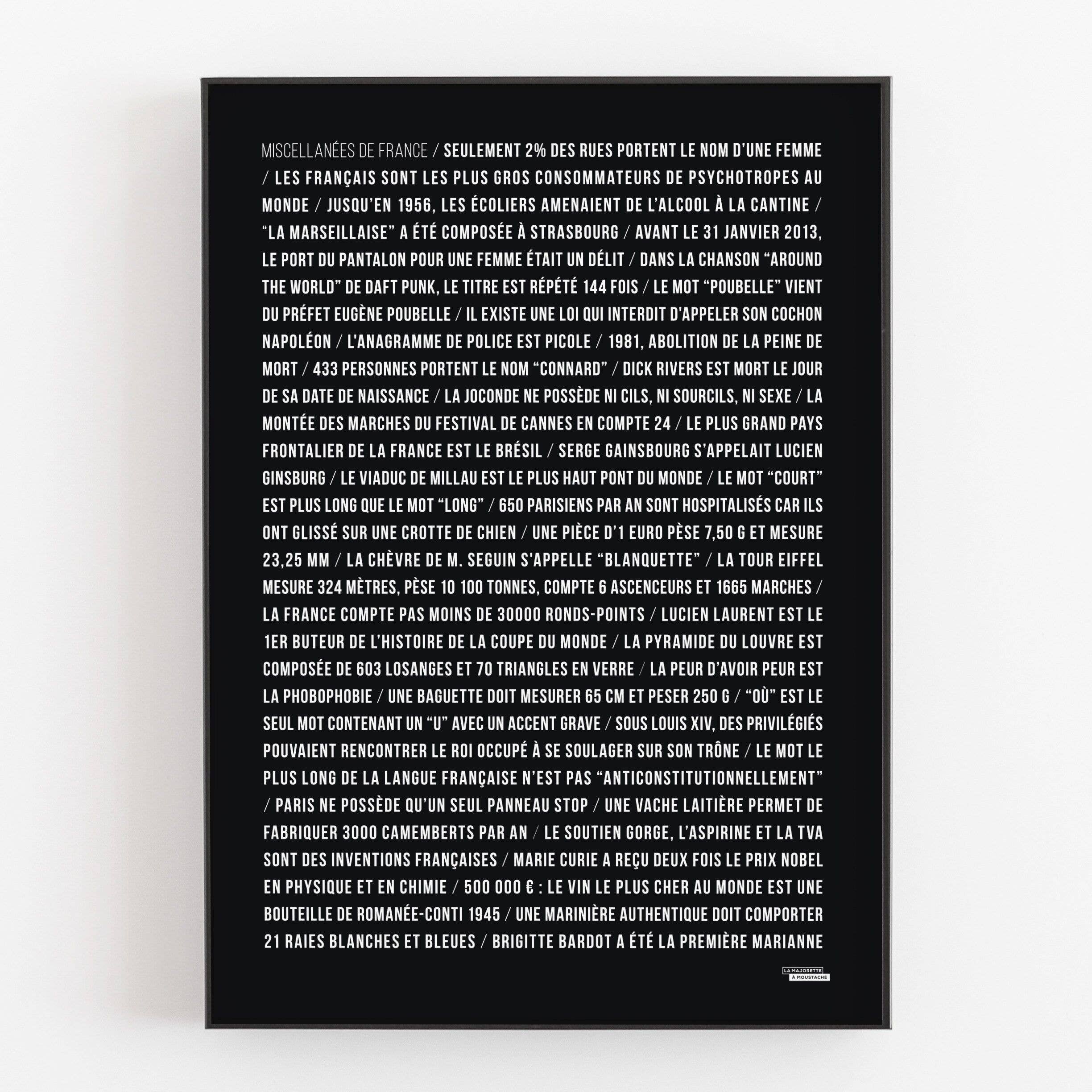 La Majorette à Moustache is the first brand specialized in the creation and publishing of posters dedicated to French culture. Educational and fun, they explore a multitude of themes for the happiness of young and old alike. Created in 2016, by the Lille duo Audrey and Guillaume La Majorette, created a beautiful collection of high-end posters, respecting the values of Made in France and especially the short circuit. The products are designed, manufactured and shipped within a short radius of 20 km. Fan of movies, soccer, cars, cheese, rock, or even word games with a Frenchy sauce, in short, if you like French Pop Culture, these posters are made for you!